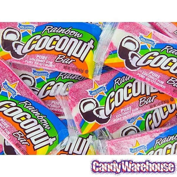 Mmmmmoist and chewy, these colorful coconut bars have been a Southern tradition for generations...and are a favorite of every member of the Atkinson family. Your mouth will water at the thought of this sweet, tender, flaky coconut gently pressed into a bar. Experience it and you will be taken back to that time and place you first experienced this one-of-a-kind candy. And if you've never had it before, try one and find out why so many of our customers call Rainbow Coconut an addiction!