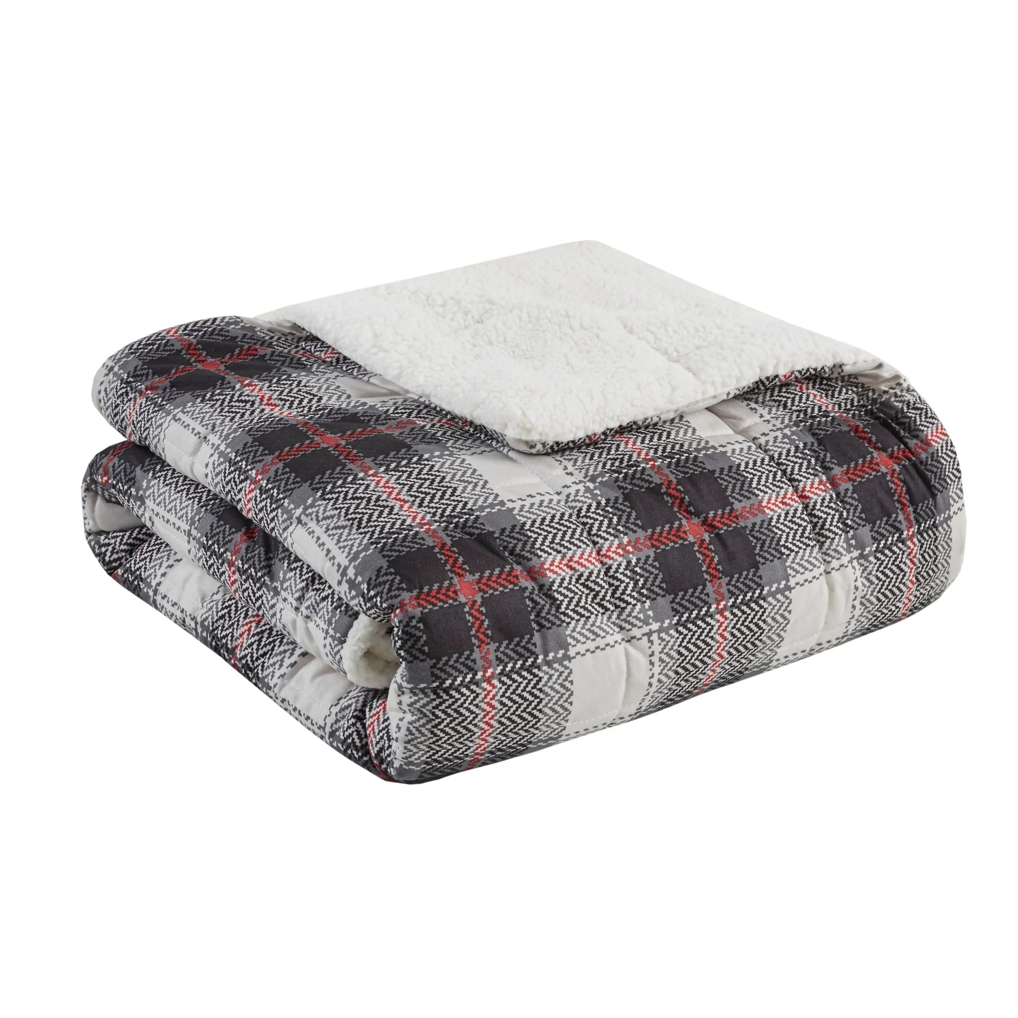 Bundle up on the couch with the Woolrich Ridley Down Alternative Throw. This throw blanket features a black, grey, and red plaid print on ultra-soft cozyspun fabric with a lush berber reverse. The down alternative filling provides extra warmth and softness, while the box-quilting prevents the fill from shifting. Machine washable for easy care, this oversized throw will keep you warm and comfortable through all seasons and is OEKO-TEX certified, meaning it does not contain any harmful substances or chemicals to ensure quality comfort and wellness.