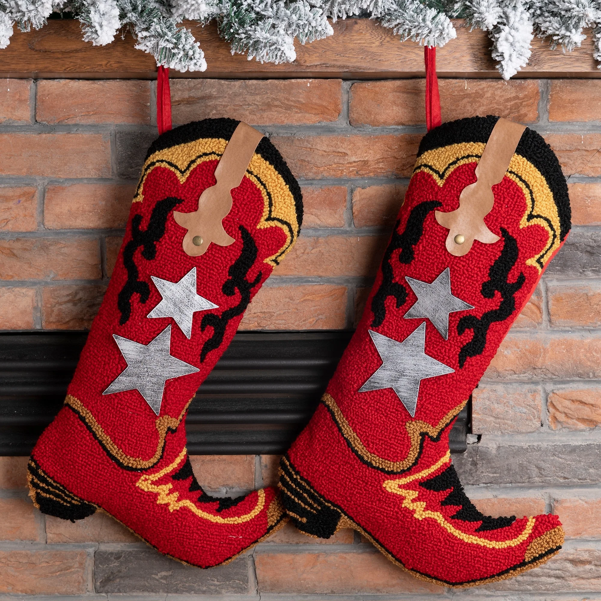 Glitzhome 19 Inch Hooked Christmas Stockings Set of 2