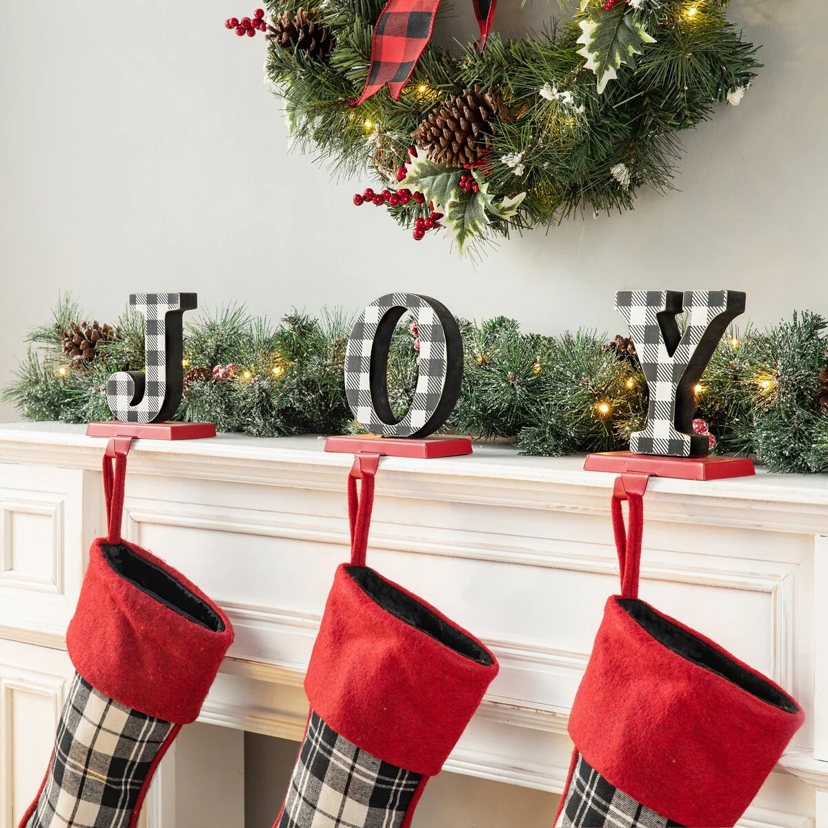 These painted wood letter and metal base stocking holders offer a unique, charming pop of holiday bliss. Reading either 'JOY' or 'NOEL', this delightful little piece is perfect for hanging stockings, and it's certain to be stuffed with treats from Santa.