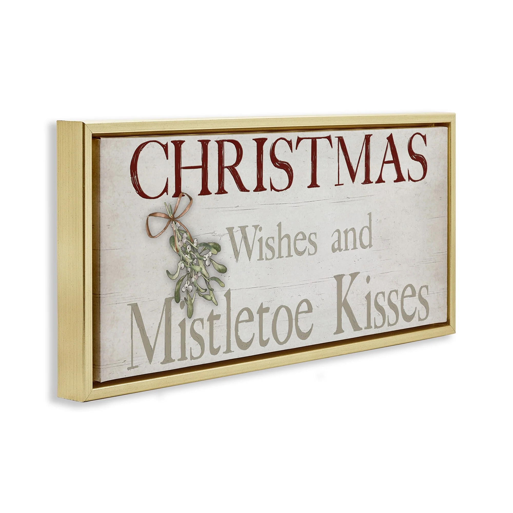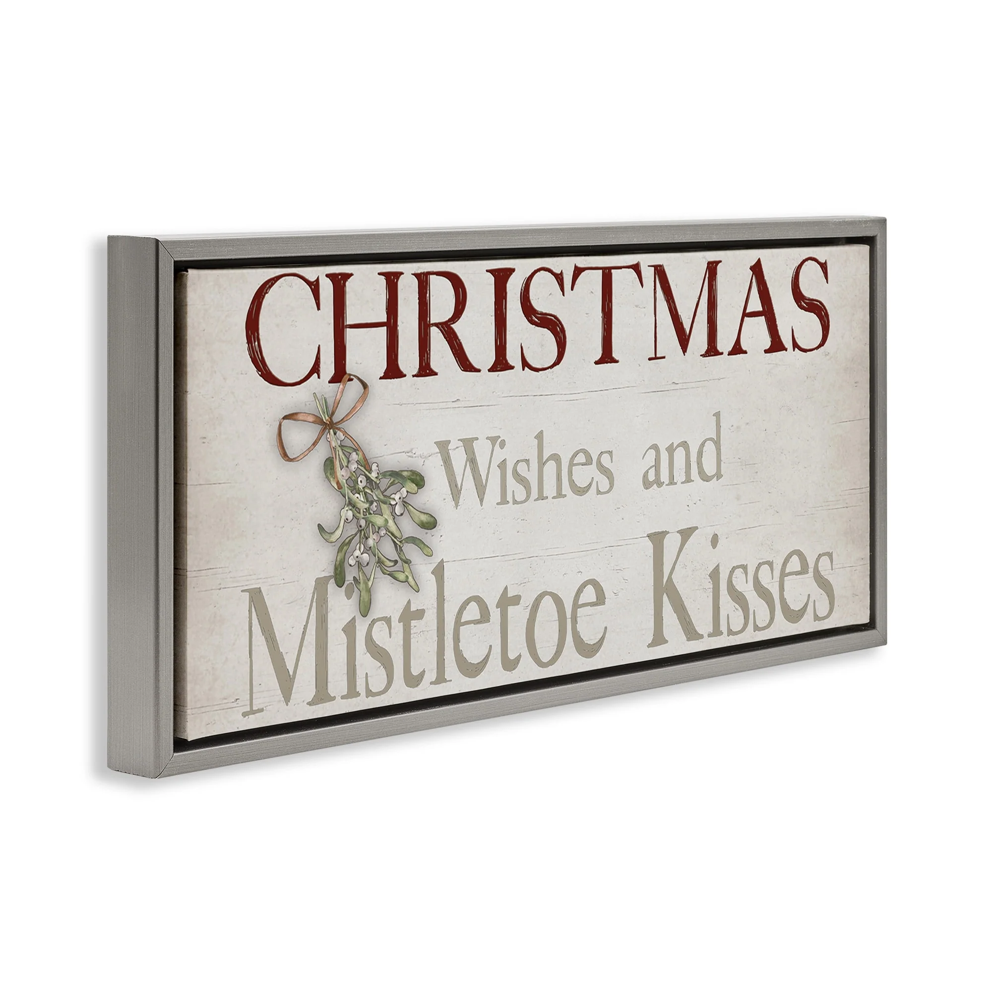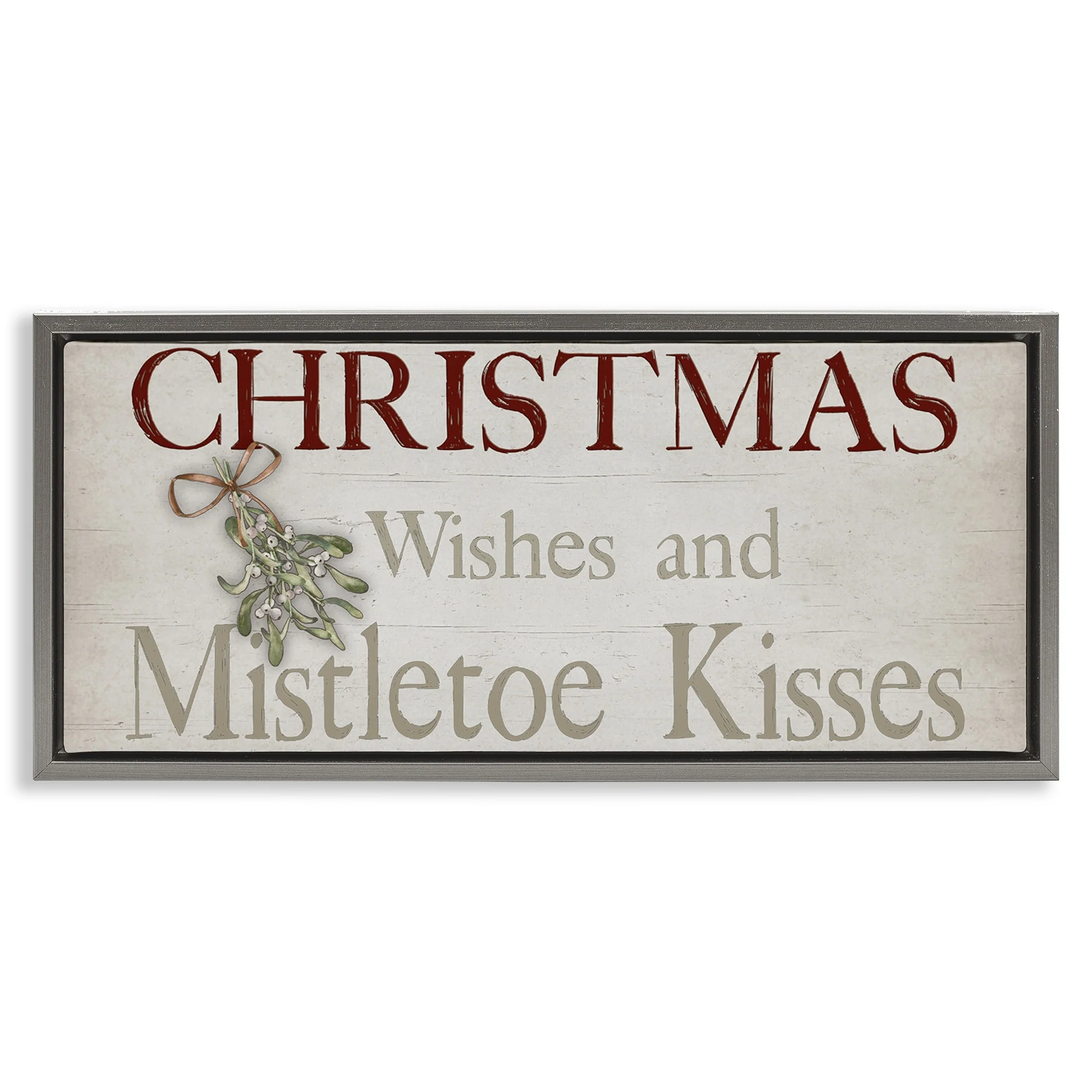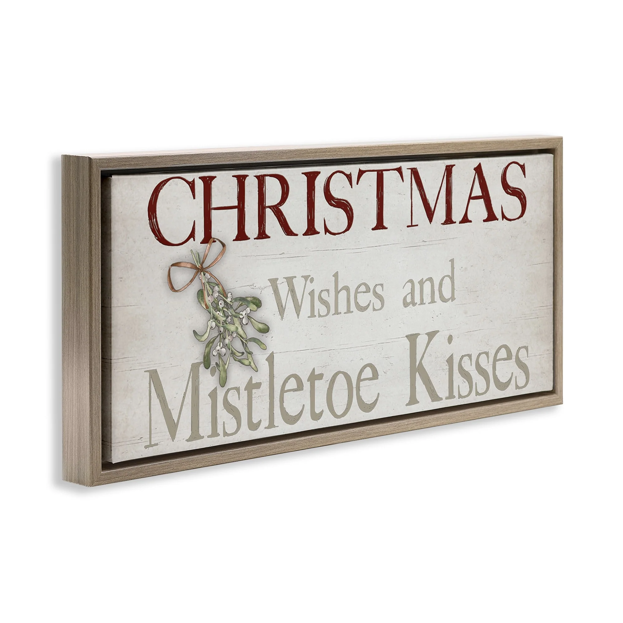 • Stupell Christmas Wishes & Mistletoe Kisses Framed Floater Canvas Wall Art Design By Susie Boyer