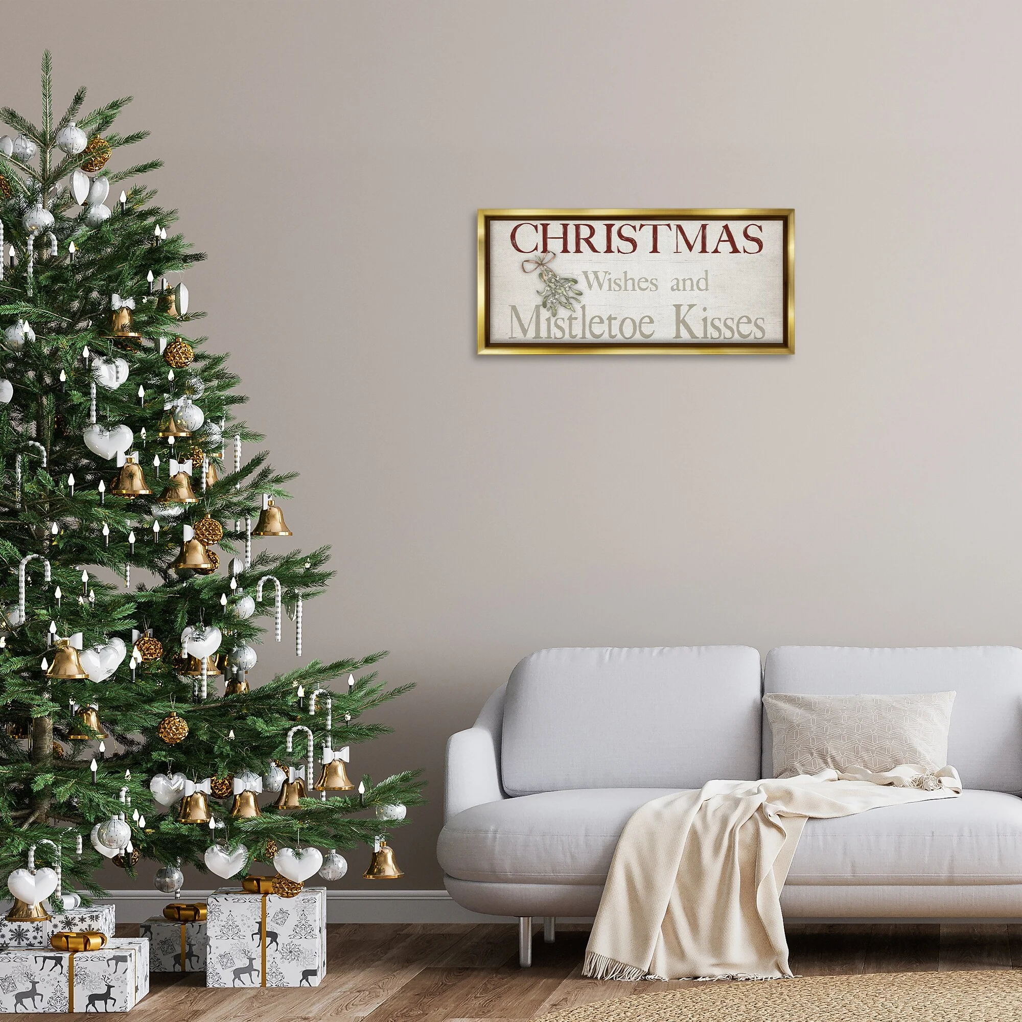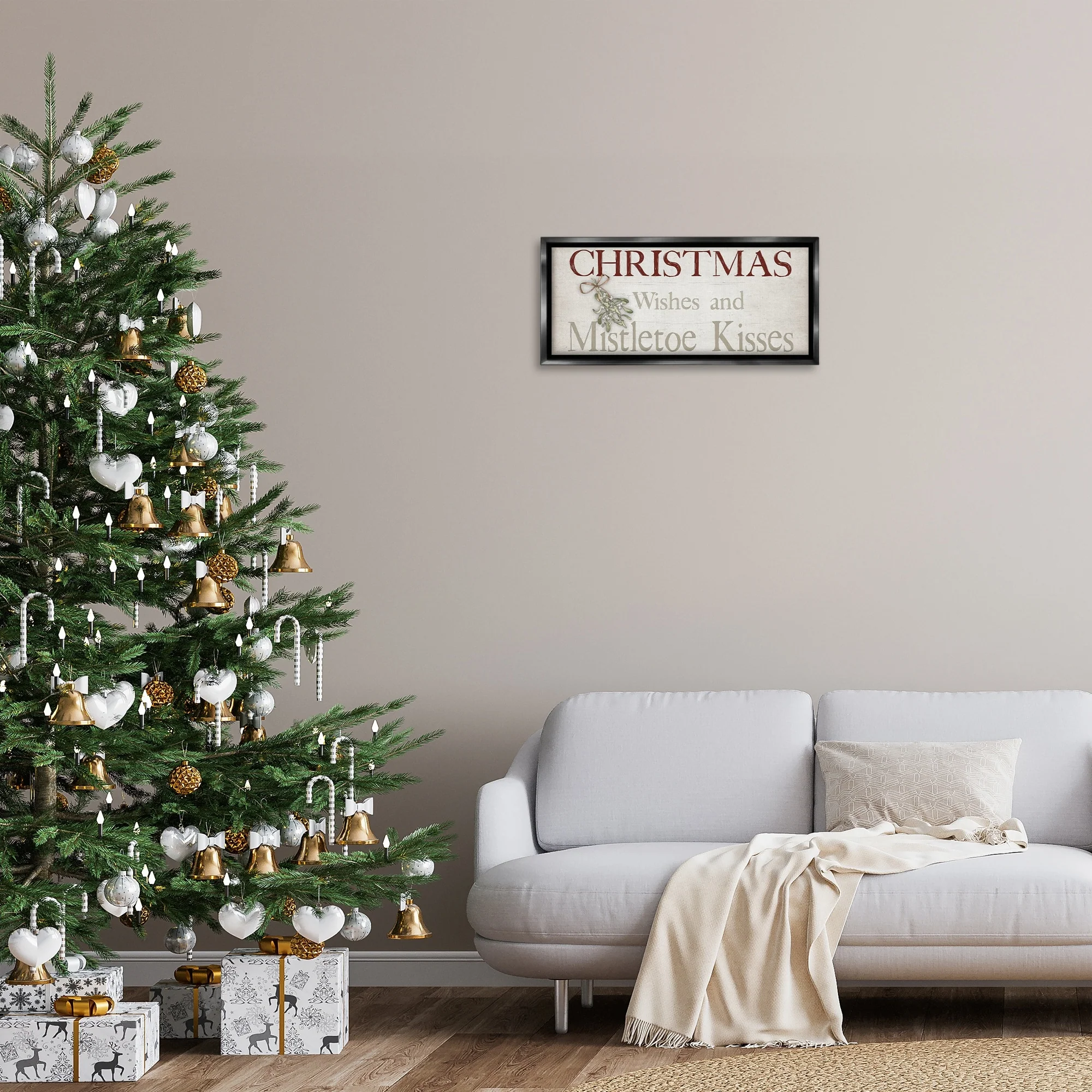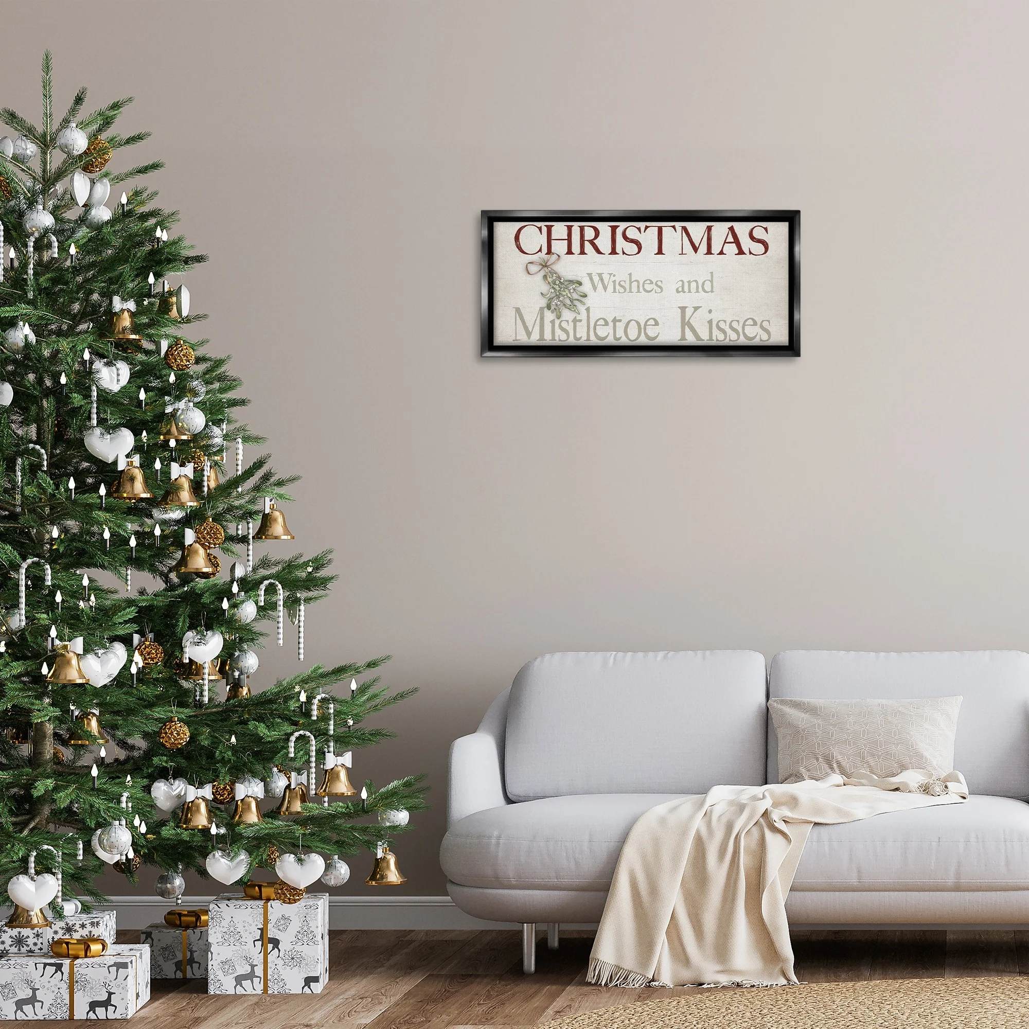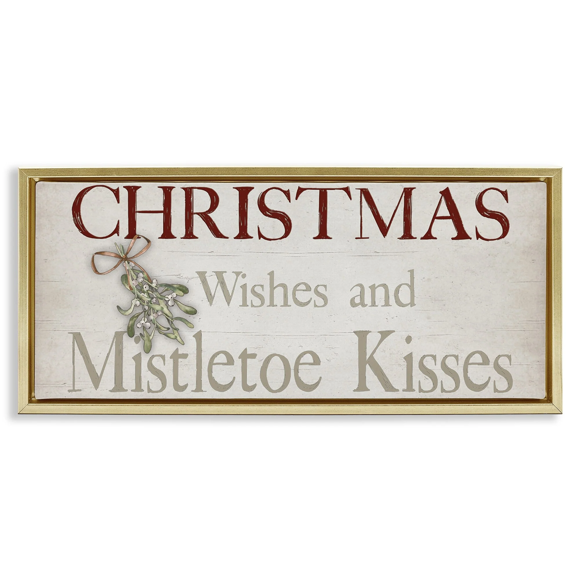 • Stupell Christmas Wishes & Mistletoe Kisses Framed Floater Canvas Wall Art Design By Susie Boyer