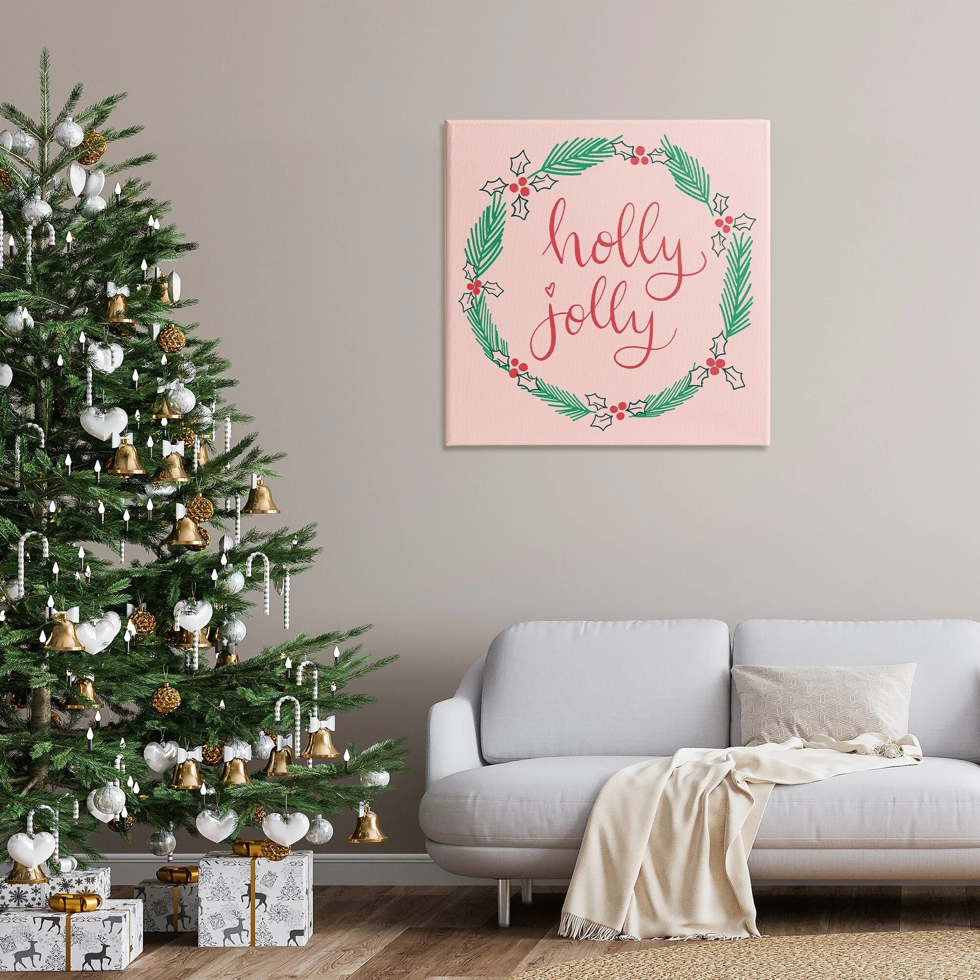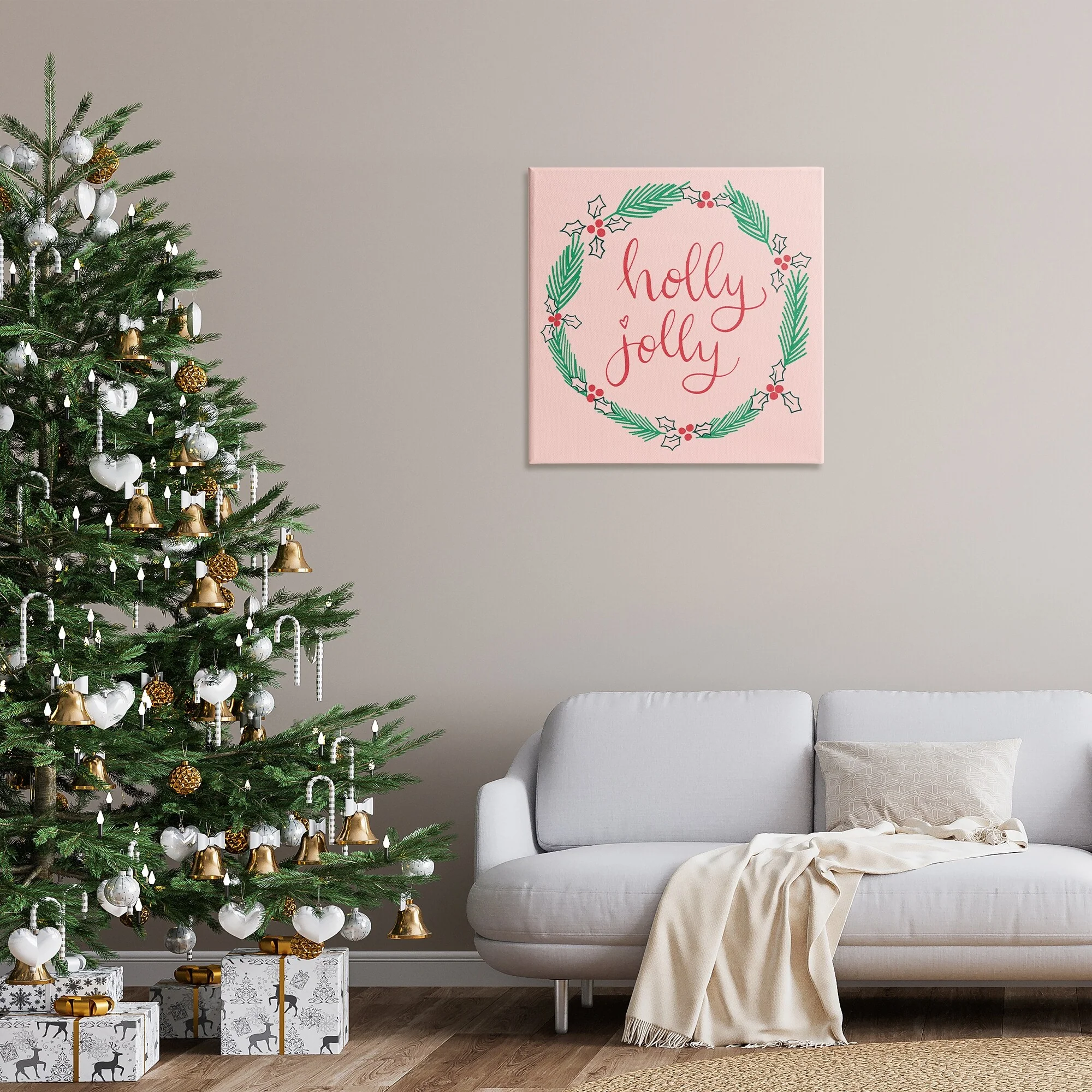 Stupell Minimal Holly Jolly Wreath Canvas Wall Art Design By Sazerelli Designs