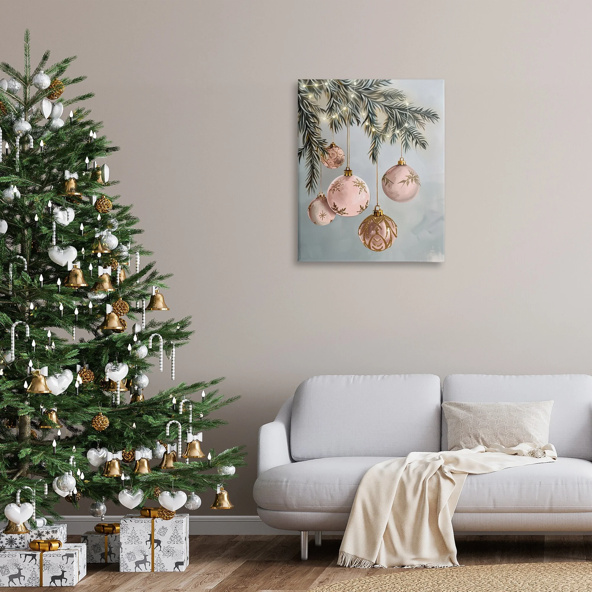 • Stupell Pink Hanging Christmas Ornaments Canvas Wall Art Design By Arlington Prints