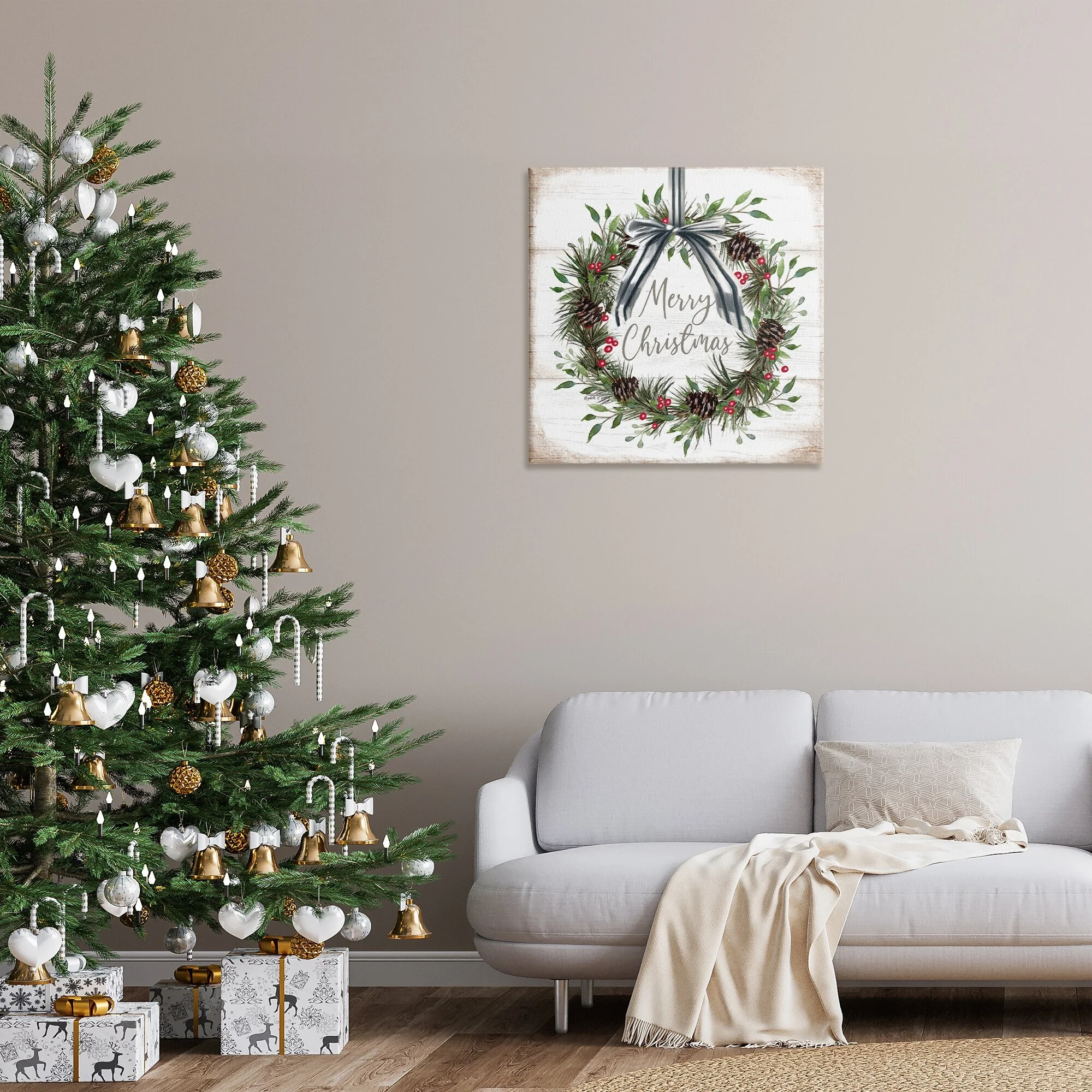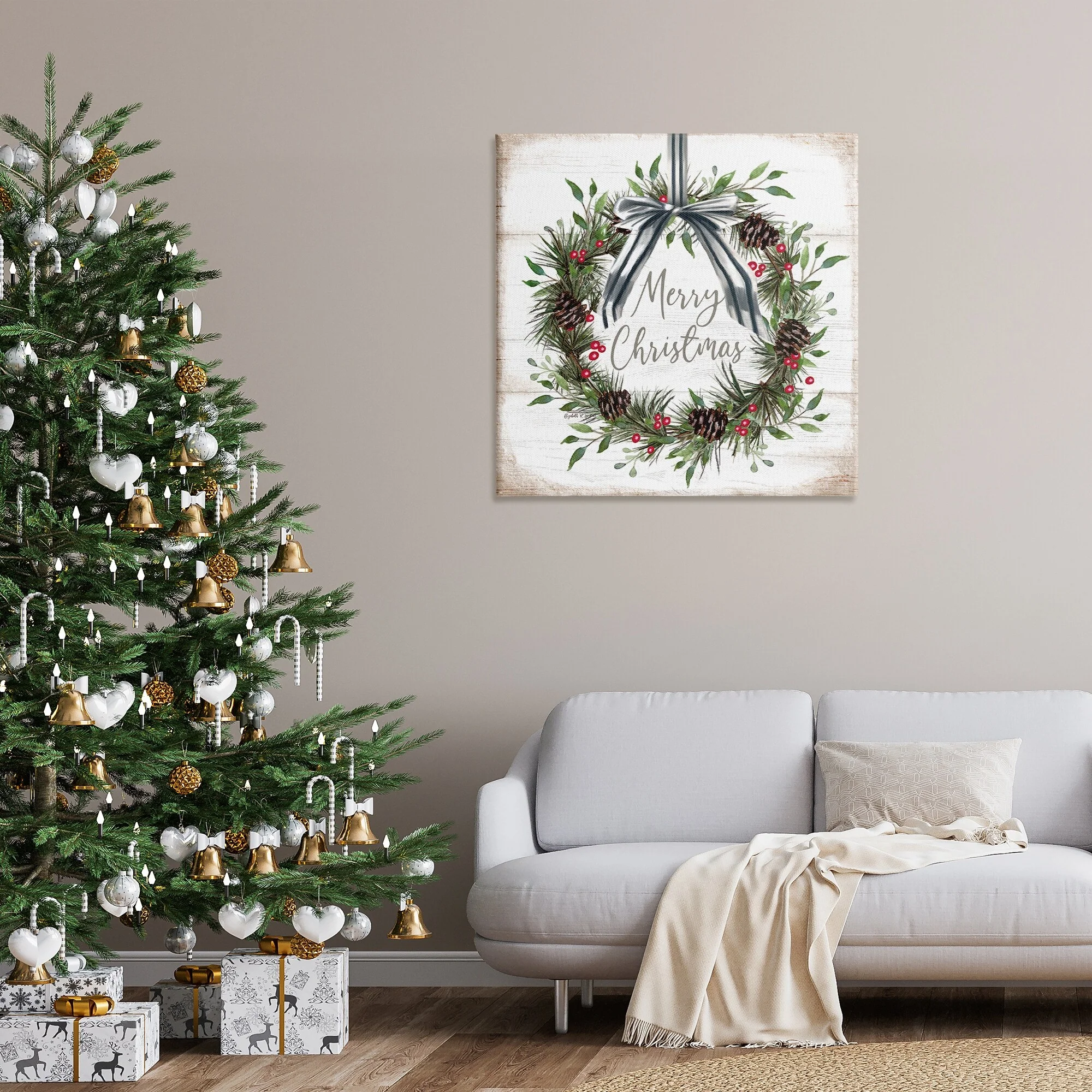 • Stupell Rustic Christmas Pinecone Wreath Canvas Wall Art Design By Elizabeth Tyndall