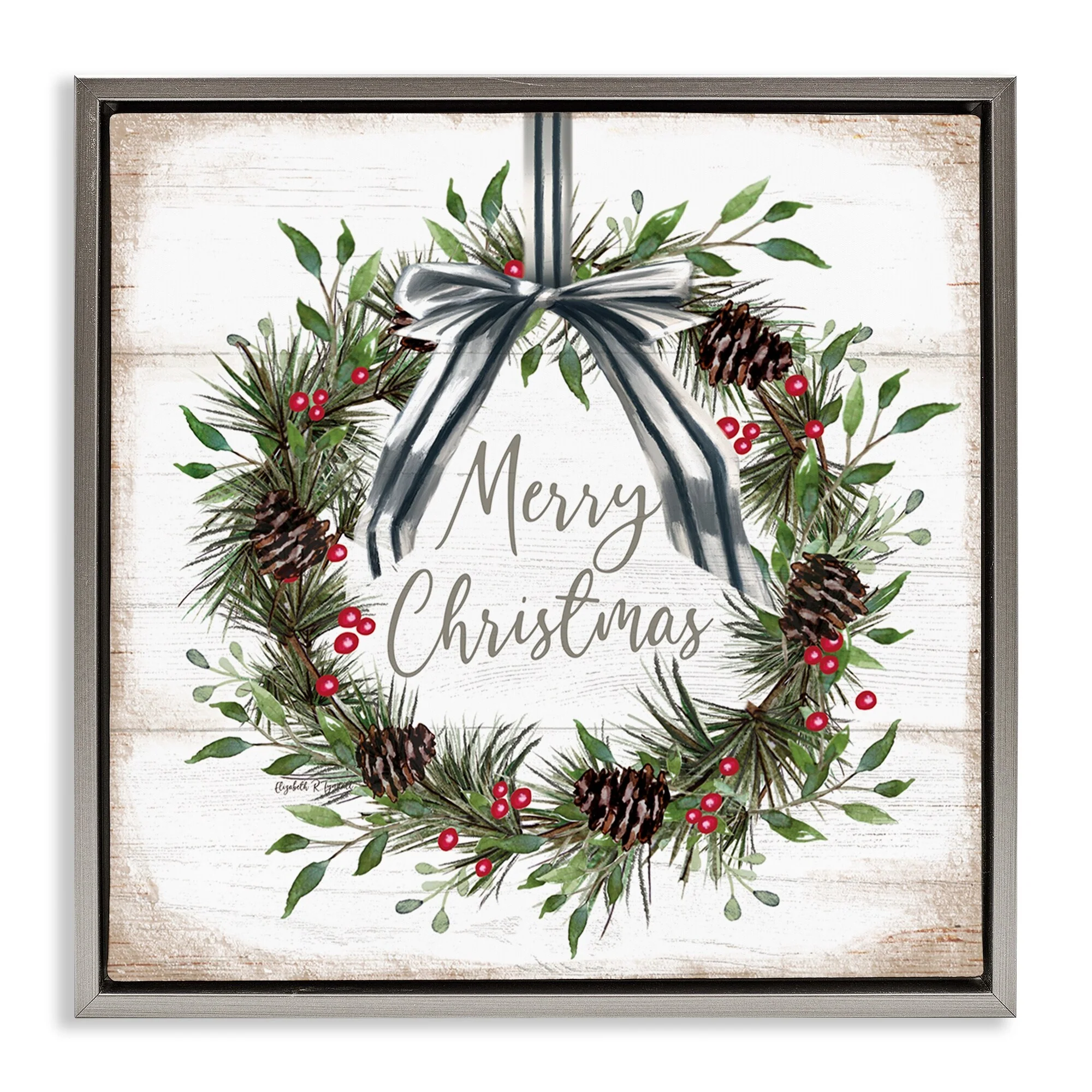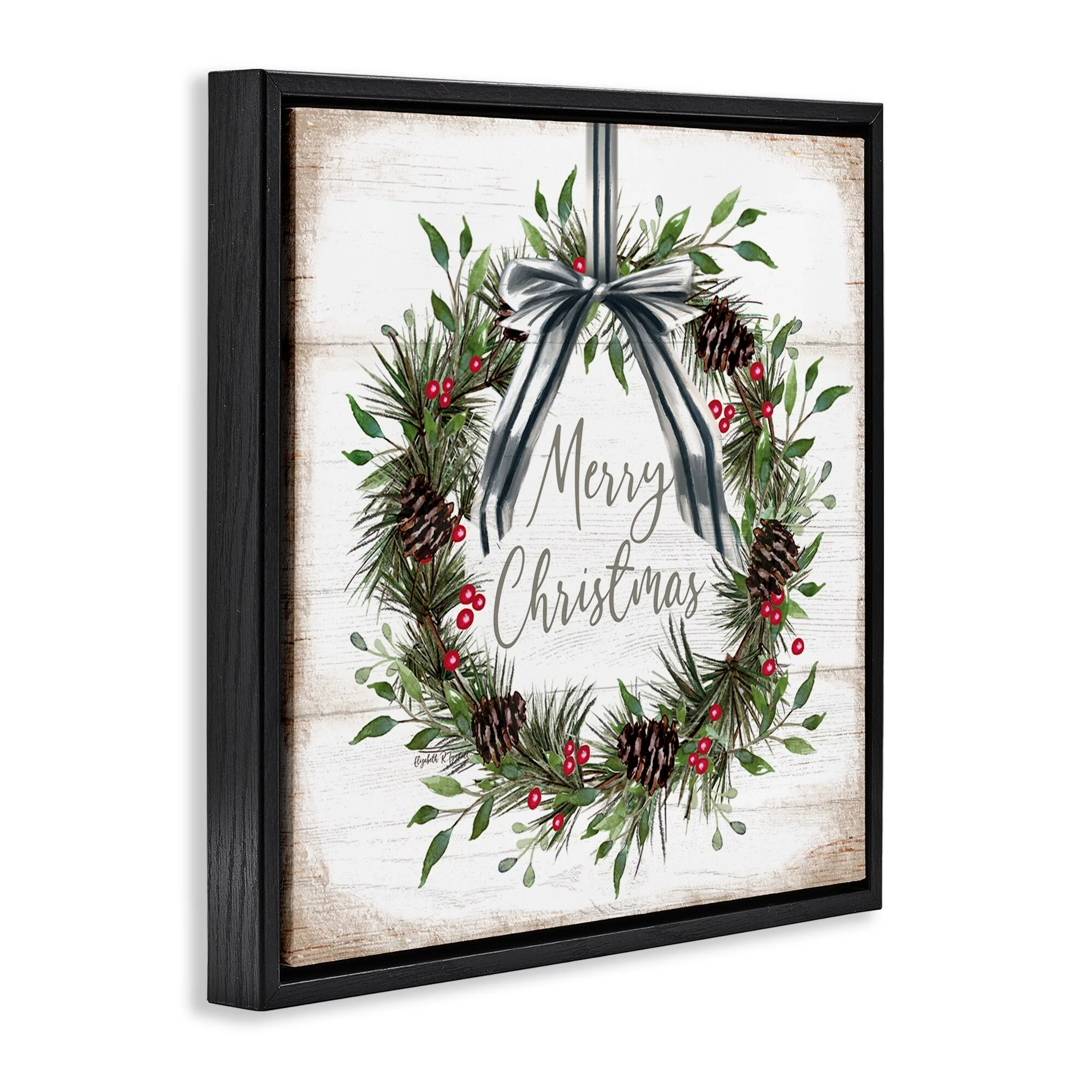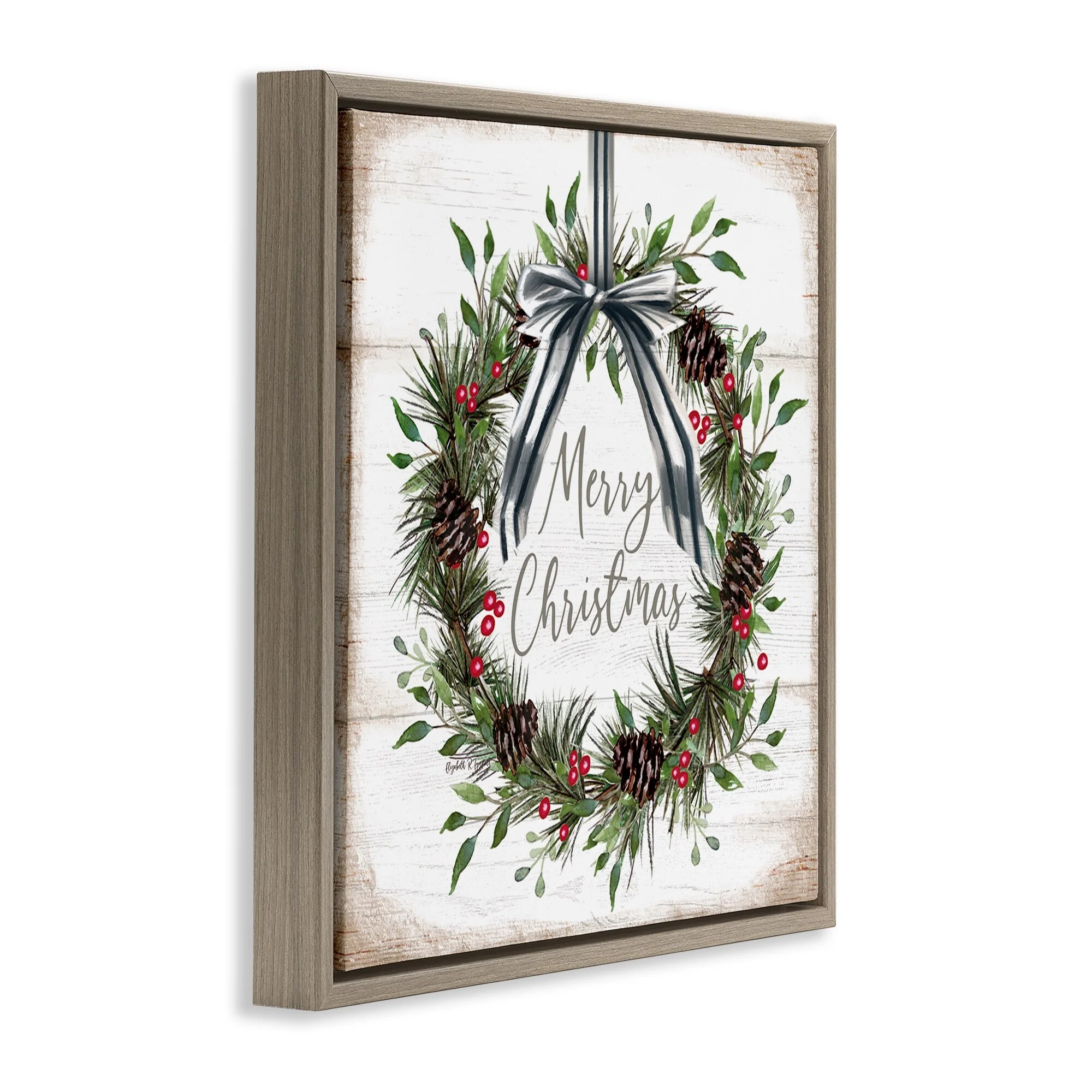 • Stupell Rustic Christmas Pinecone Wreath Framed Floater Canvas Wall Art Design By Elizabeth Tyndall