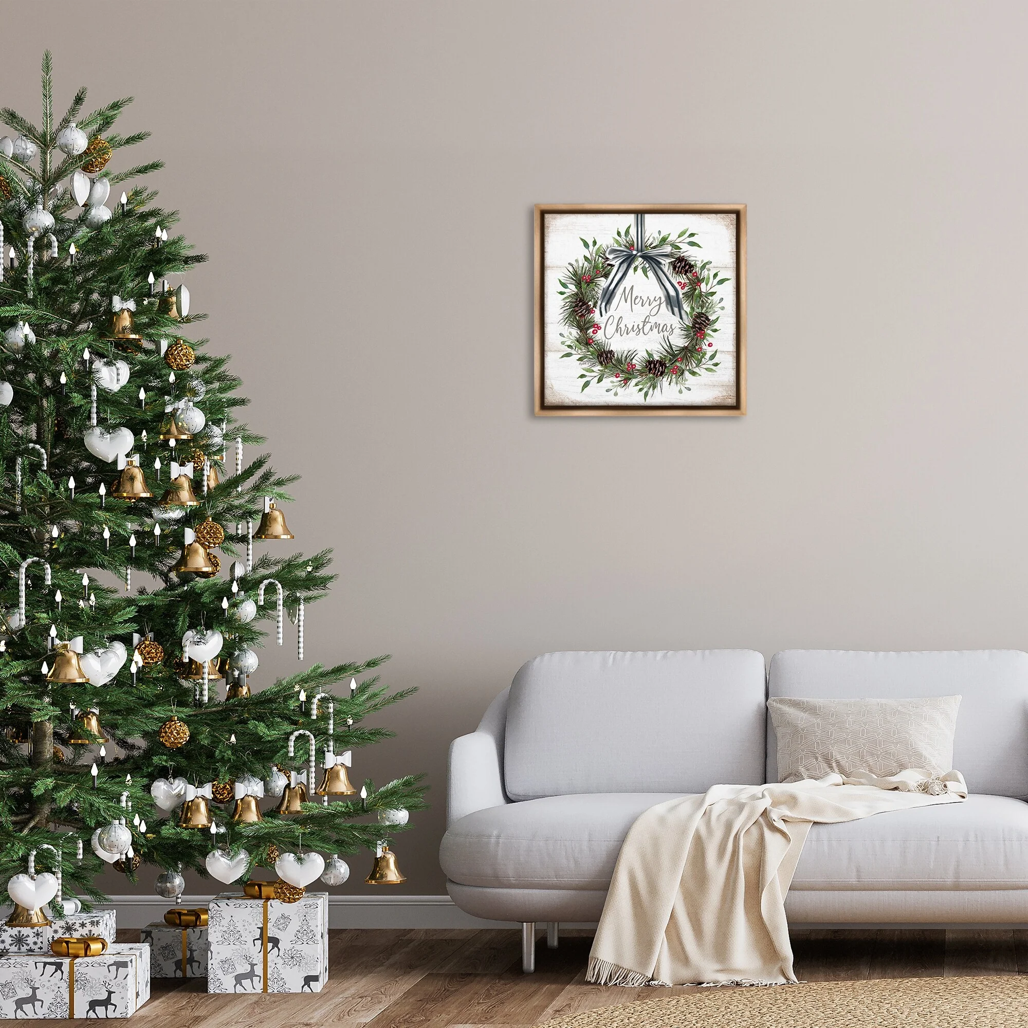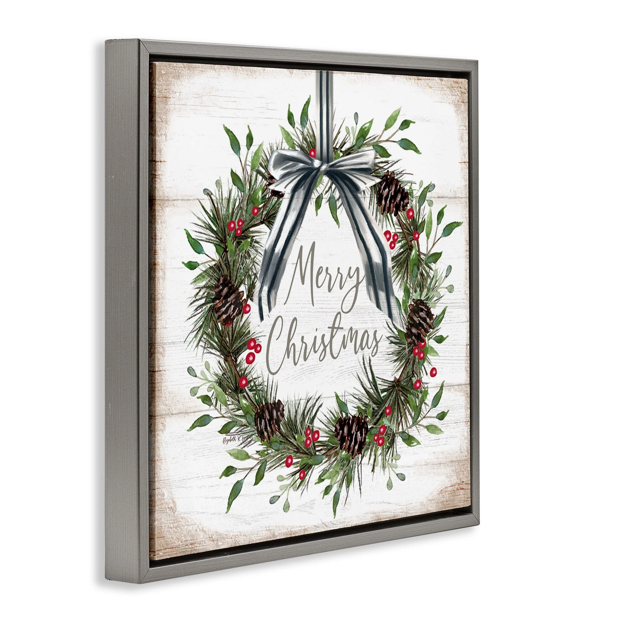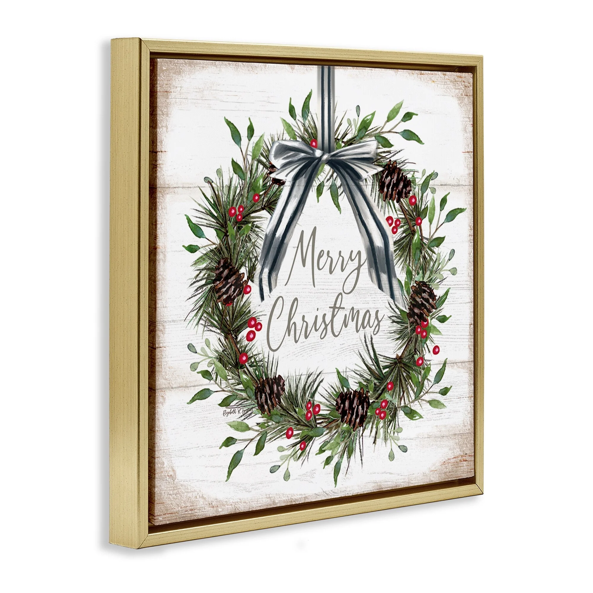 • Stupell Rustic Christmas Pinecone Wreath Framed Floater Canvas Wall Art Design By Elizabeth Tyndall