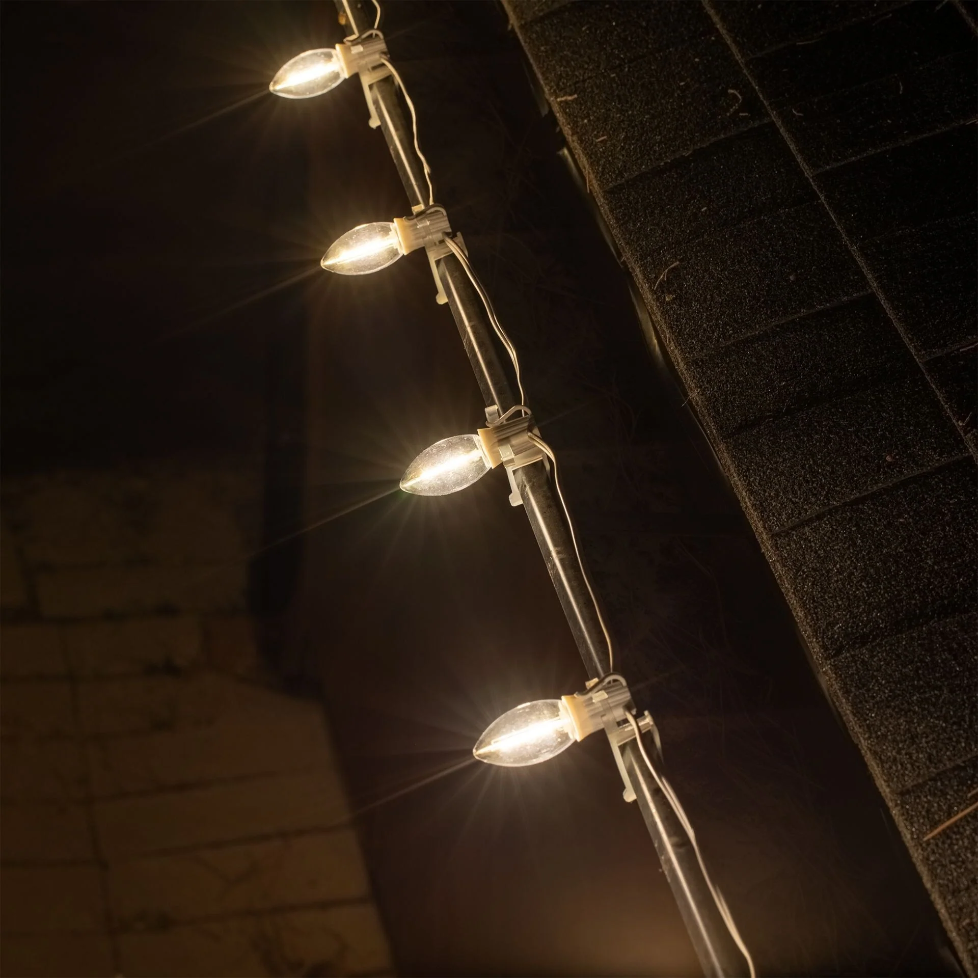 Illuminate your festive celebrations with our string lights 25 ft that cast a magical glow. These 25 Lamp C9 transparent Plastic Filament LED String Lights Sets are designed with a green wire, perfect for both indoor and outdoor spaces. Adding a touch of enchantment to your holiday season, these outdoor string lights led offer aesthetic appeal and versatility, making them a holiday essential for every home. Our string light wire allows you to cover larger areas with ease. The 25' long string lights feature a 12" bulb spacing, ideal for decorating expansive trees and rooflines. These bulb string lights can connect up to 43 sets end-to-end, offering a seamless and professional finish. Being UL Listed for both indoor and outdoor use, these lights are not only versatile but also safe.Experience the durability and longevity of our 'c9 green Christmas lights'. These commercial-grade lights with non-removable bulbs provide a steady and consistent light source, eliminating any flickering. Enhancing the overall visual appeal of your 'Christmas house light', this feature makes your decorations truly shine.Save on your energy bills with our outdoor lighting products. These energy-efficient string lights use only 4.8 Watts per string, making them not only environmentally friendly but also cost-effective. Our 'Christmas light cable' comes with a built-in rectifier, eliminating the need for a special adapter and adding to the convenience of using these lights.Set up your 'Christmas tree light' effortlessly with our general mounting tips. For outdoor patios, we suggest using 'aircraft wire' as a support cable for a clean, professional look. When using our 'string lights 25 ft' for rooflines, mount along the roofline following our all in all clips to mount under shingles or on gutters, ensuring a straight, secure line along your home.