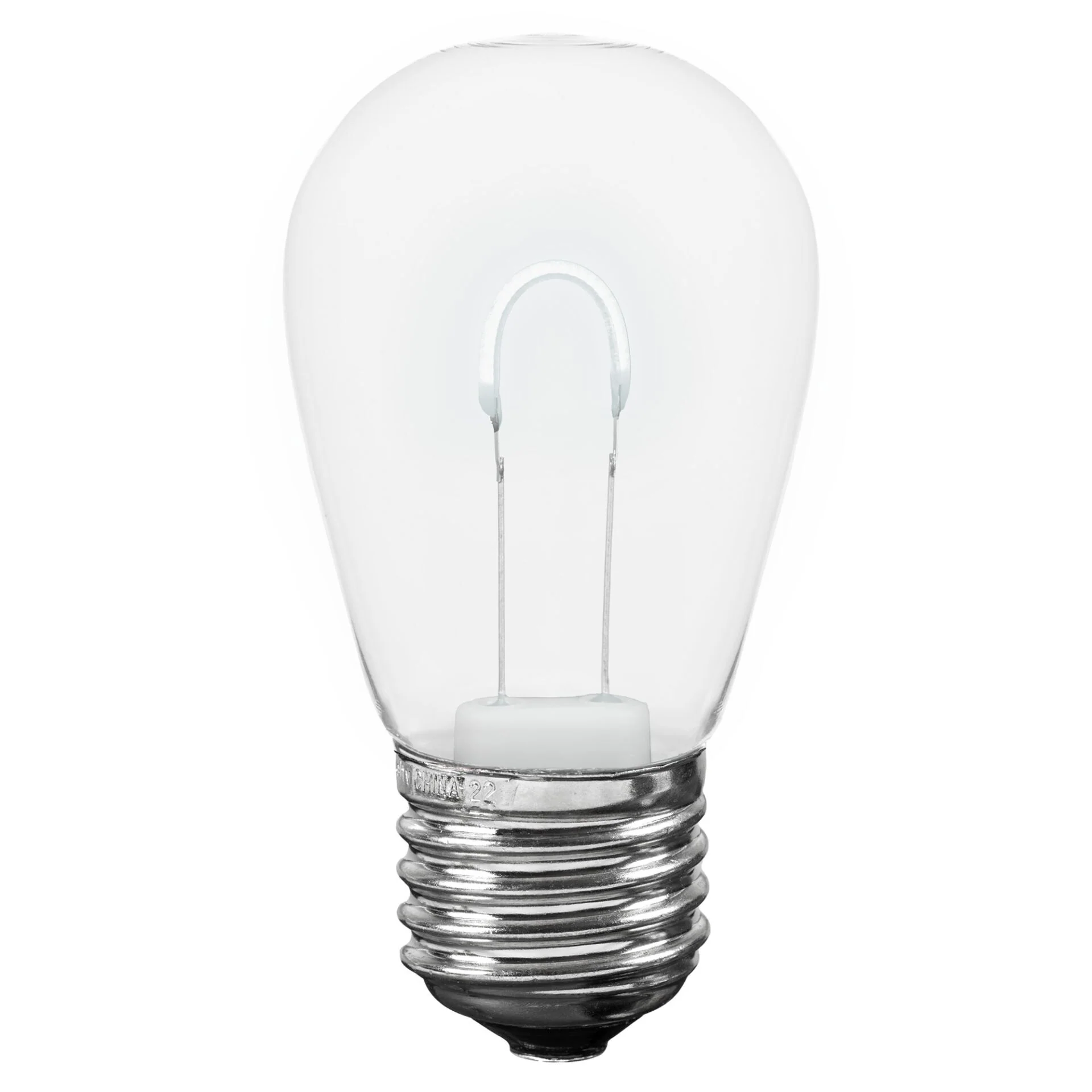 Novelty Lights S14 U-Shaped Flexible Filament LED Plastic Filament Retrofit replacement lamps utilize a Flexible (U-Shaped) Filament design for viewing from all angles. Switch out those old incandescent S14 bulbs that consume too much energy and break all the time for our energy efficient Retrofit S14's utilizing LED filament technology. Our bulbs are made of a quality plastic providing a durable LED S14 that will not chip, fade or crack. These S14's are also dimmable making them perfect for animated displays. All of our LED S14's are energy efficient using less than 1 Watt per bulb. Built to last with a 2 season warranty, our S14 plastic filament LED bulbs will provide years of quality use. Perfect for roofline, patio, backyard BBQ, or other Holiday installation. Our LED plastic S14 bulbs can be used with any of our commercial grade light strings.