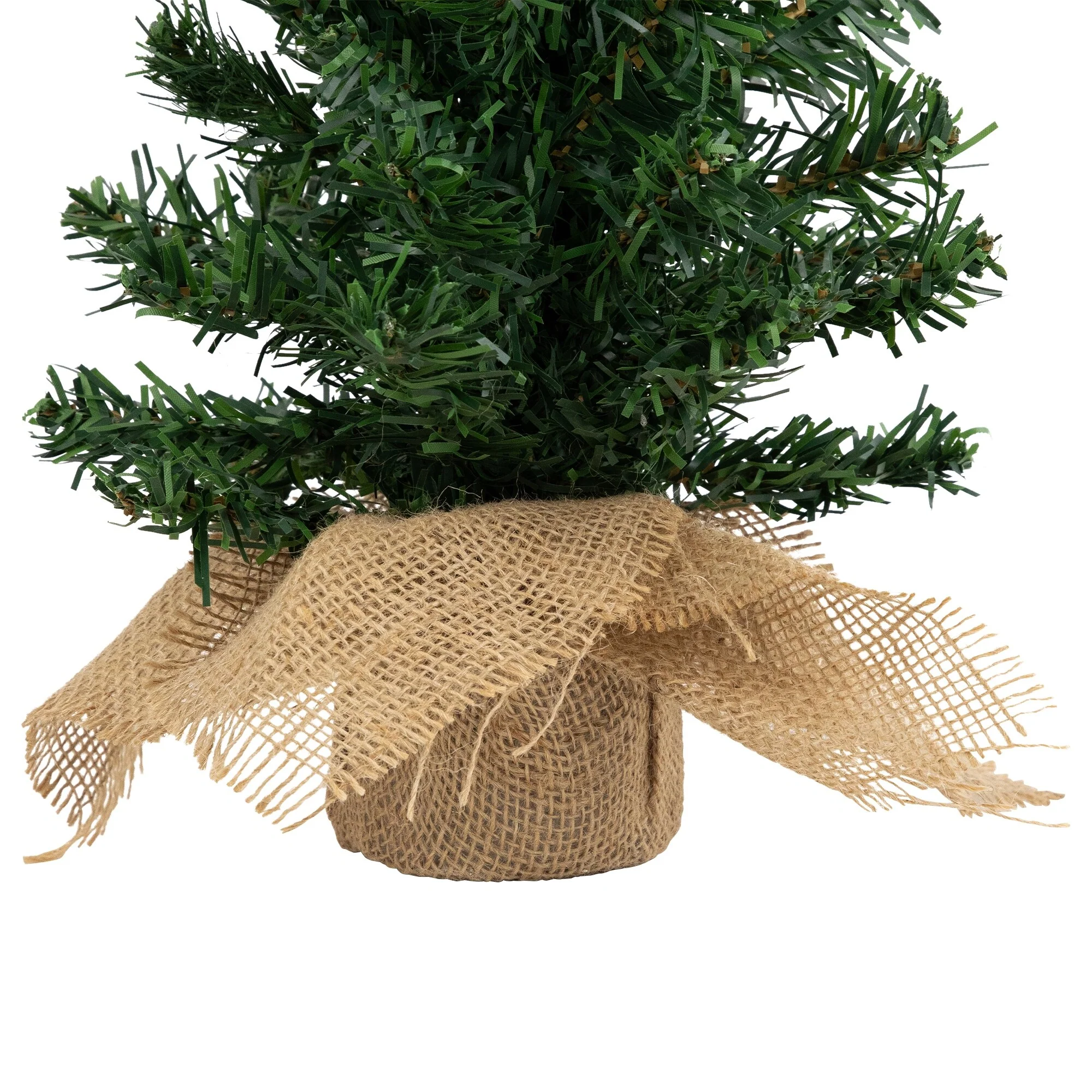 Add a touch of holiday magic to your home with artificial Christmas tree. Its realistic design and charming burlap base bring the spirit of the season to any space. Perfect for tabletops, mantels, or as a centerpiece, this tree adds a dash of holiday magic to your home with minimal effort. Make this Christmas unforgettable with the timeless charm of our Two-Tone Mixed Green Pine Tree.