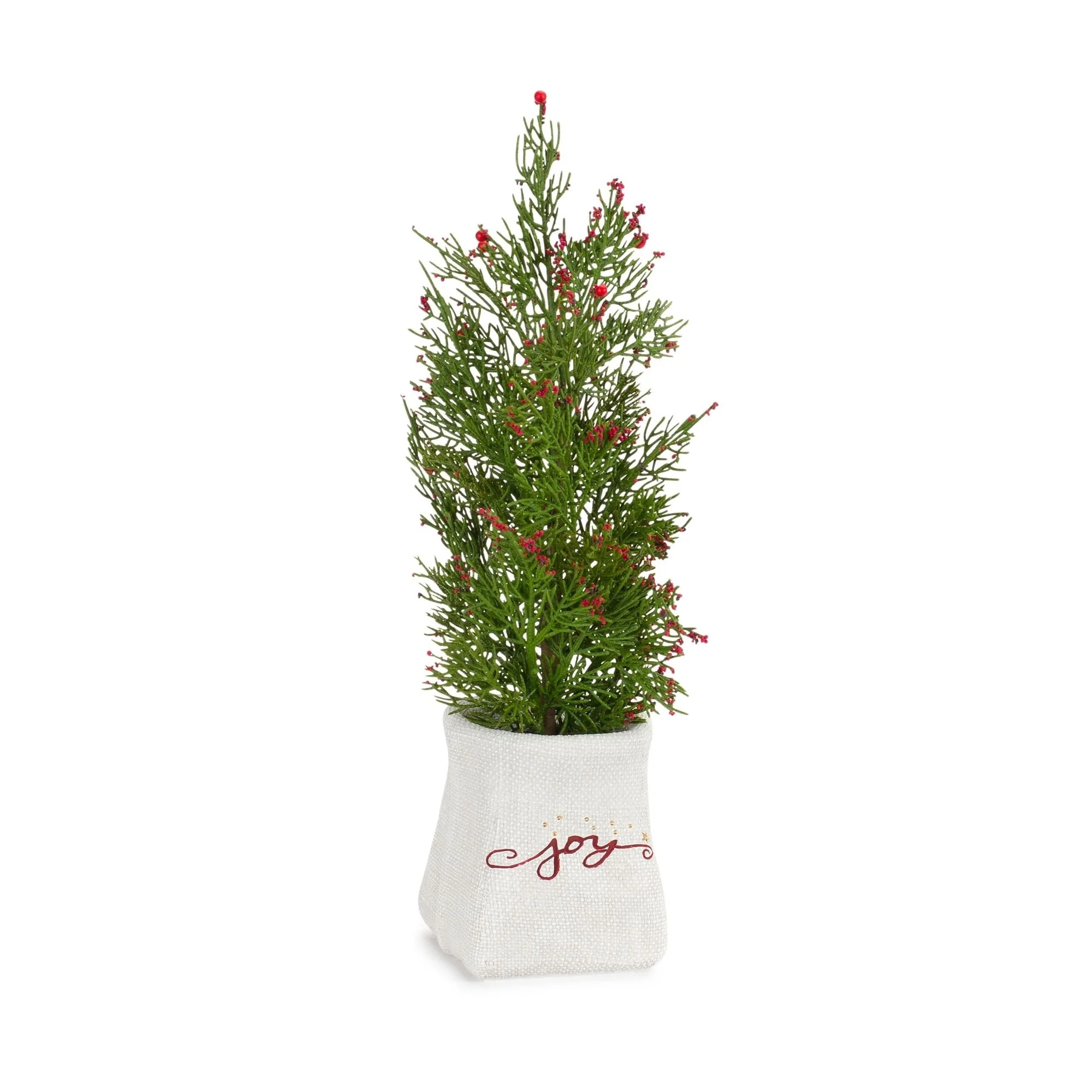 Celebrate the holiday season with our exquisite set of Potted Pine Trees. With two assorted designs featuring "Joy" and "Peace," these trees add a touch of elegance to your home decoration. The variegated pine branches, paired with berry accents and sentiment pots, create a stunning Christmas display. Place them in your entryway or front porch to warmly welcome guests in style. Embrace the spirit of the season with this beautiful set.
