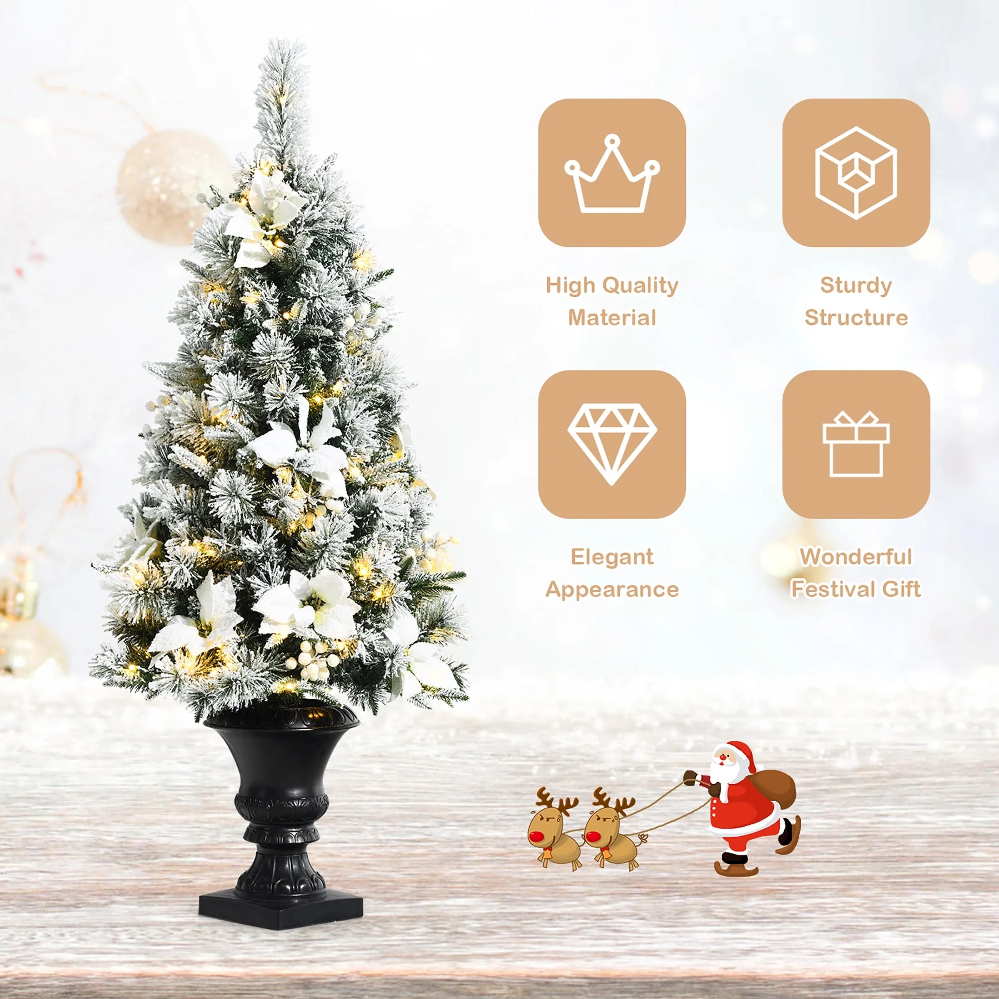 - 1 x Pre-lit Snow Flocked Entrance Tree