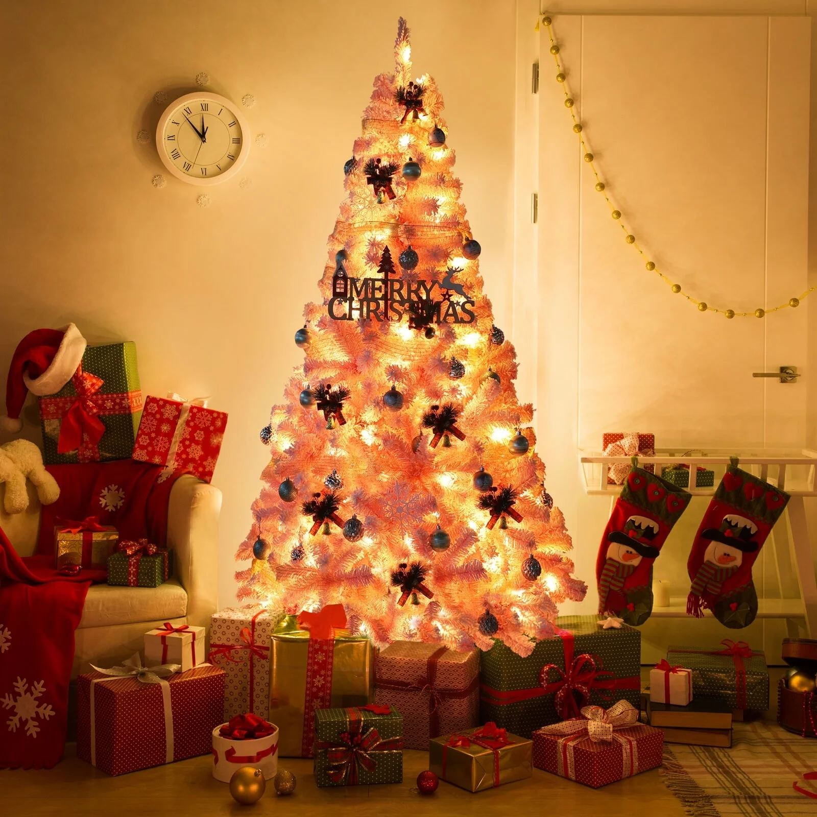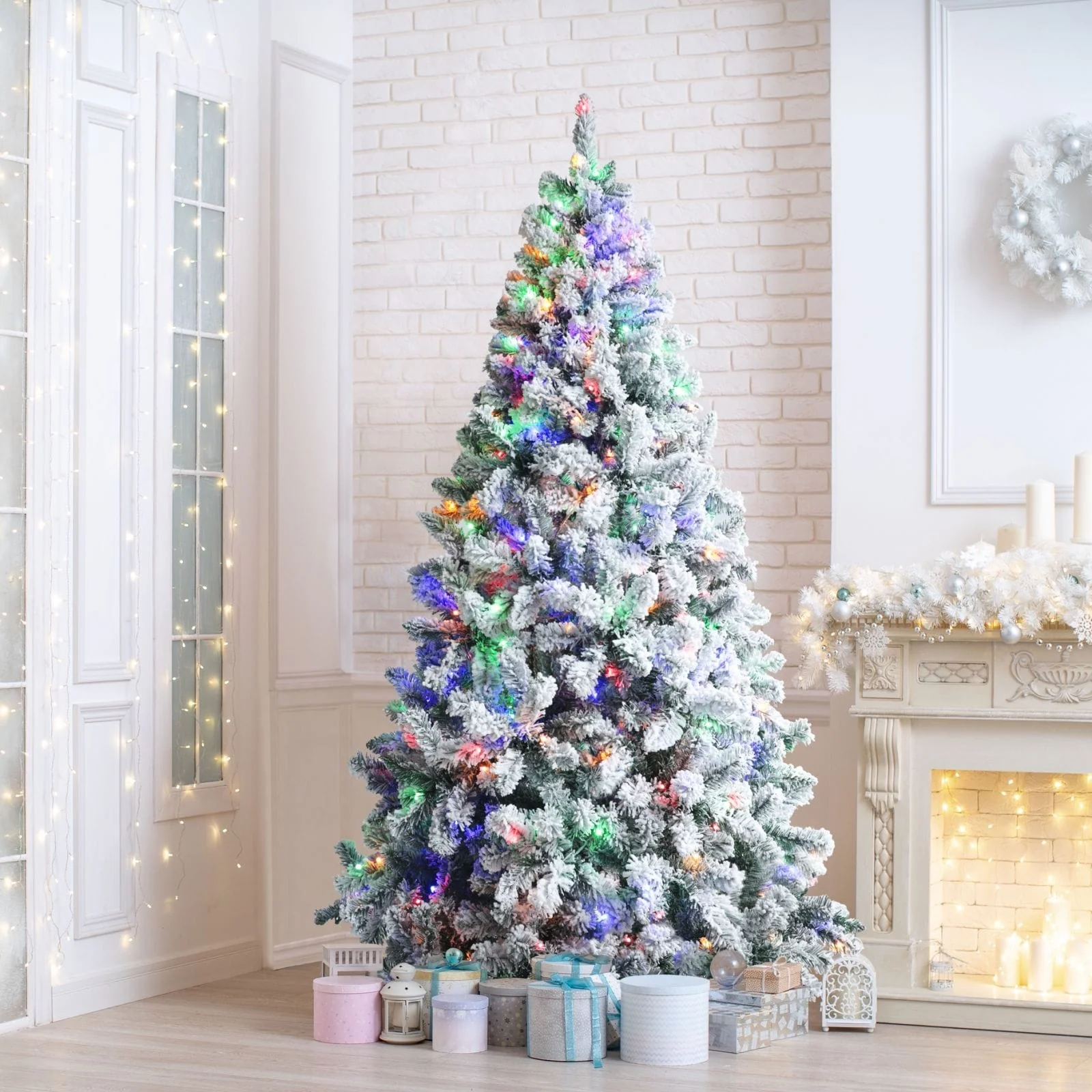 Bring the winter wonderland into your home with the Lighted Flocked Christmas Tree! Fluffing the flocked Christmas pine tree may take 30 or 45 minutes the first time, but when fully shaped, for a splendid display. Feel free to add more decorations to this pre-lit flocked Christmas tree! This snow flocked Christmas tree with lights is ideal for any setting such as home, courtyard, or commercial places like shops and hotels for years to transfer coziness and happiness through the whole holidays.