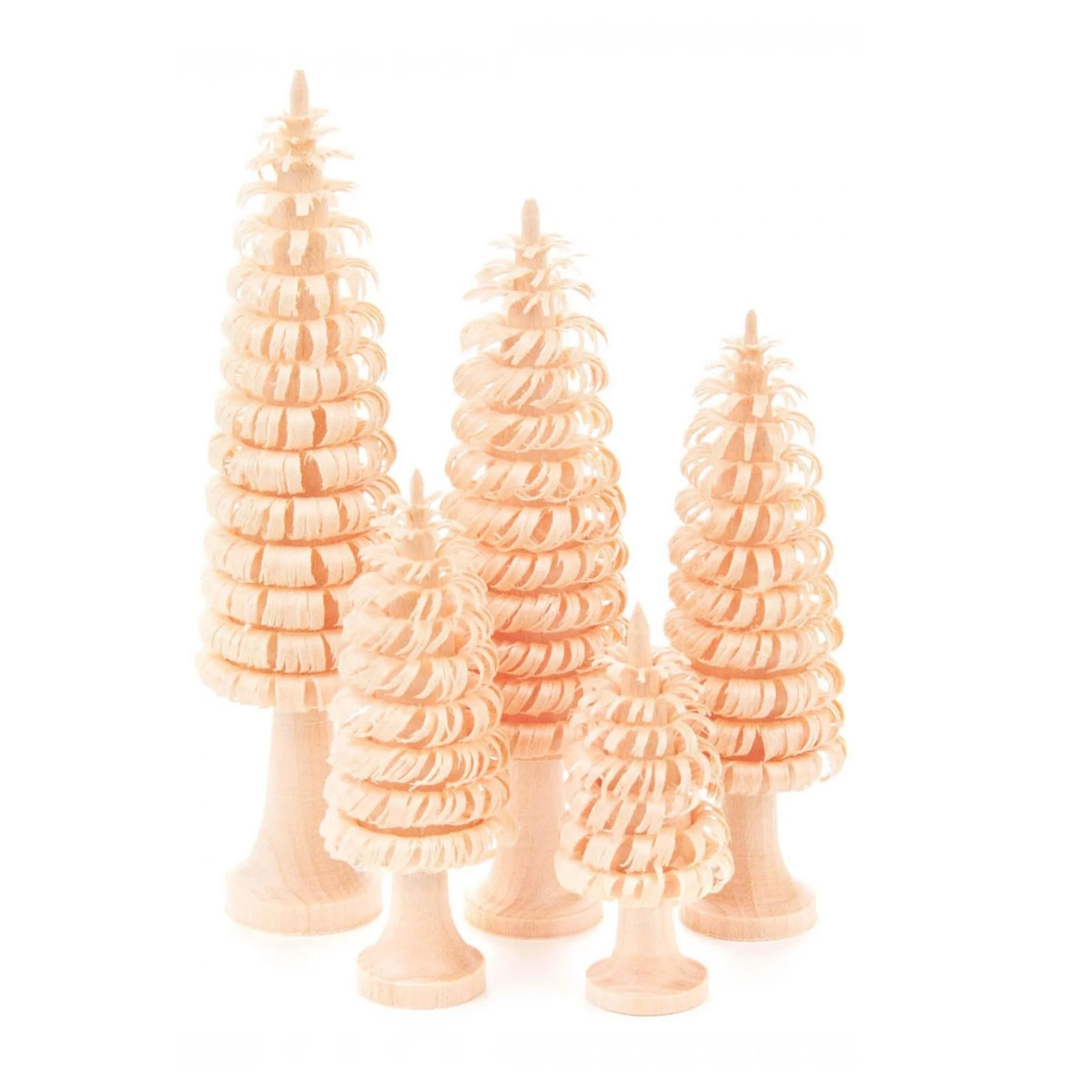 Set of 5 Shaved Wood Trunk Marigold Table Top Christmas Trees 4.25“