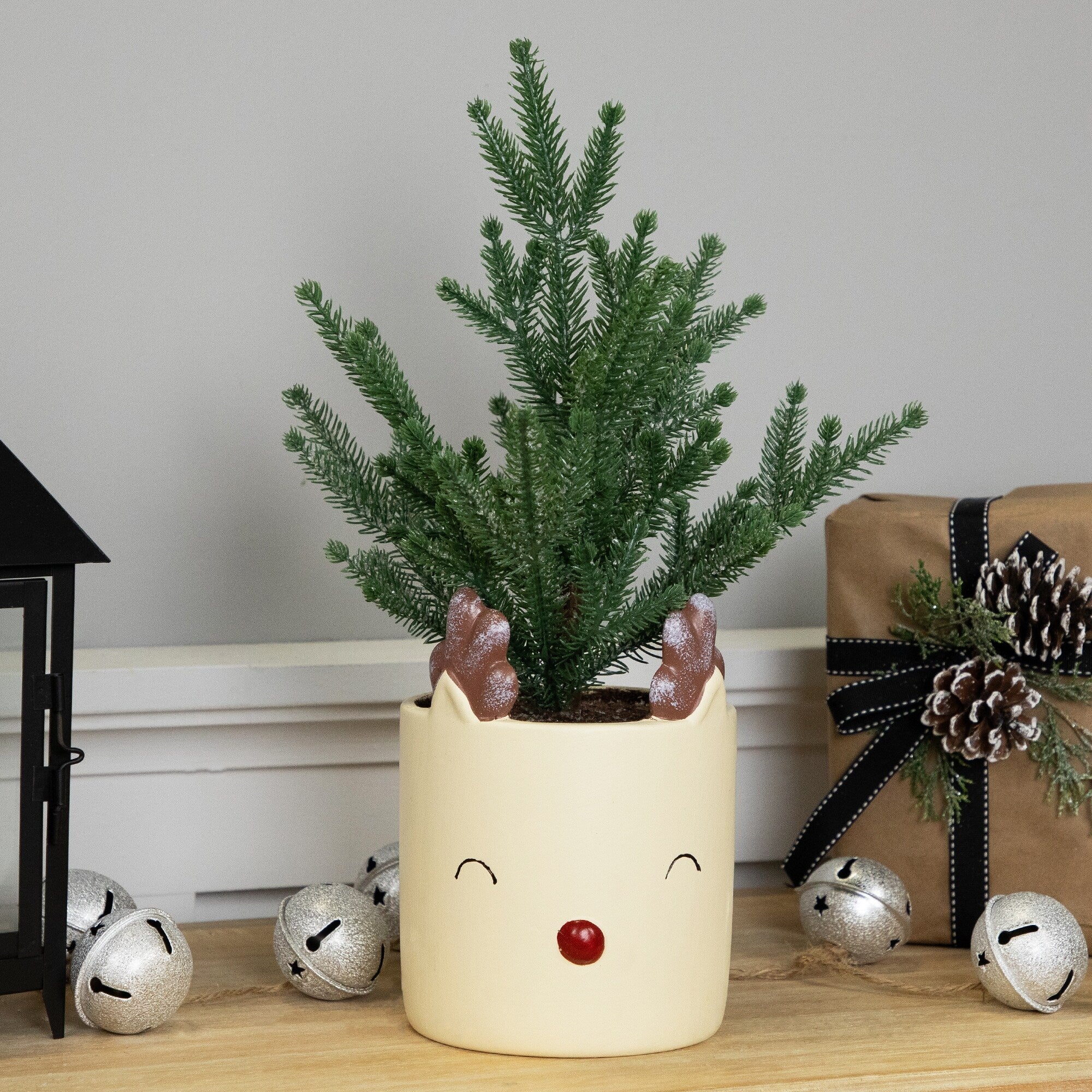 Mini Artificial Christmas Tree in Reindeer - 14.25" - Unlit - Tabletop