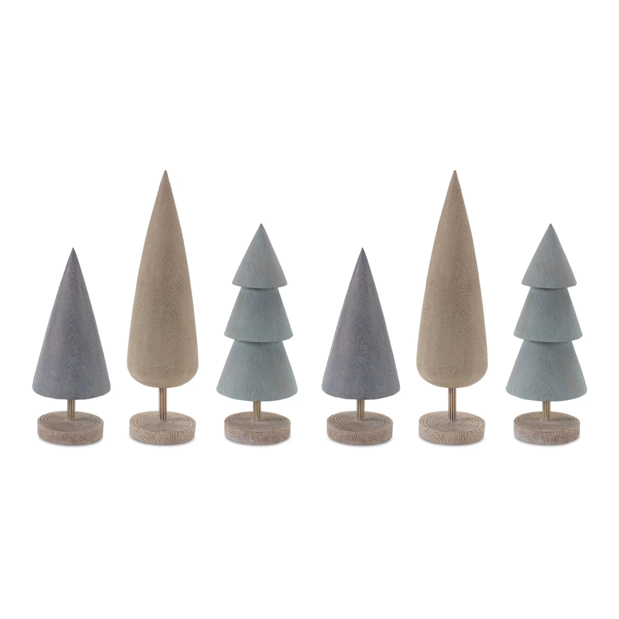 Christmas Tree Tabletop Decorations 17.25" Gray and Brown Set of 6