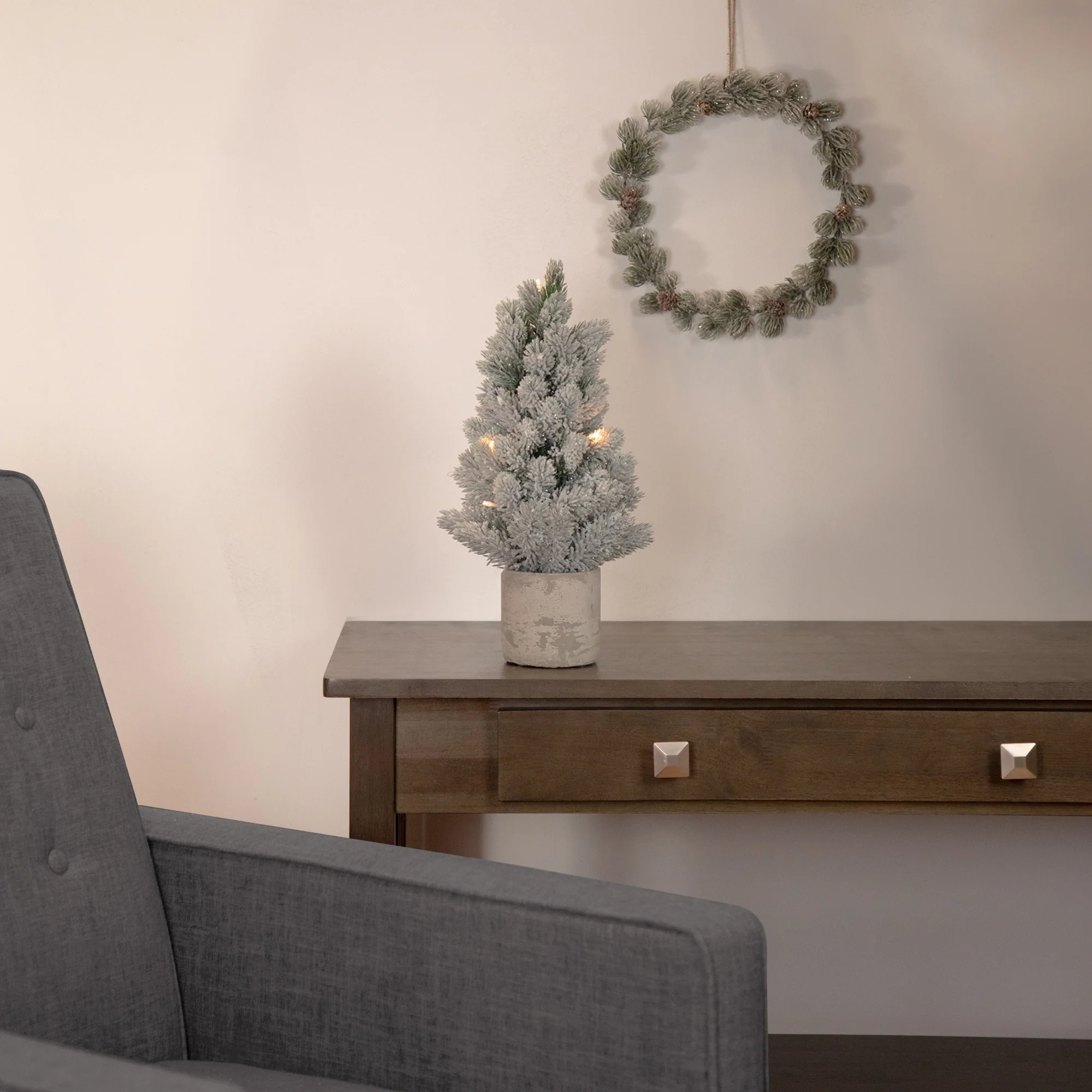 Artificial Pine Christmas Tree Basket Base 20" Warm White LED Lights
