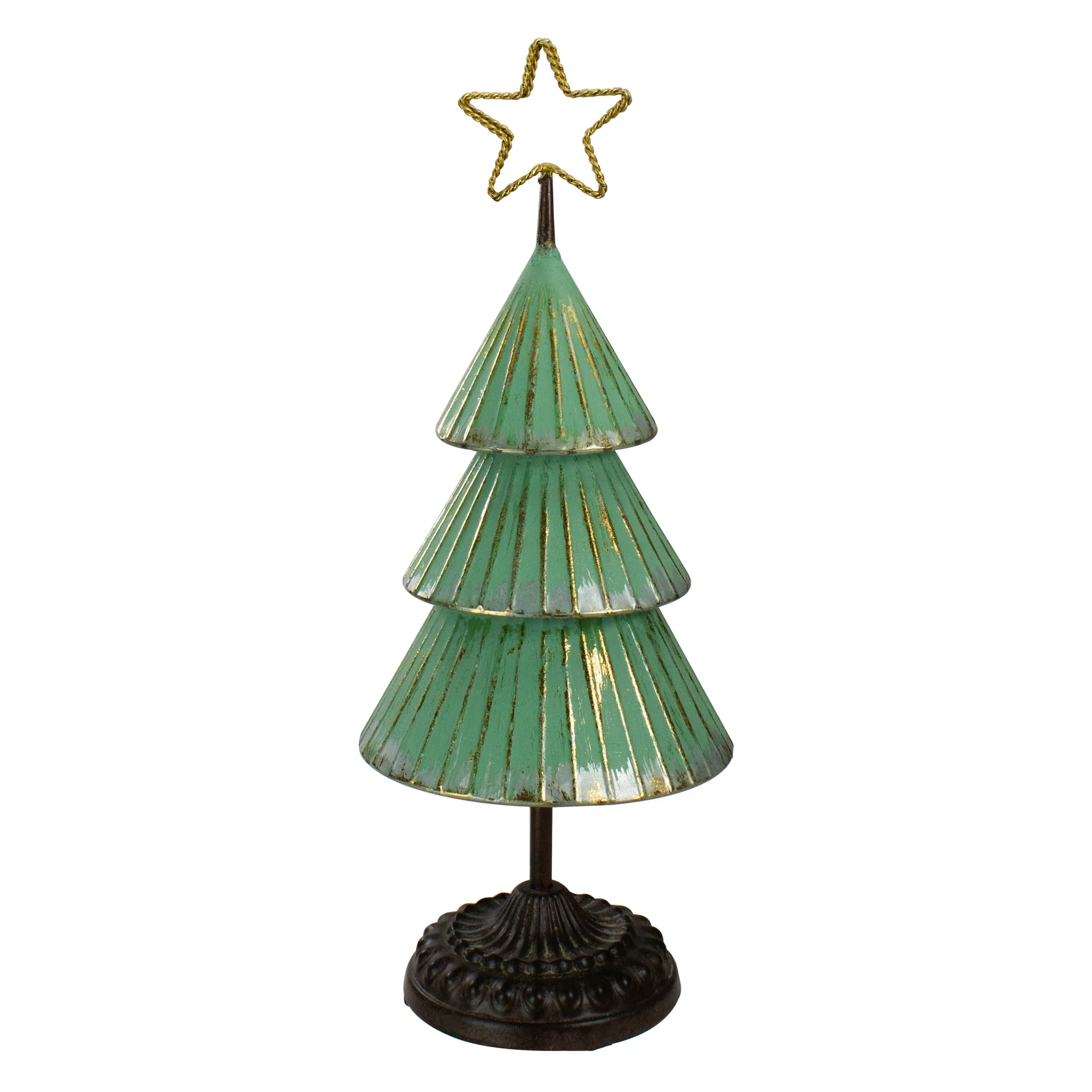 17"es Rustic Green Gold Tabletop Christmas Tree a Cutout Star Topper