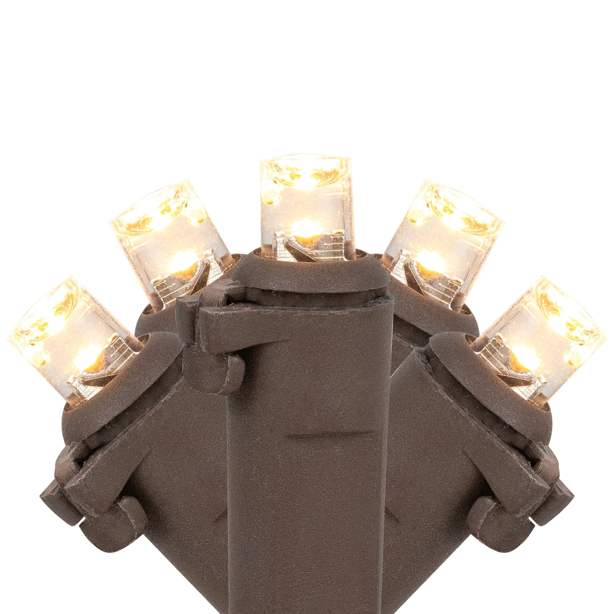 50ct Warm White LED Wide Angle Christmas Lights, 16.25ft Brown Wire