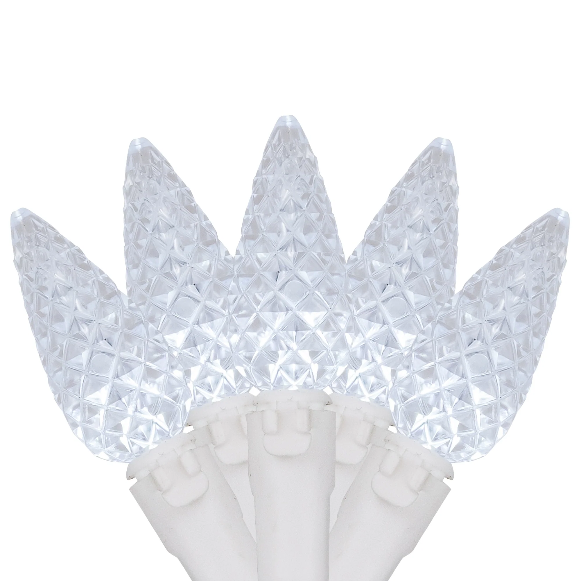 70-Count Pure White LED Faceted C6 Christmas Lights, 23 ft White Wire