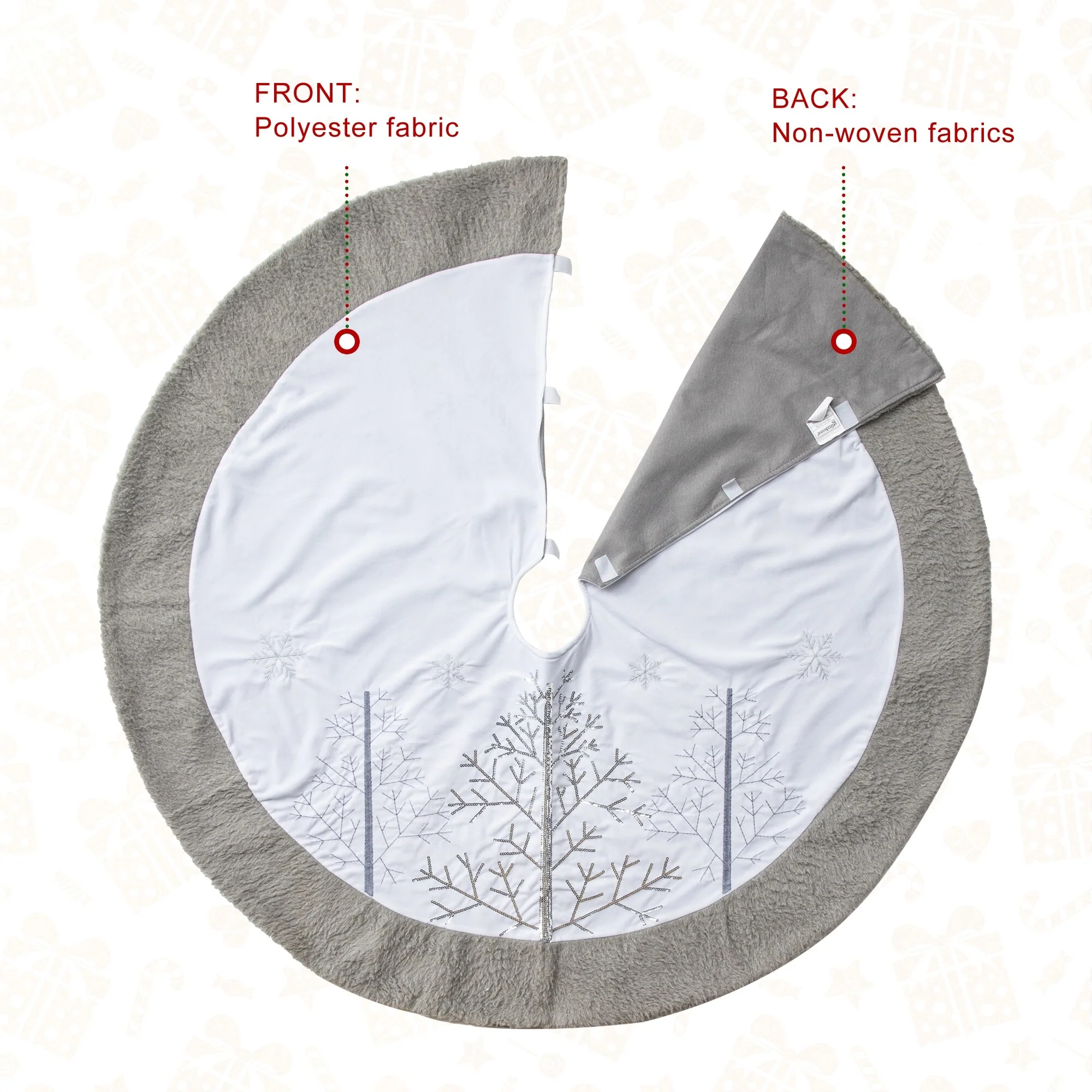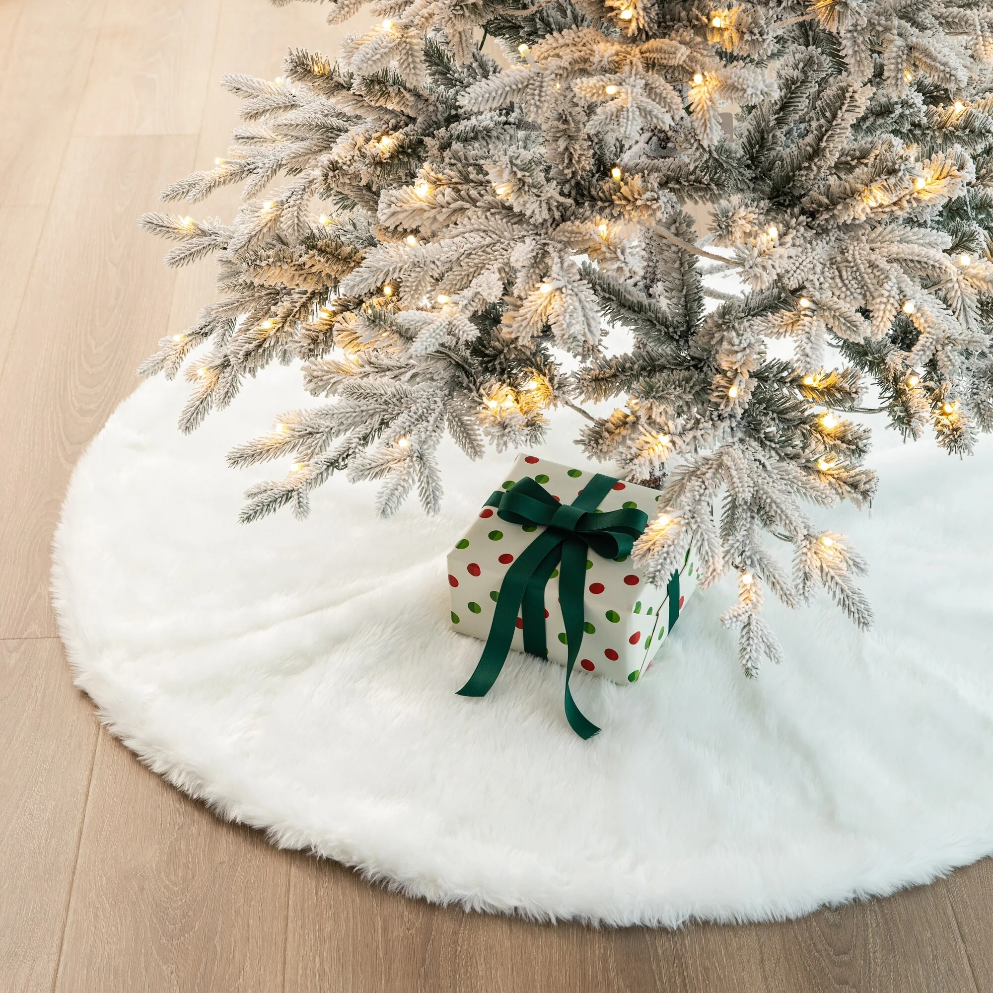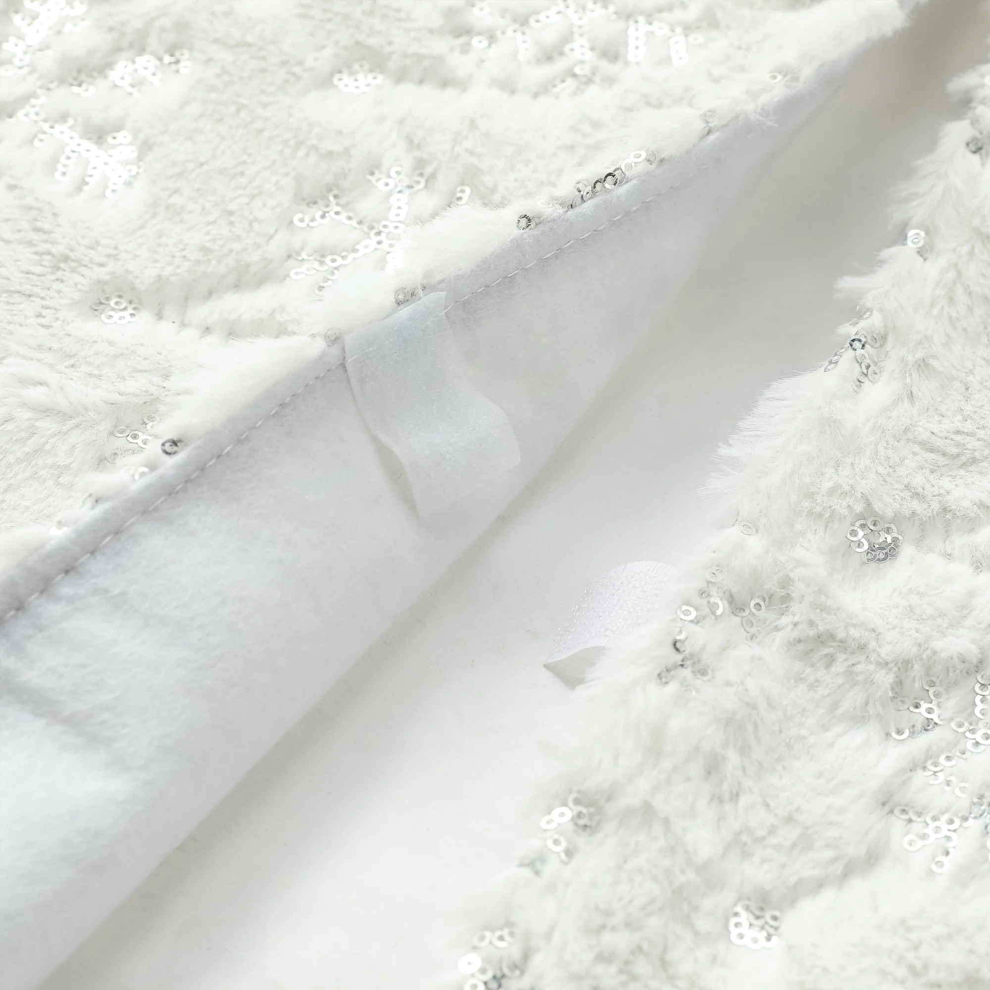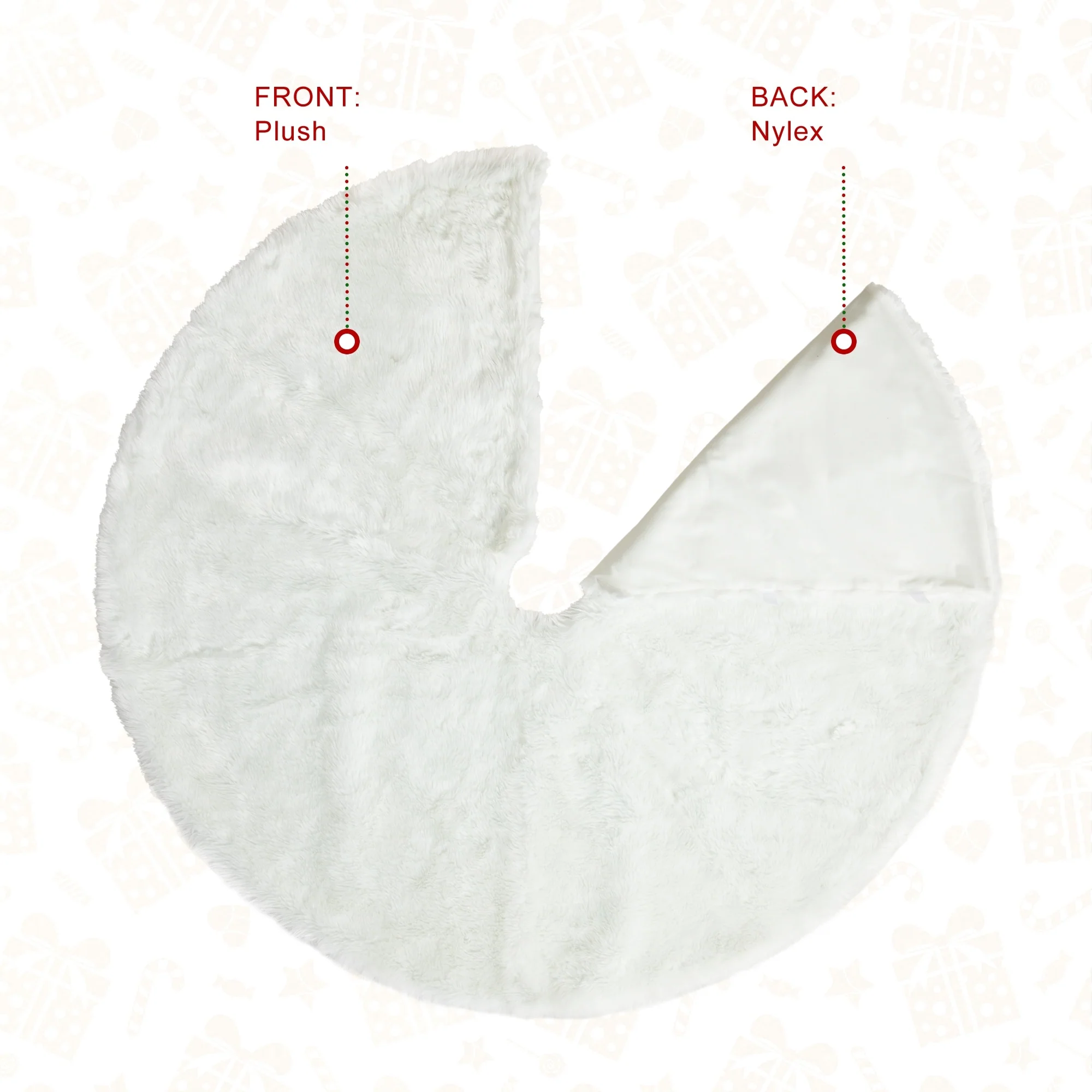 This White Plush Christmas Tree Skirt adds a more feast atmosphere to your home. It adds decoration while hiding unattractive tree stands and helps protect the carpet from tree needles.