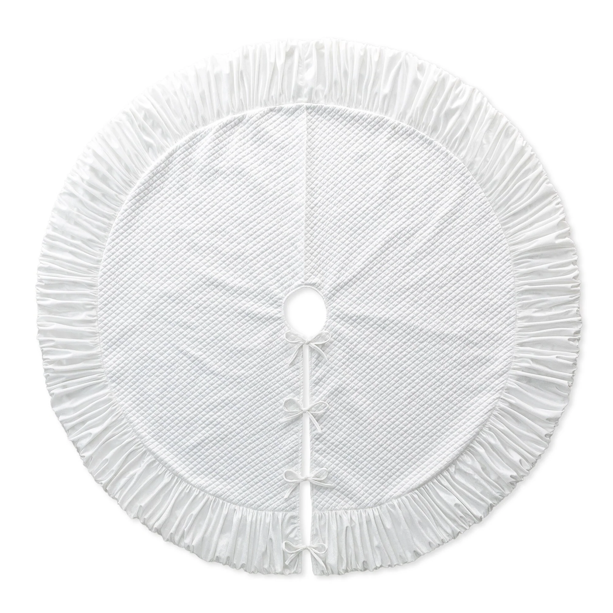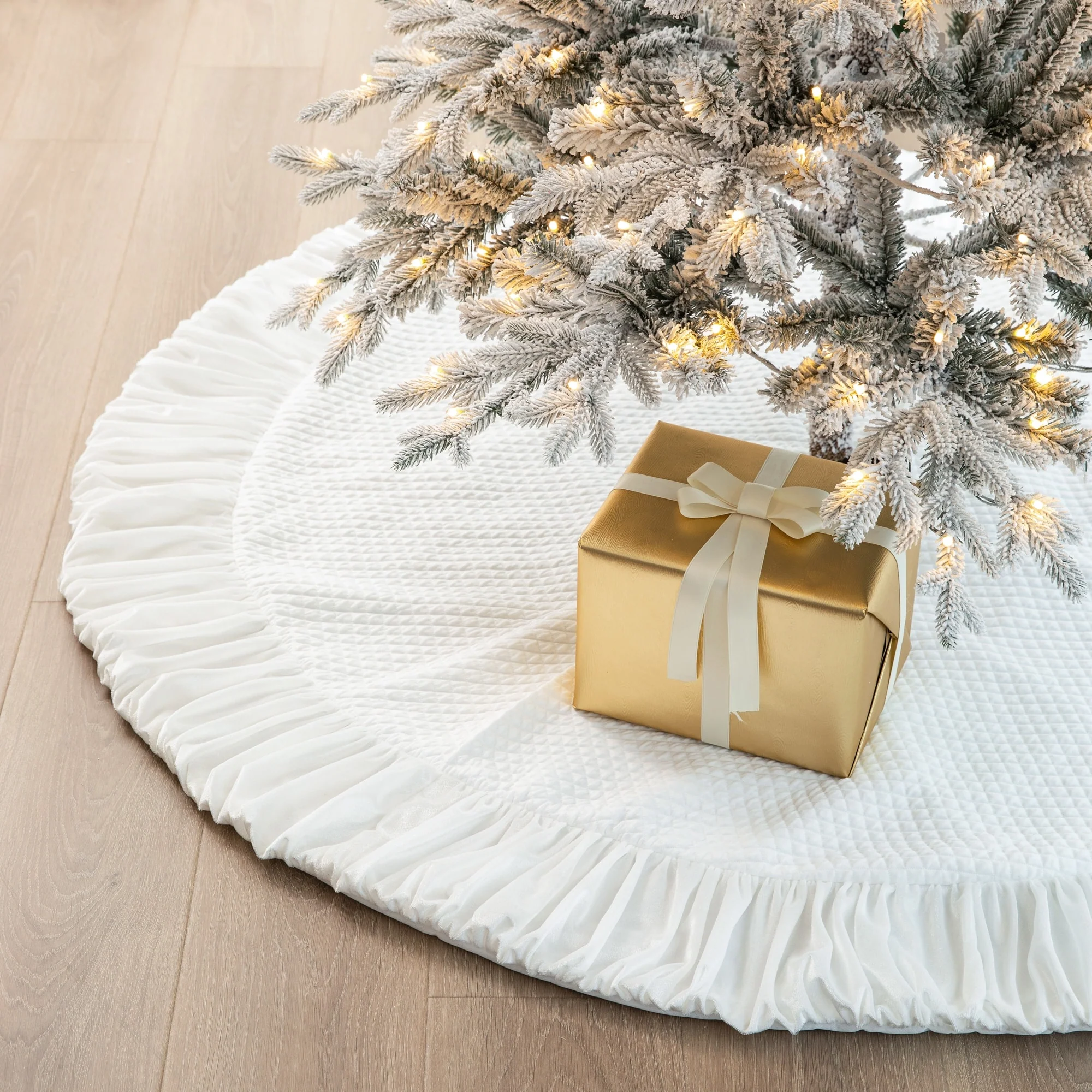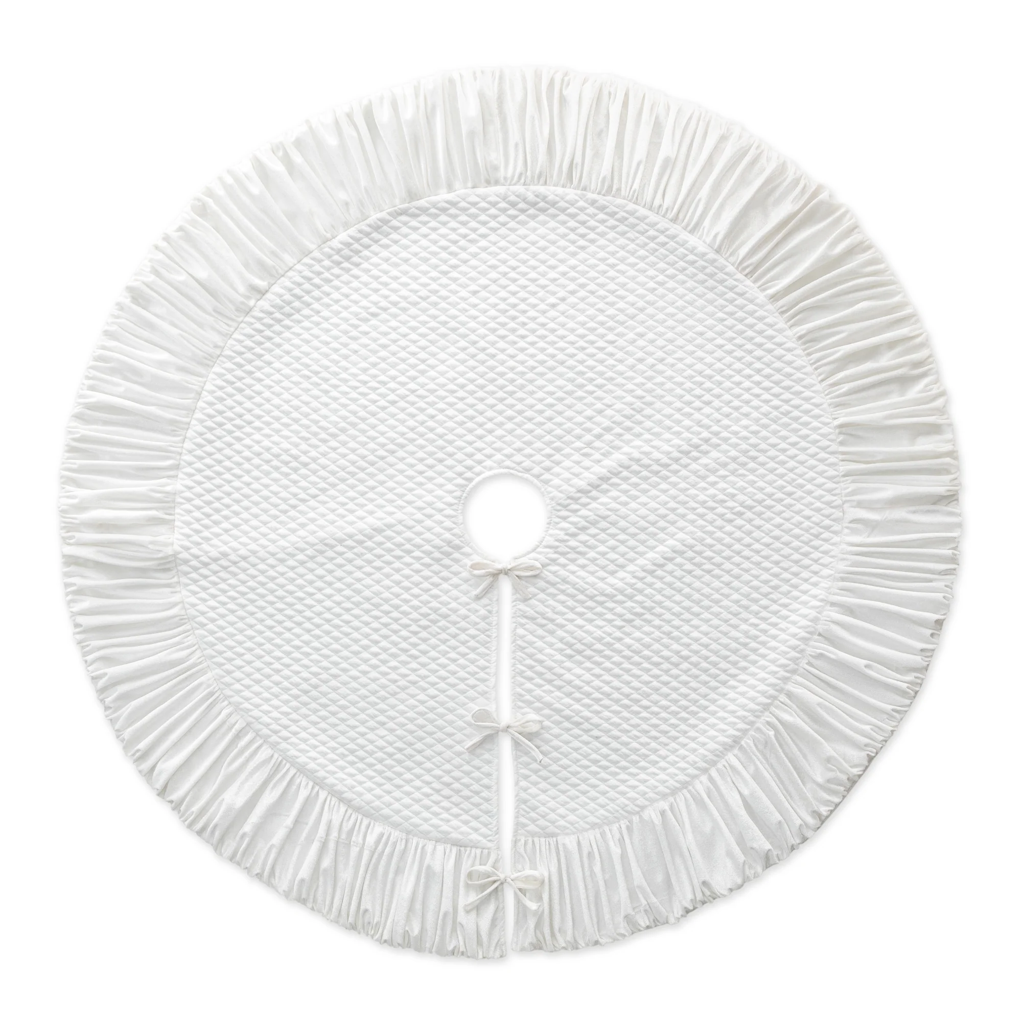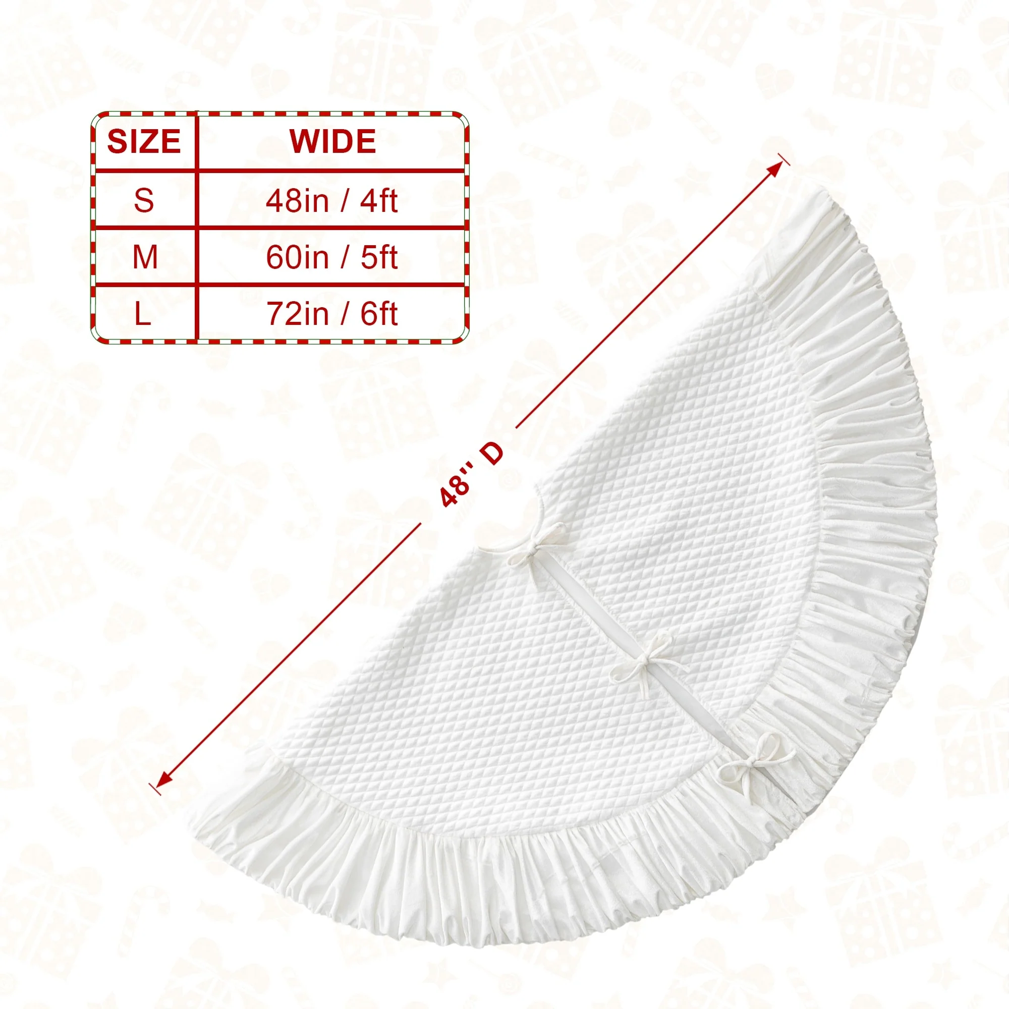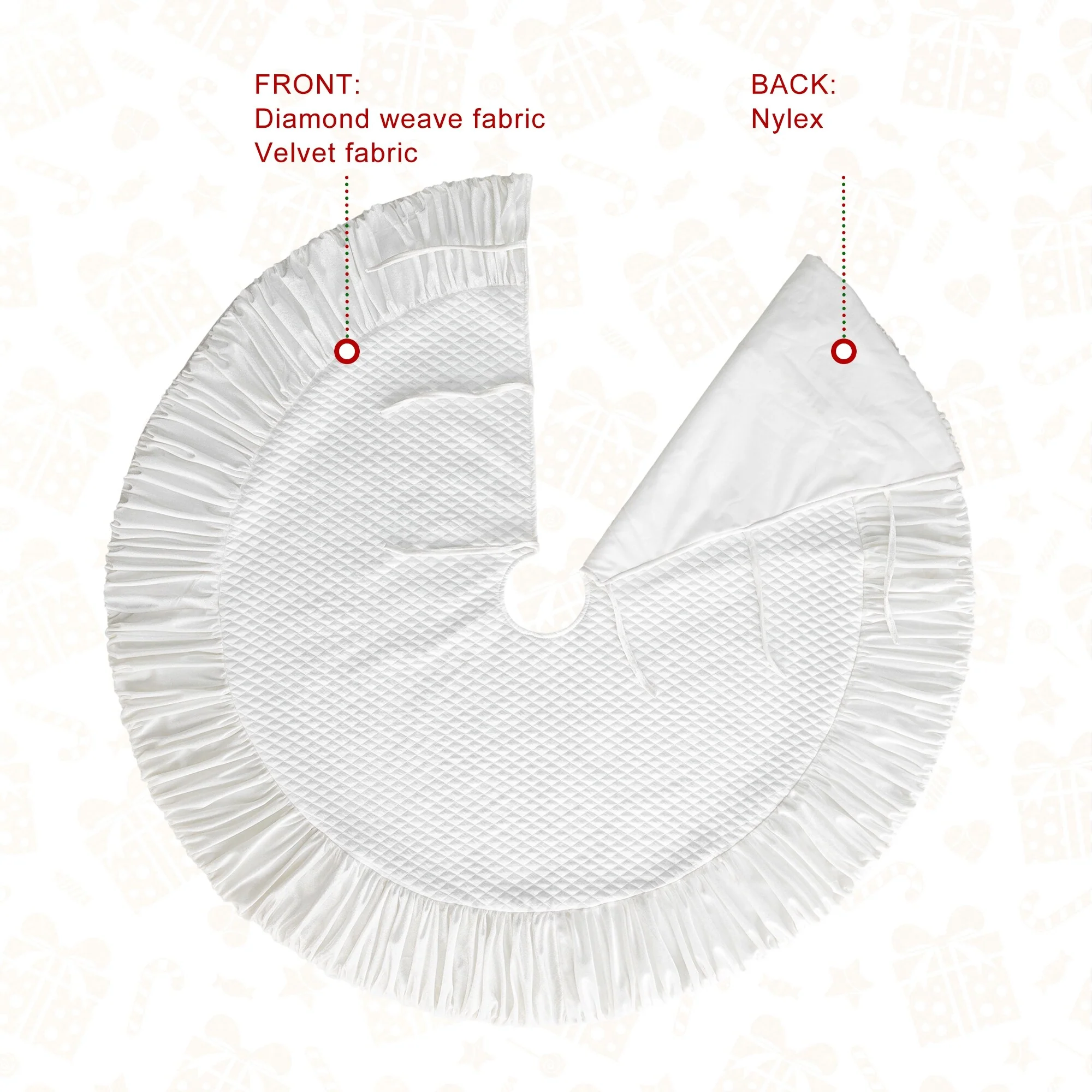 This White Plush Christmas Tree Skirt adds a more feast atmosphere to your home. It adds decoration while hiding unattractive tree stands and helps protect the carpet from tree needles.