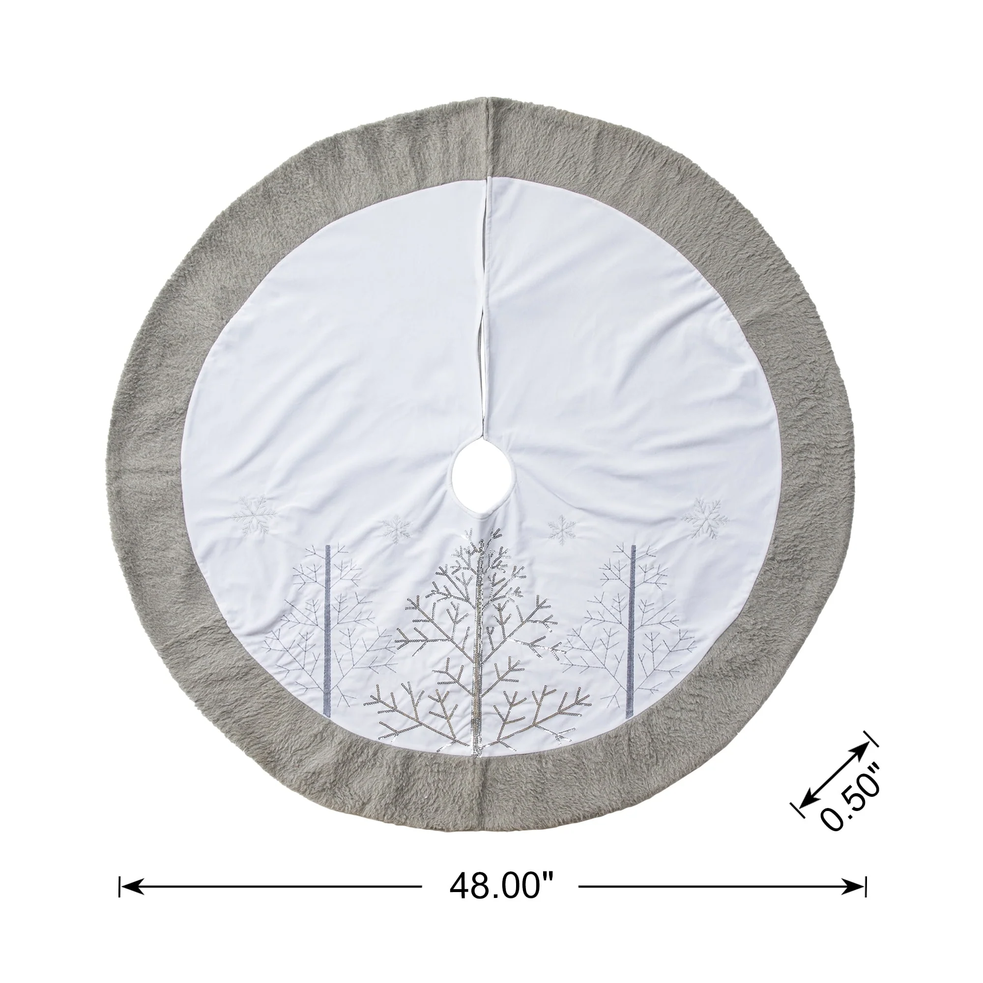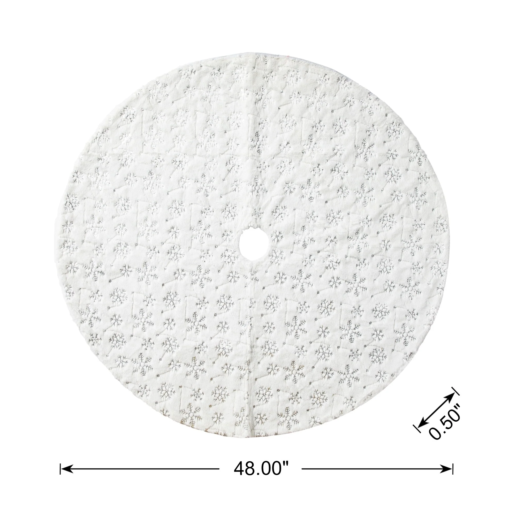 - 48-inches Snowflake/Silver Tree/Velvet: 48 inches in diameter x 0.5 inches in thickness