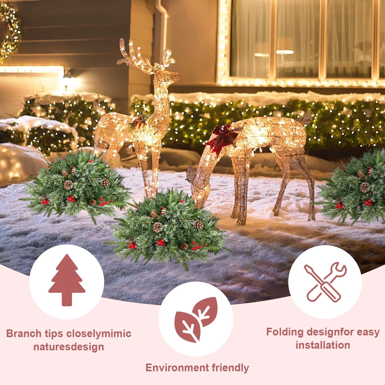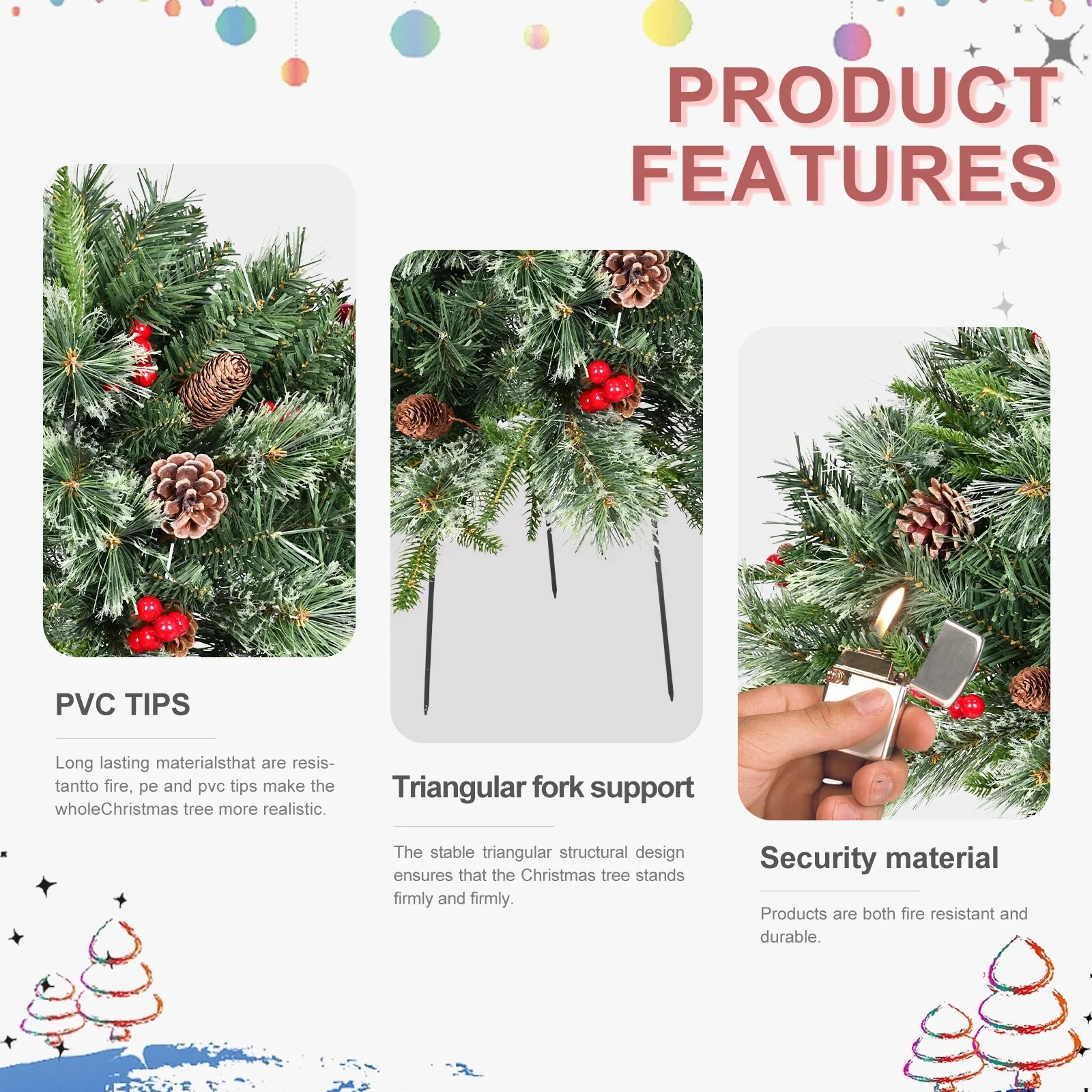Decorated with 14 Pine Cones & 12 Red Berries - Pre-decorated with rustic pine cones and vibrant red berries—instantly festive and ready to display, no additional ornaments required.
