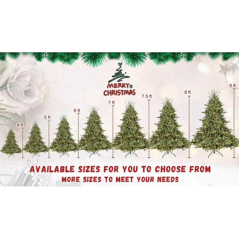 7FT Full-Shape Christmas Tree with 750 UL Lights-PE/PVC Mixed Branches, 2257 Tips,Wide Base for Spacious Areas