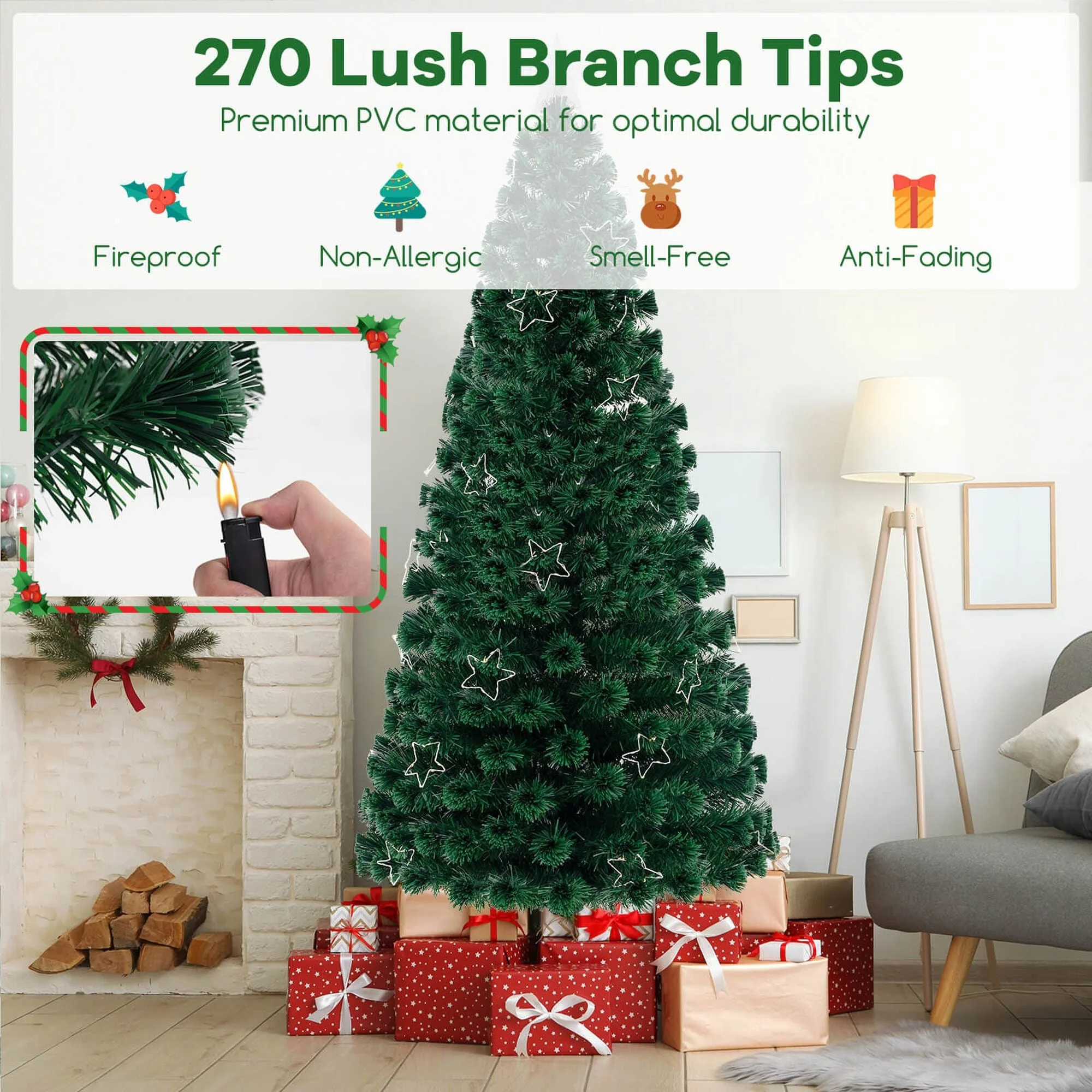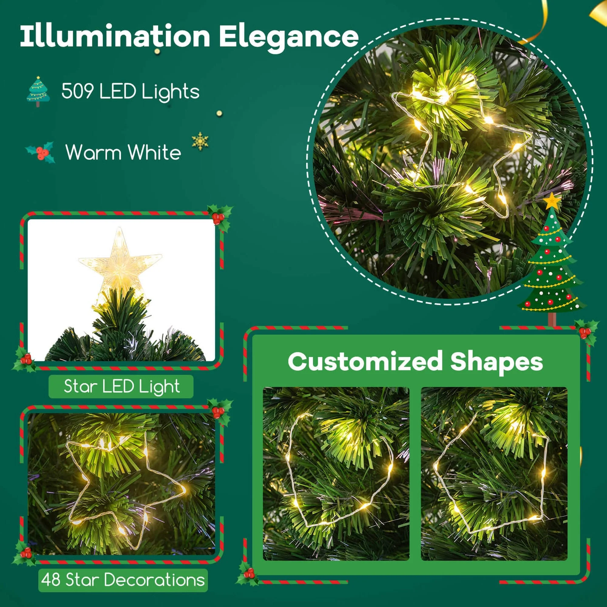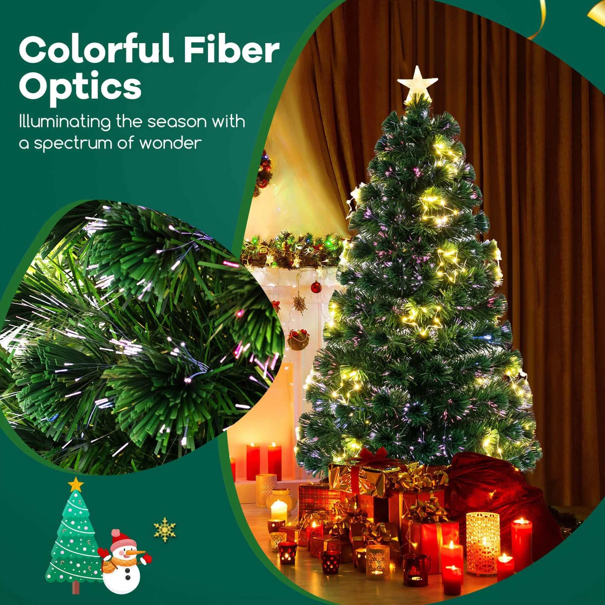 Boasts colorful fiber optics, illuminating the season with a spectrum of wonder