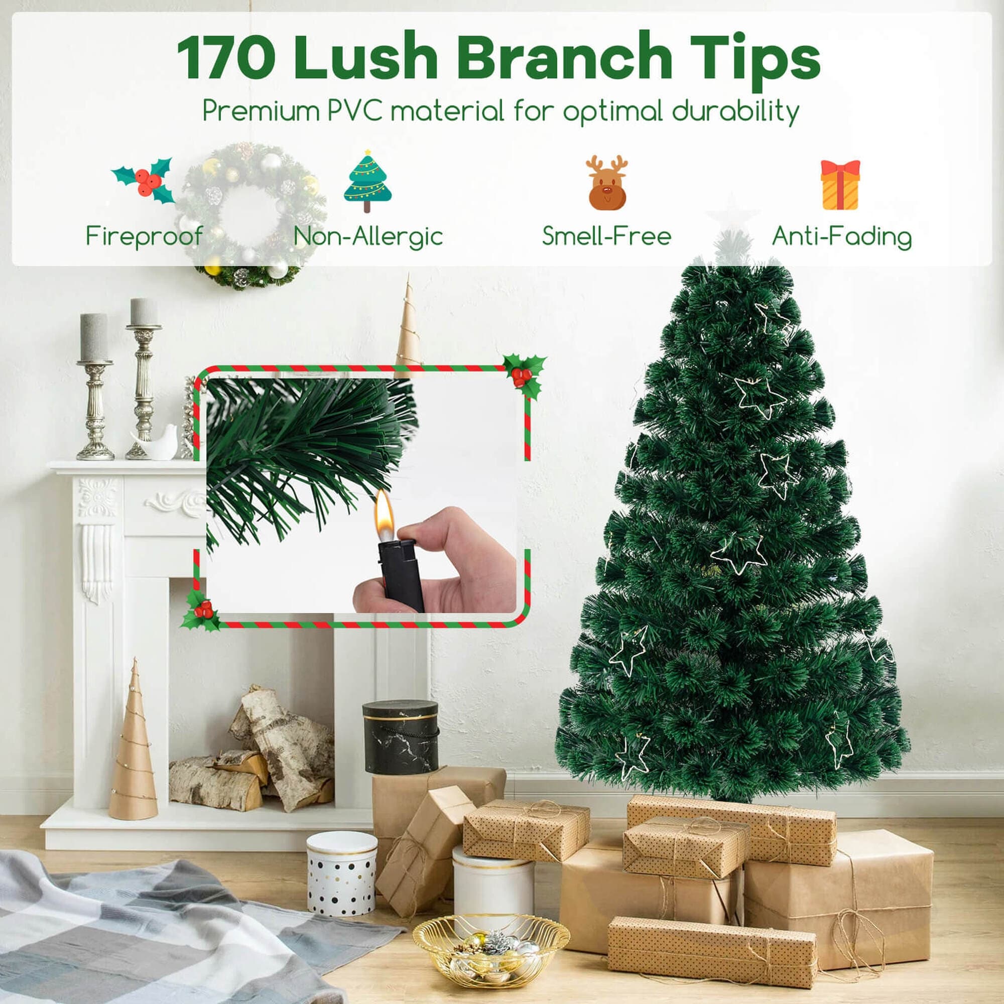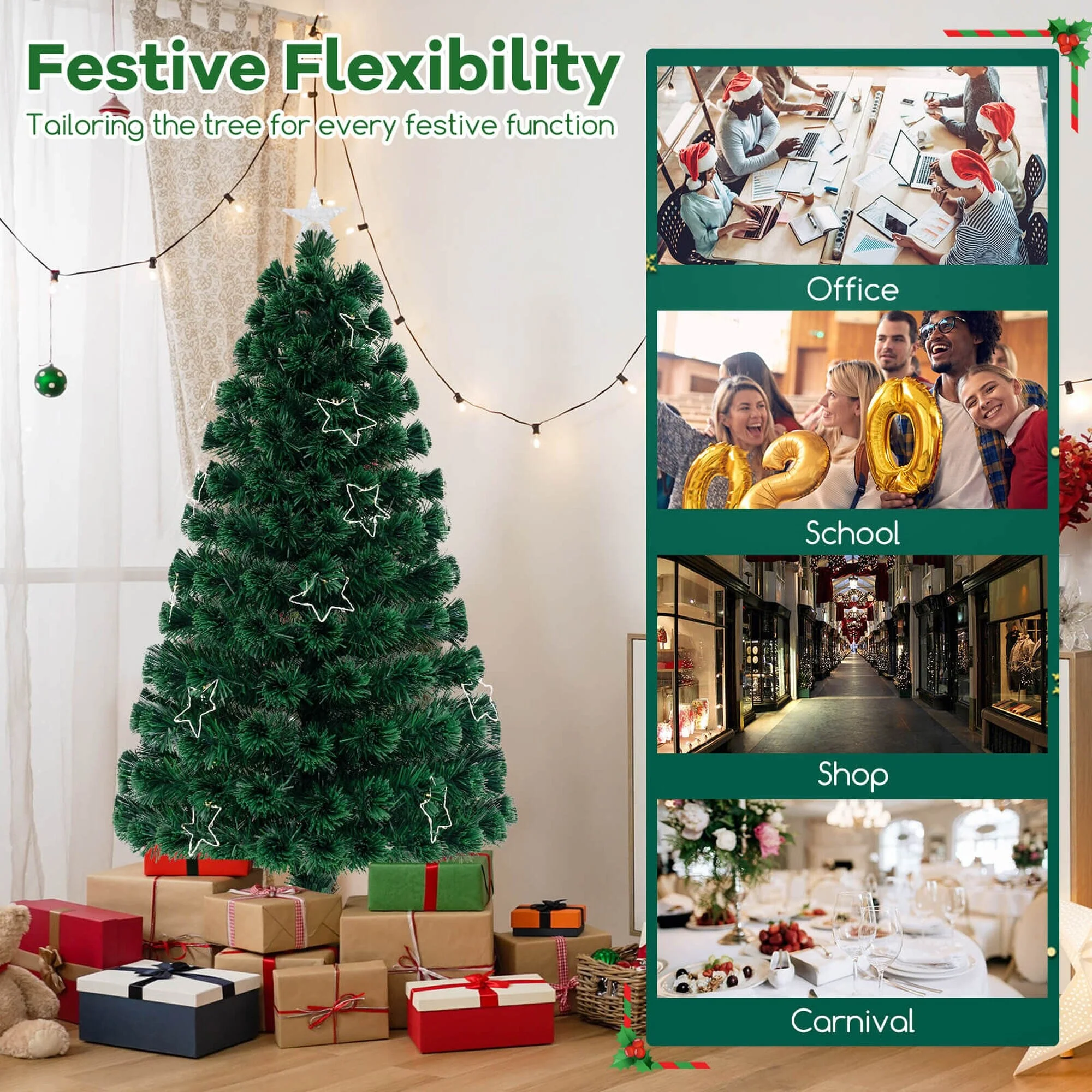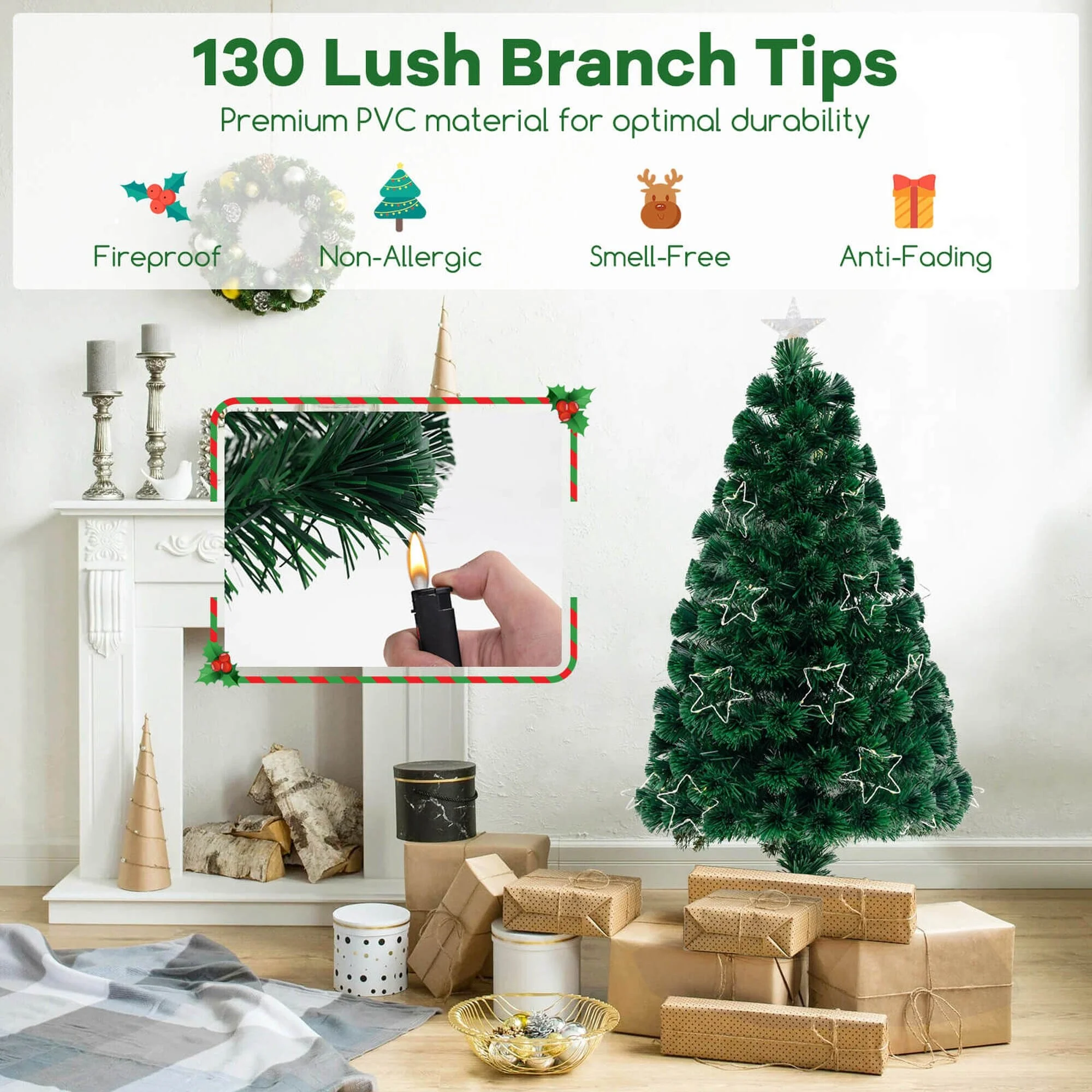 Boasts colorful fiber optics, illuminating the season with a spectrum of wonder