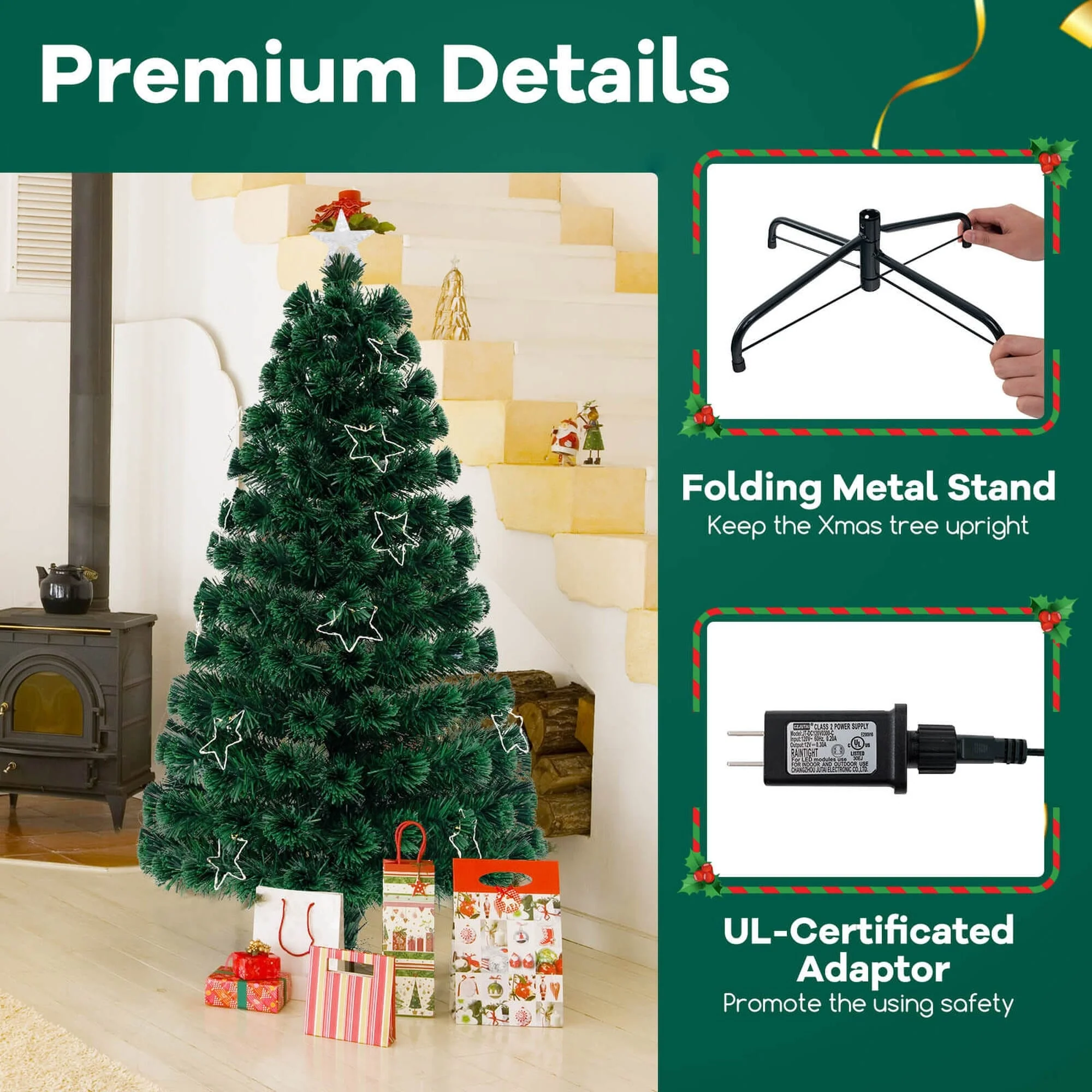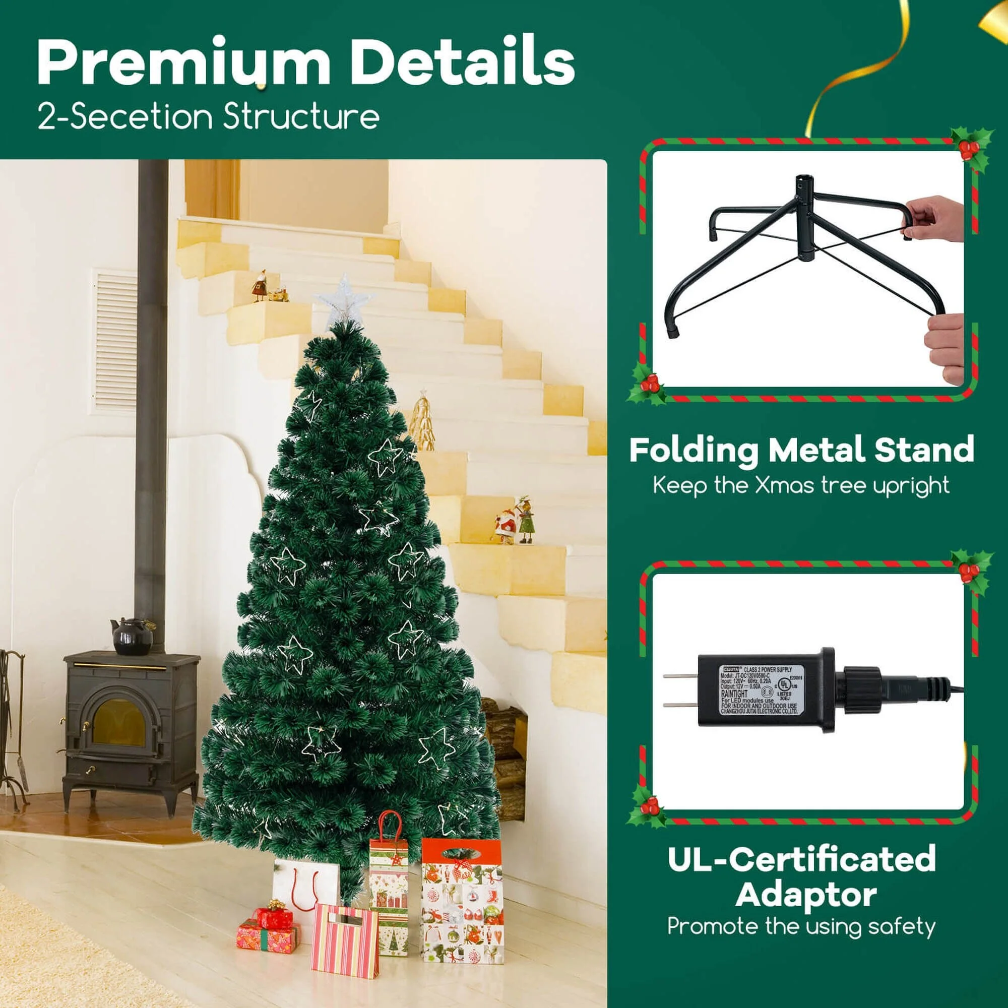 Comes with a folding metal stand to keep the Xmas tree upright
