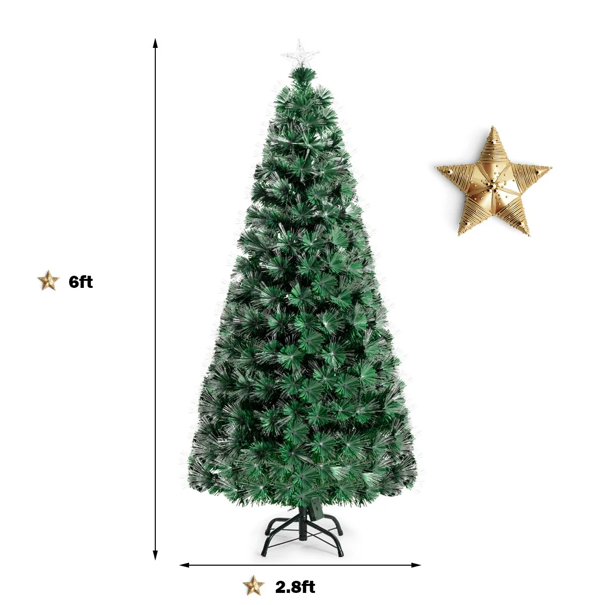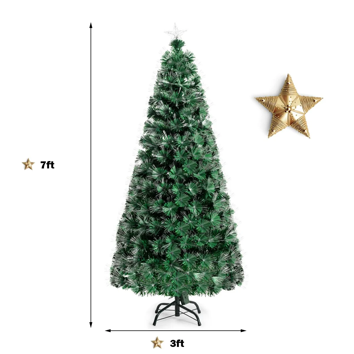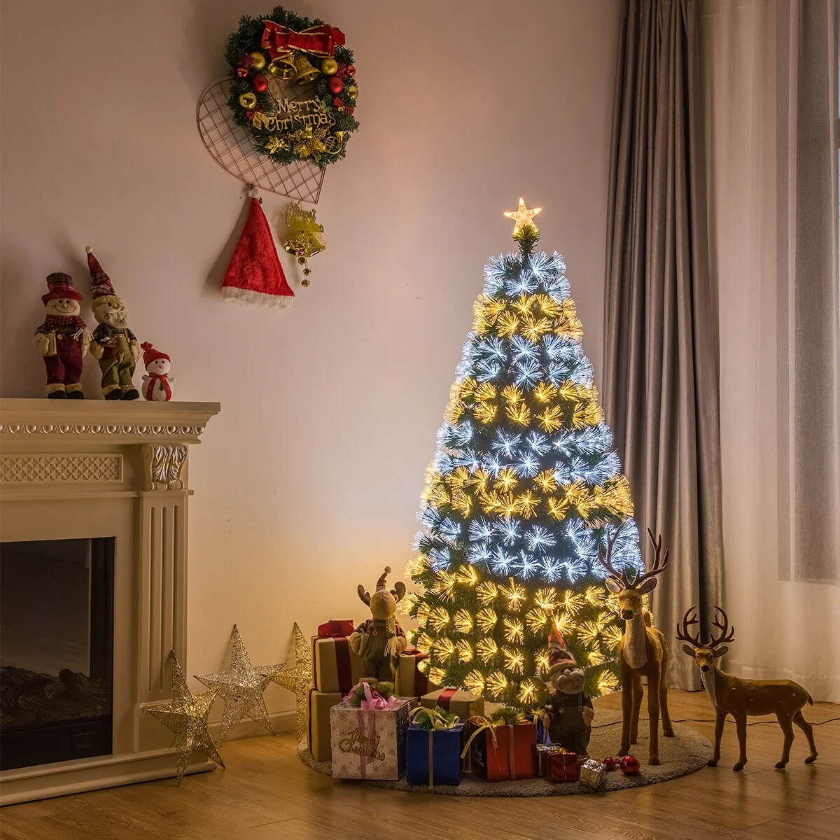 Costway 5Ft 6Ft 7Ft Pre-Lit Fiber Optic PVC Double-Color Lights