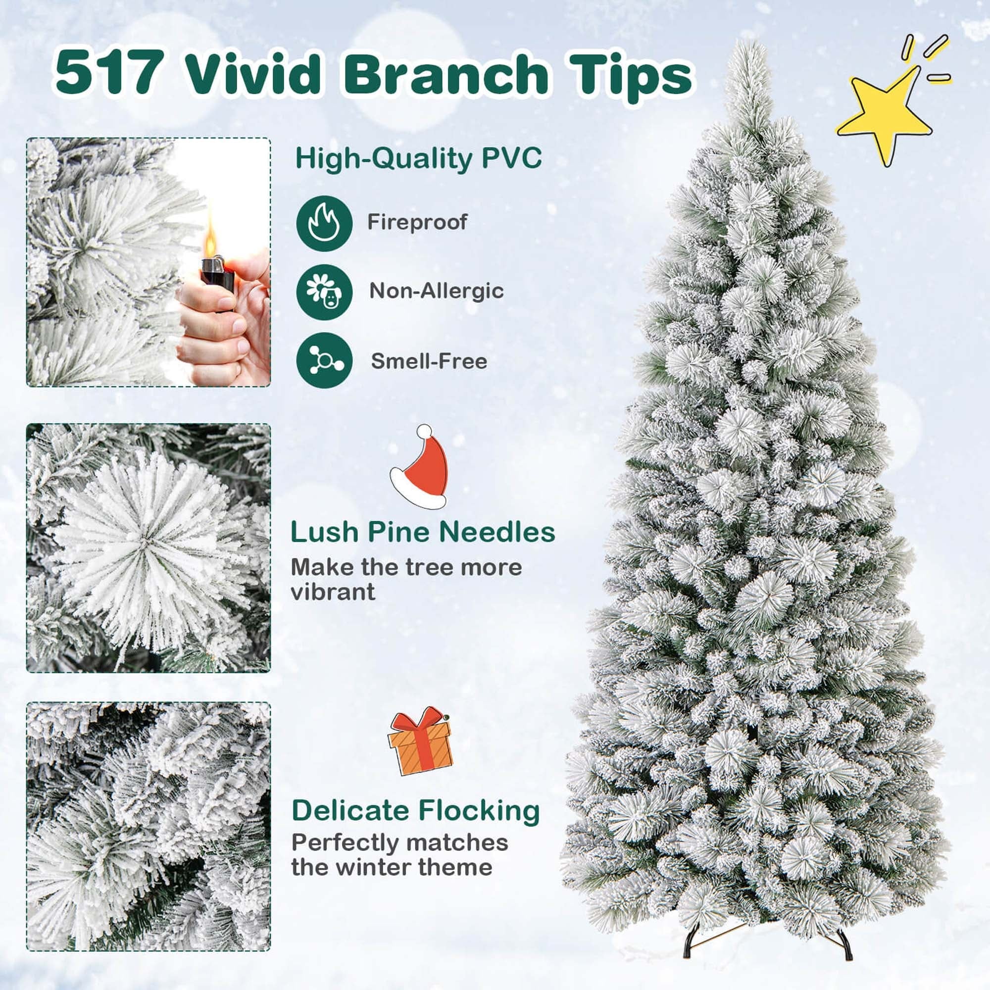 Features delicate flocking that perfectly matches the winter theme