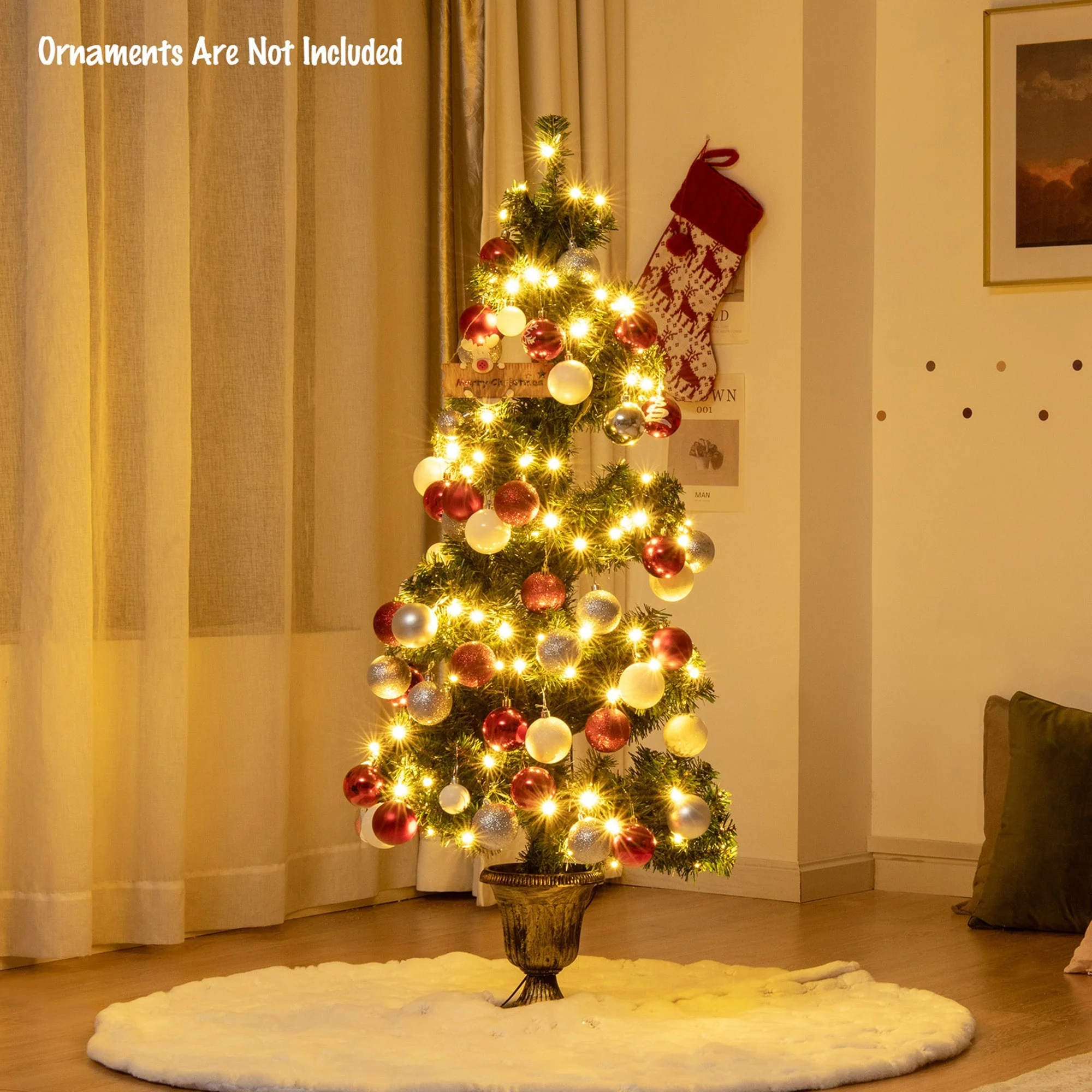 Bring home strong festival atmosphere with this spiral verdant artificial Christmas tree. Perfect for either home or commercial place, this Christmas tree spreads holiday joy and sincere wishes. It stands at 4 feet tall, with 364 branch tips, and composes lush appearance in helical tree shape, being an eye-catching decoration to let you feel the Christmas spirit that is wafting through the decorated places. More, premium PVC leaves can not only make the Christmas tree odor free, but also provide a safe using experience season after season. It also comes with a stable retro urn stand, so that the Christmas tree can stand straightly without toppling. This verdant spiral Christmas potting perfectly matches with entryway, mantel and gate.