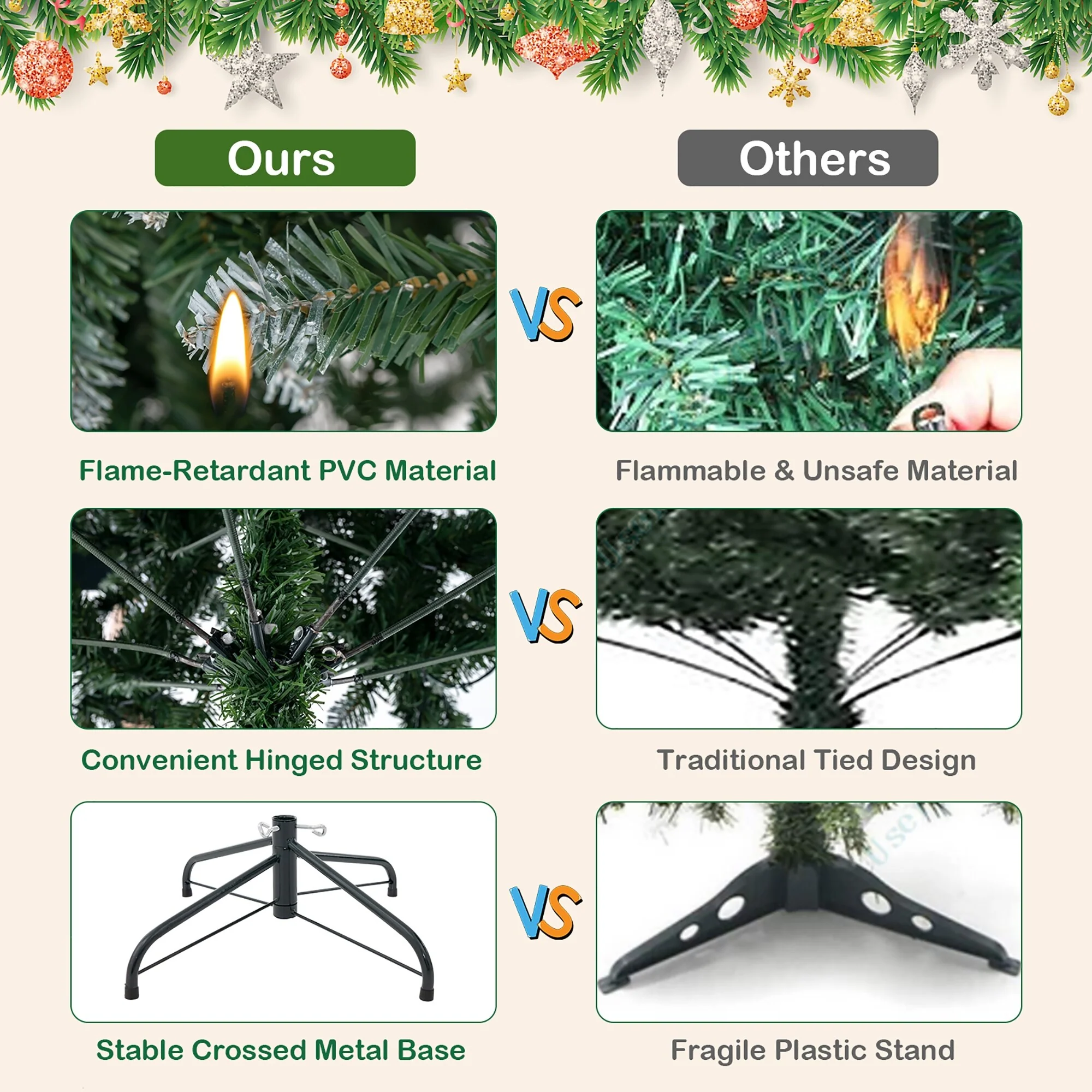 The crossed base provides reliable support, keeping the tree upright and secure