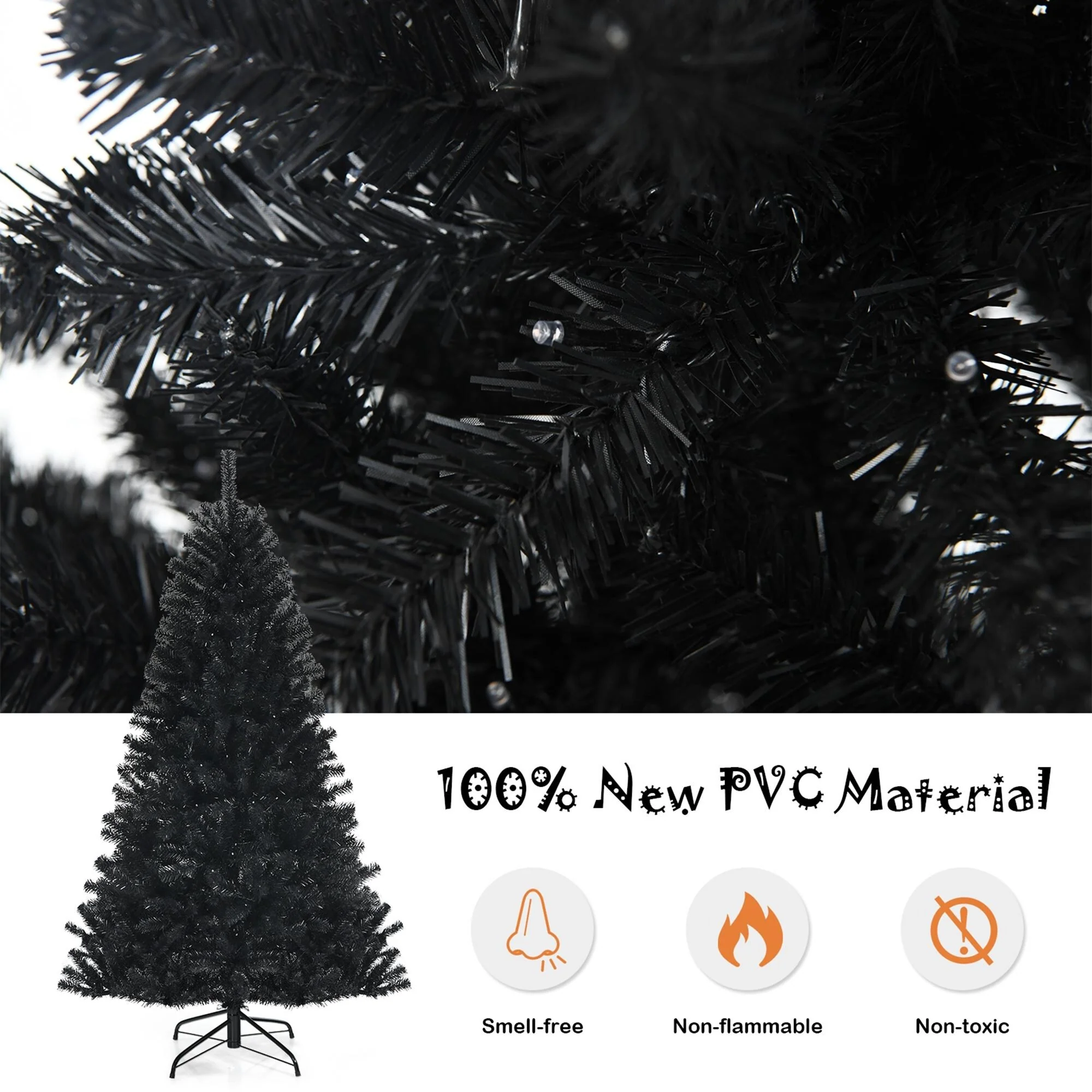 Gymax 6 FT Pre-lit Black Halloween Tree Artificial Hinged Christmas - See Details