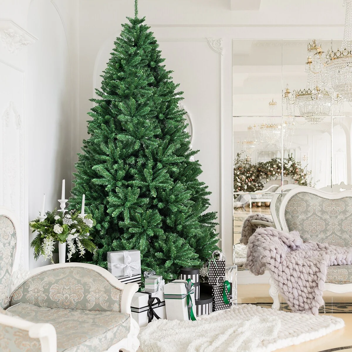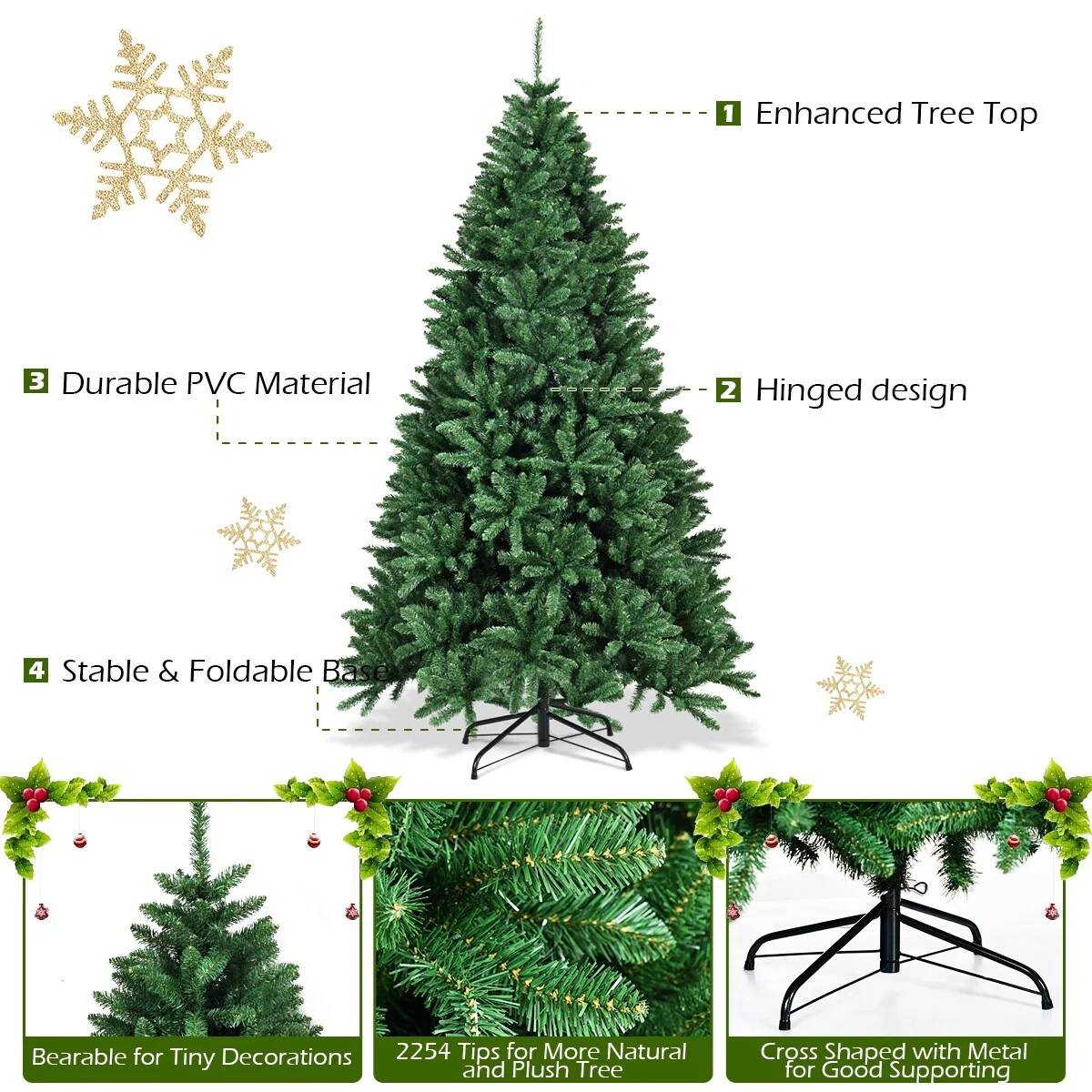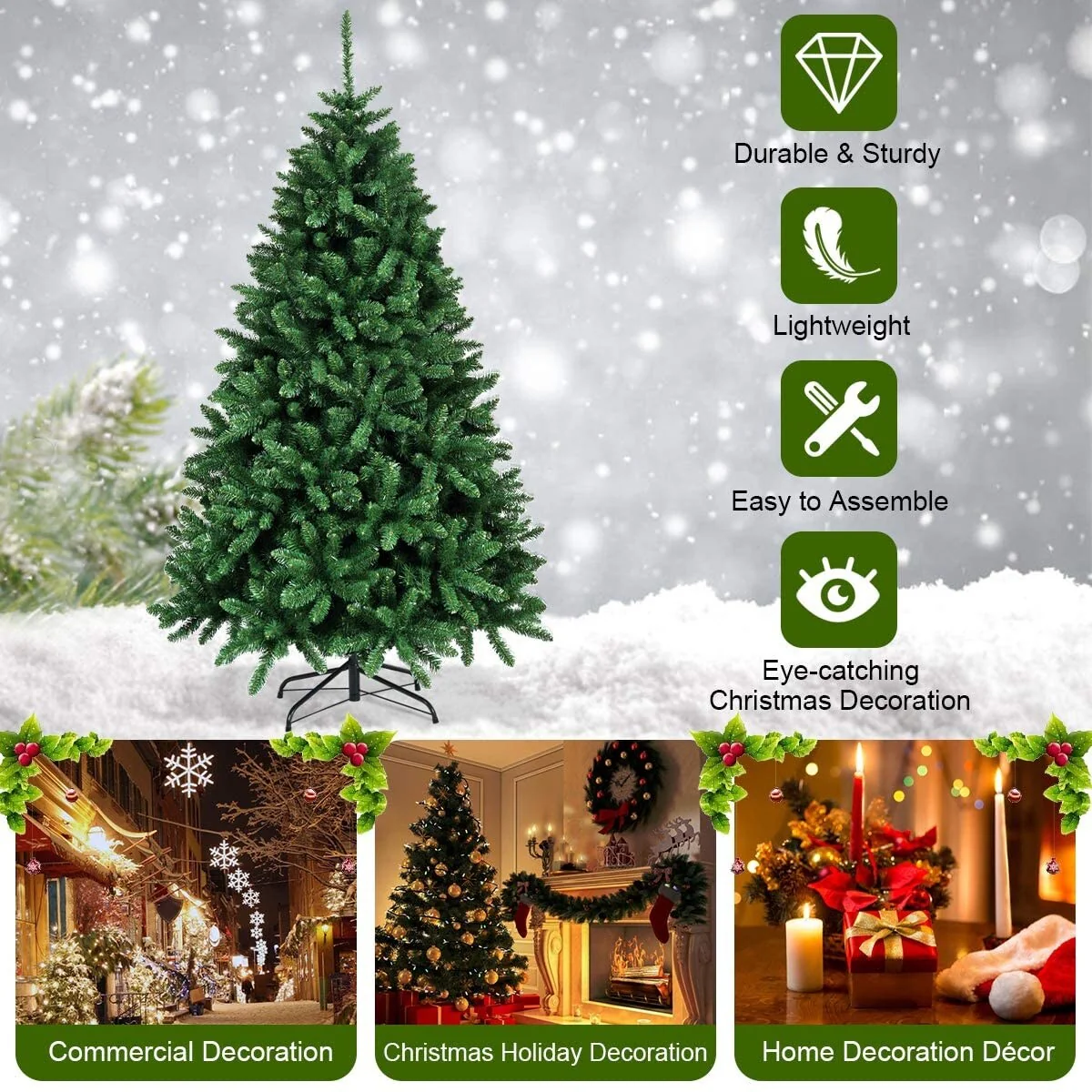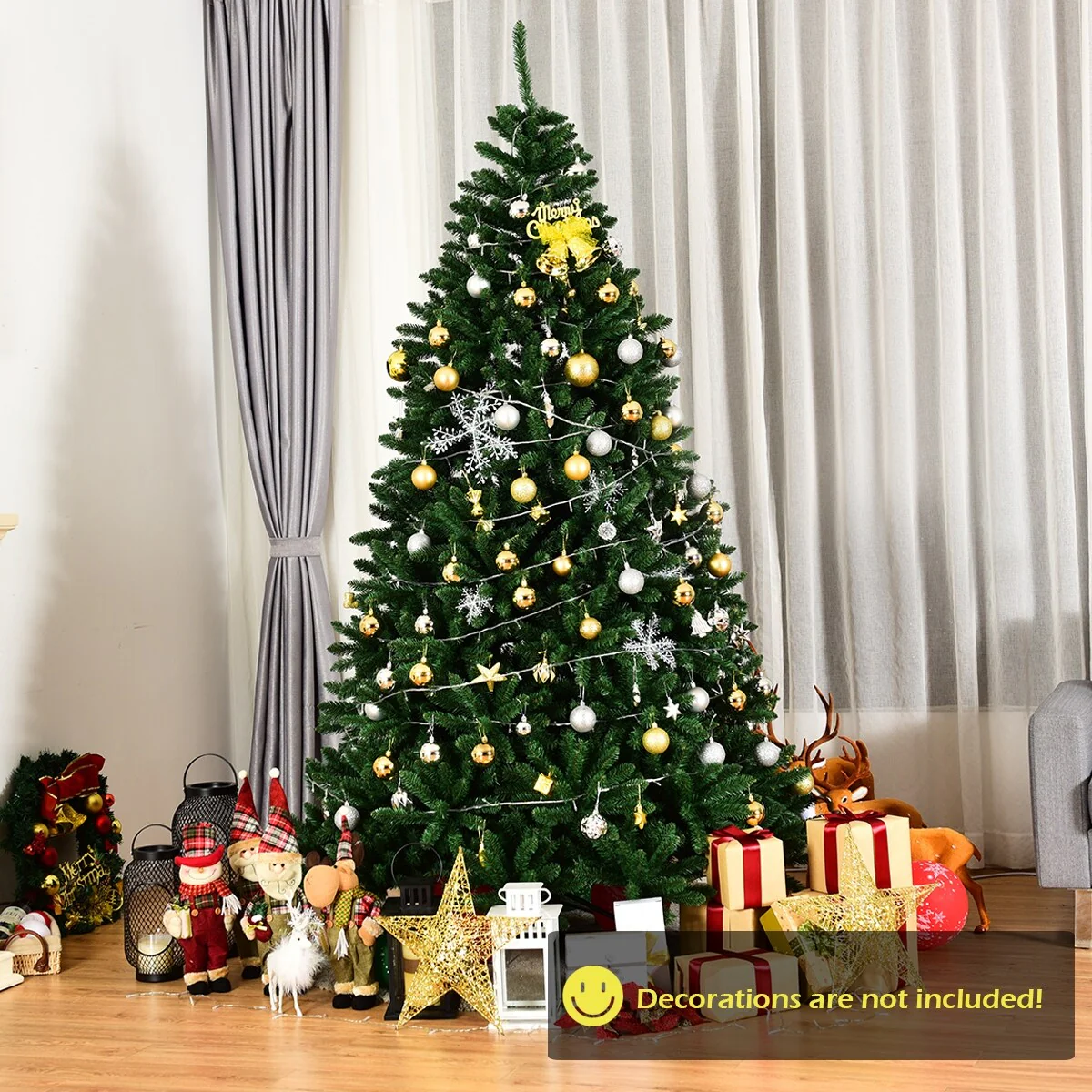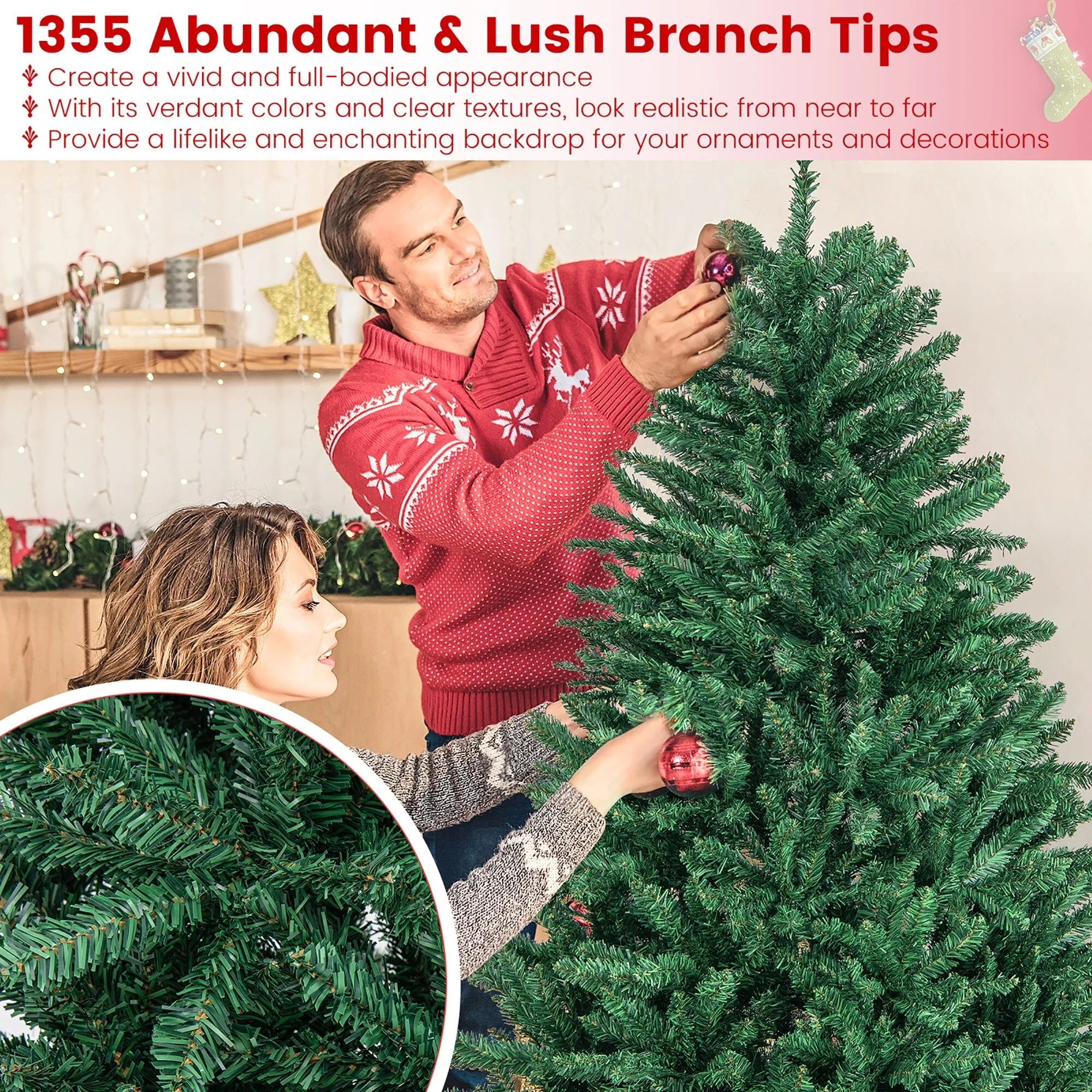 There's no extra holiday decorations provided on this unlit Christmas Tree with full and plush appearance. You can use your imagination and unite your family and friends together to decorate the Christmas tree, which is more meaningful and impressive.The needles of this Christmas tree are made of premium environment-friendly PVC, which is absolutely safe to use and makes it look more real. Besides, many branch tips and simple green color will help emulate a real Christmas tree.