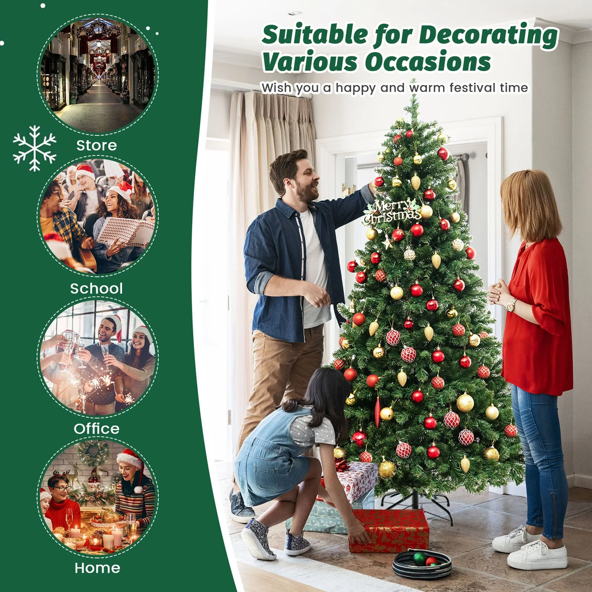 Gymax 7 FT Pre-Lit Artificial Christmas Tree Hinged Xmas Tree w/1188