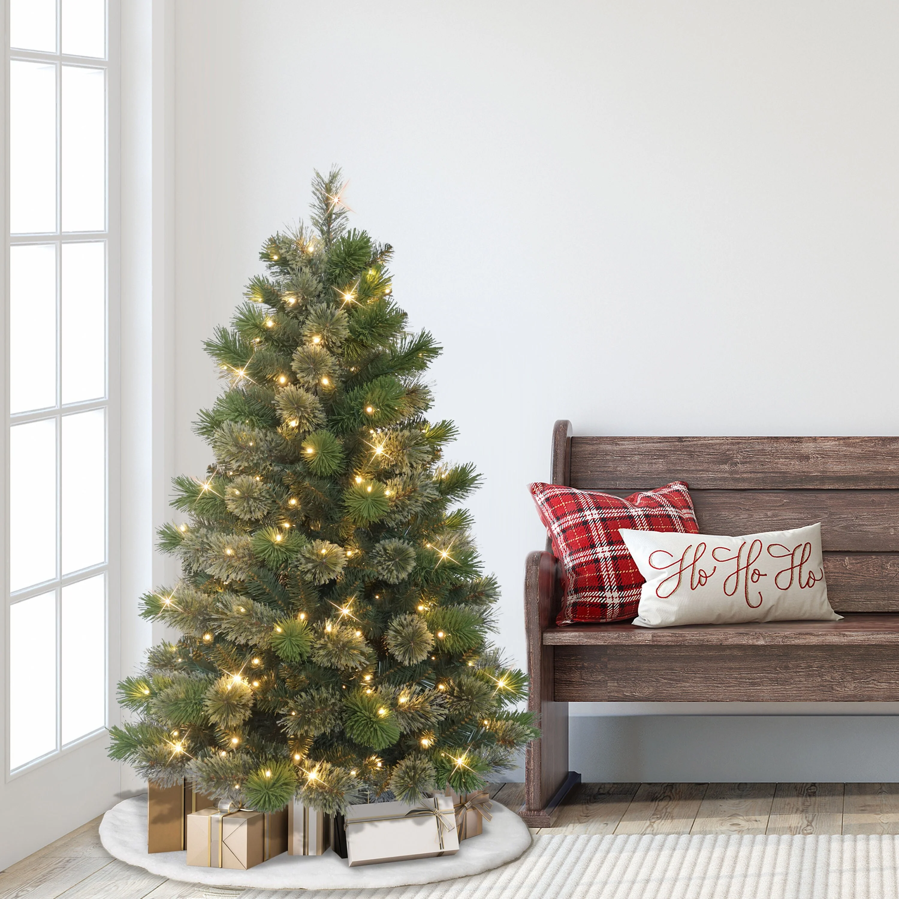 - 4.5 ft. PRE-LIT ARTIFICIAL OKLAHOMA PINE TREE: Features 200 Warm White LED lights that create a cozy, inviting holiday glow