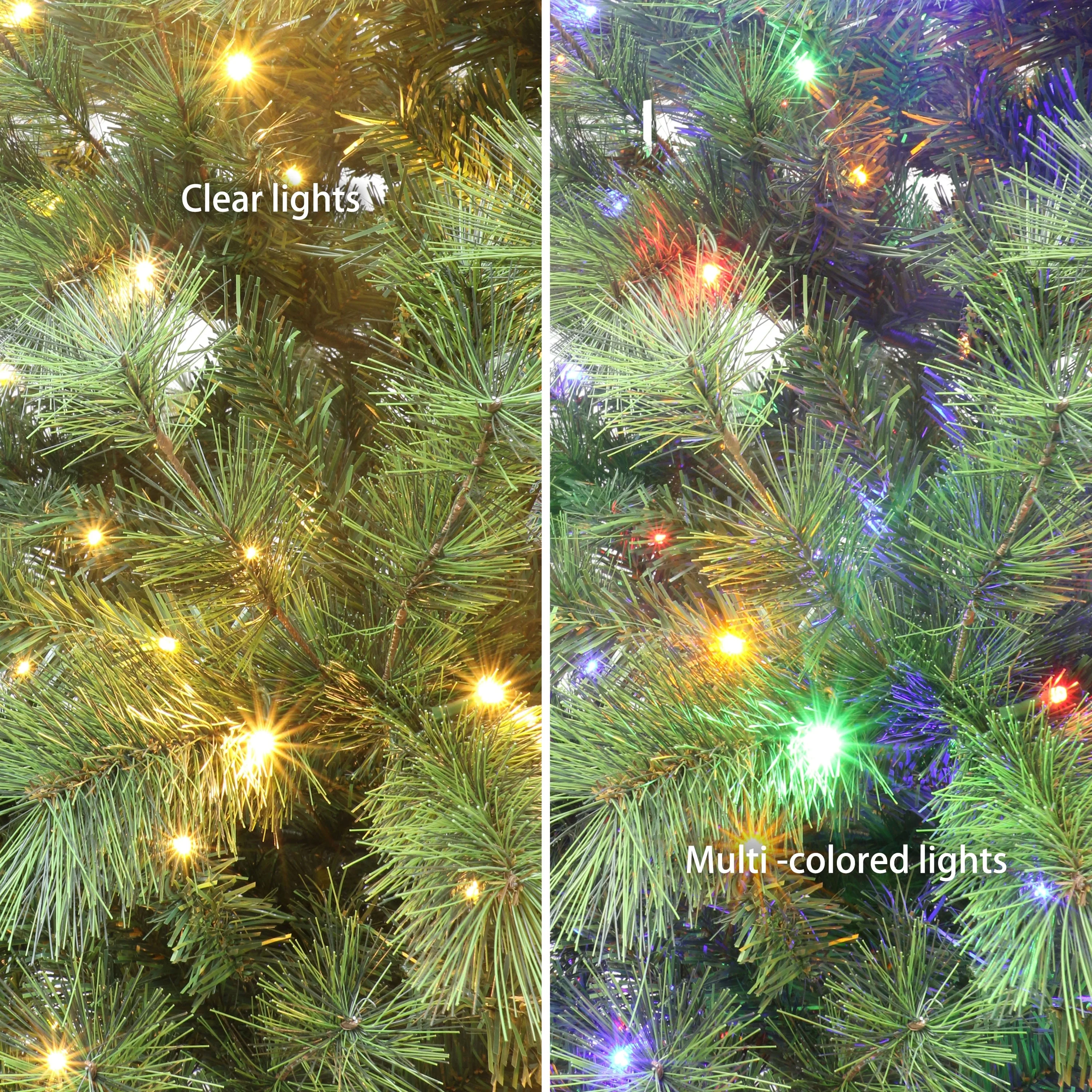 - 6.5 ft. PRE-LIT ARTIFICIAL COLORADO PINE GREEN TREE: Features 300 Dual-Color Multi-Function LED lights that create a cozy, inviting holiday glow with your choice of 9 different functions to switch between with a convenient foot pedal for easy use