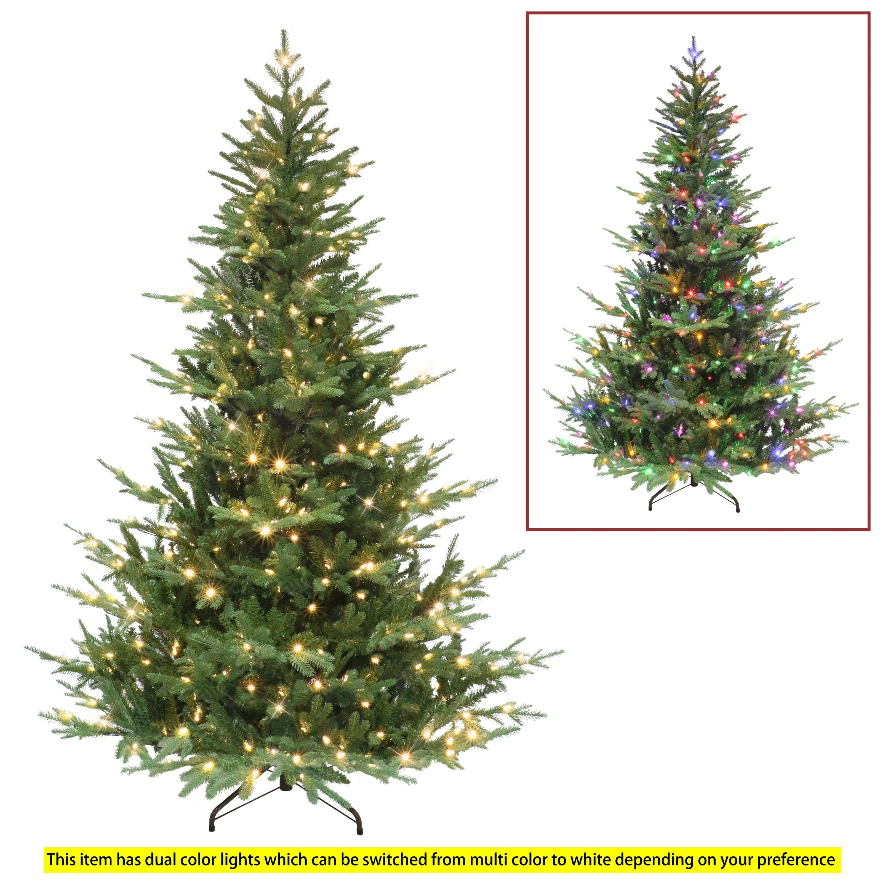 • PRE-LIT ARTIFICIAL SACRAMENTO FIR TREE: 350 Multi-Function LED Lights with 10 light functions to choose from equipped with an on/off foot pedal for convenience.