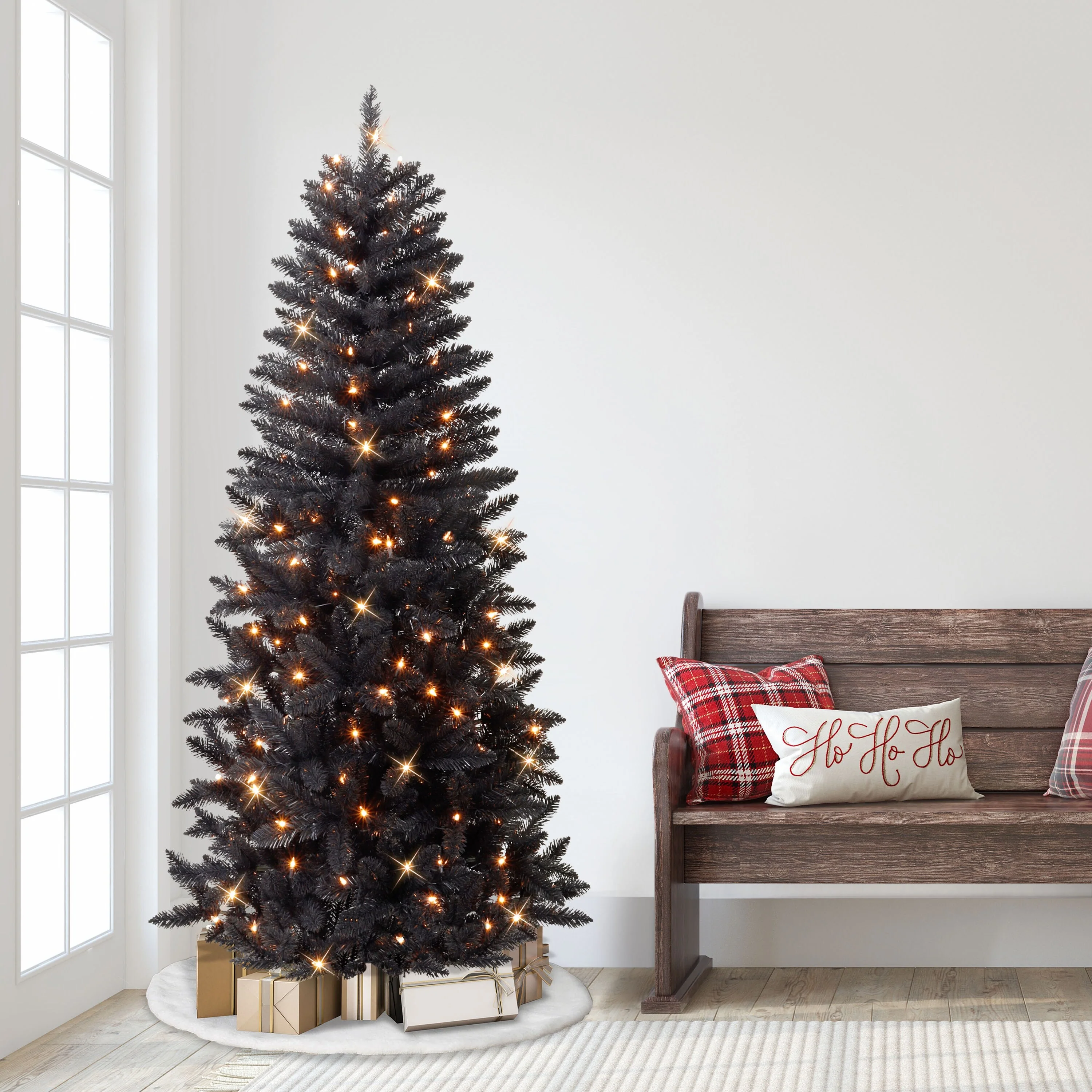 • 7 ft. PRE-LIT ARTIFICIAL CARSON PINE BLACK TREE: Features 200 clear incandescent lights that create a cozy, inviting holiday glow