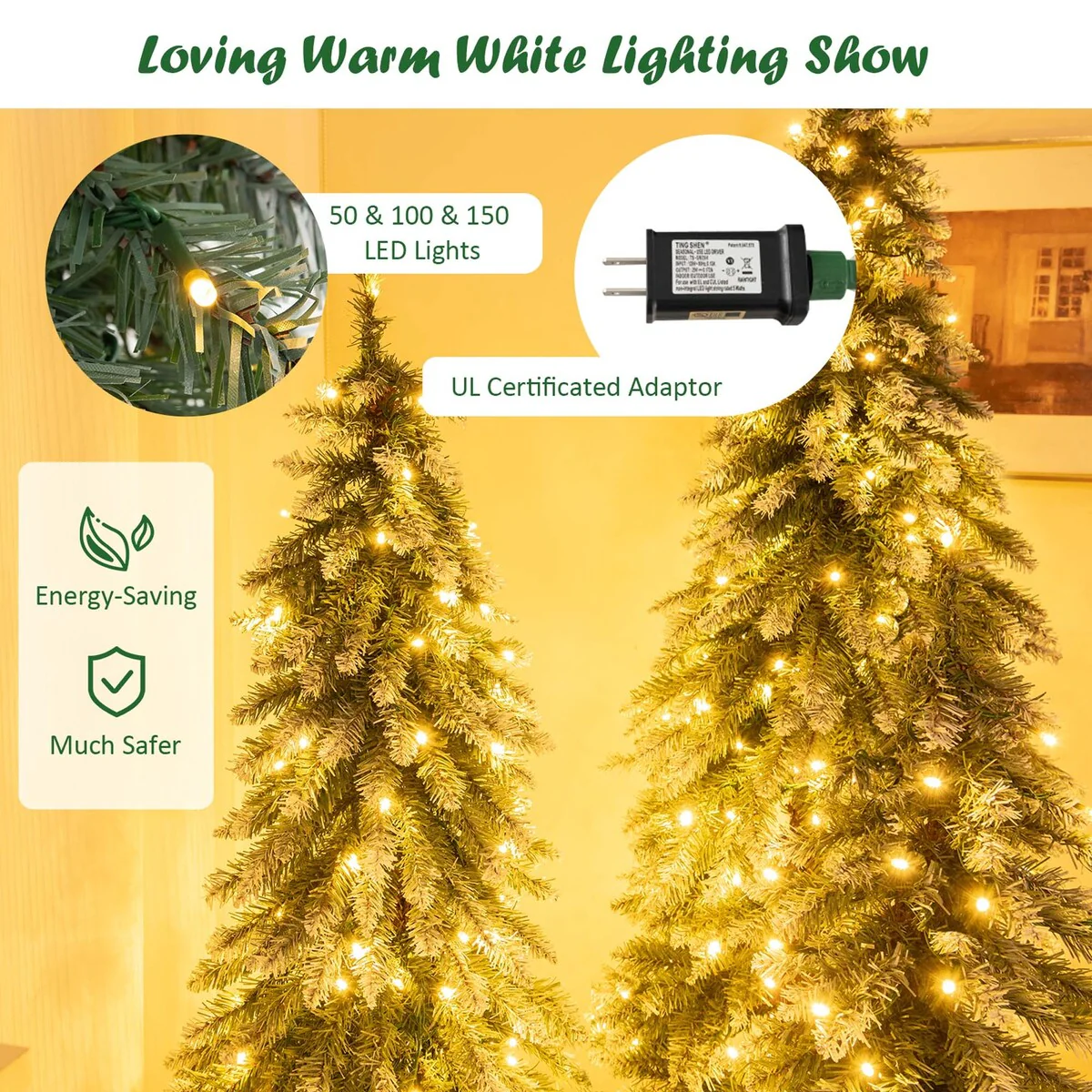 - 50 & 100 & 150 LED lights to provide a loving warm white lighting show