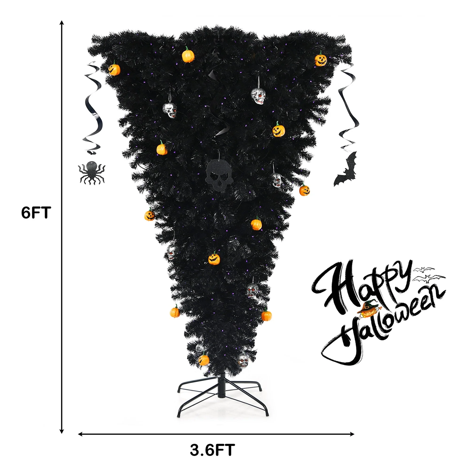 Gymax 6FT Pre-lit Upside Down Black Halloween Tree Artificial - See Details