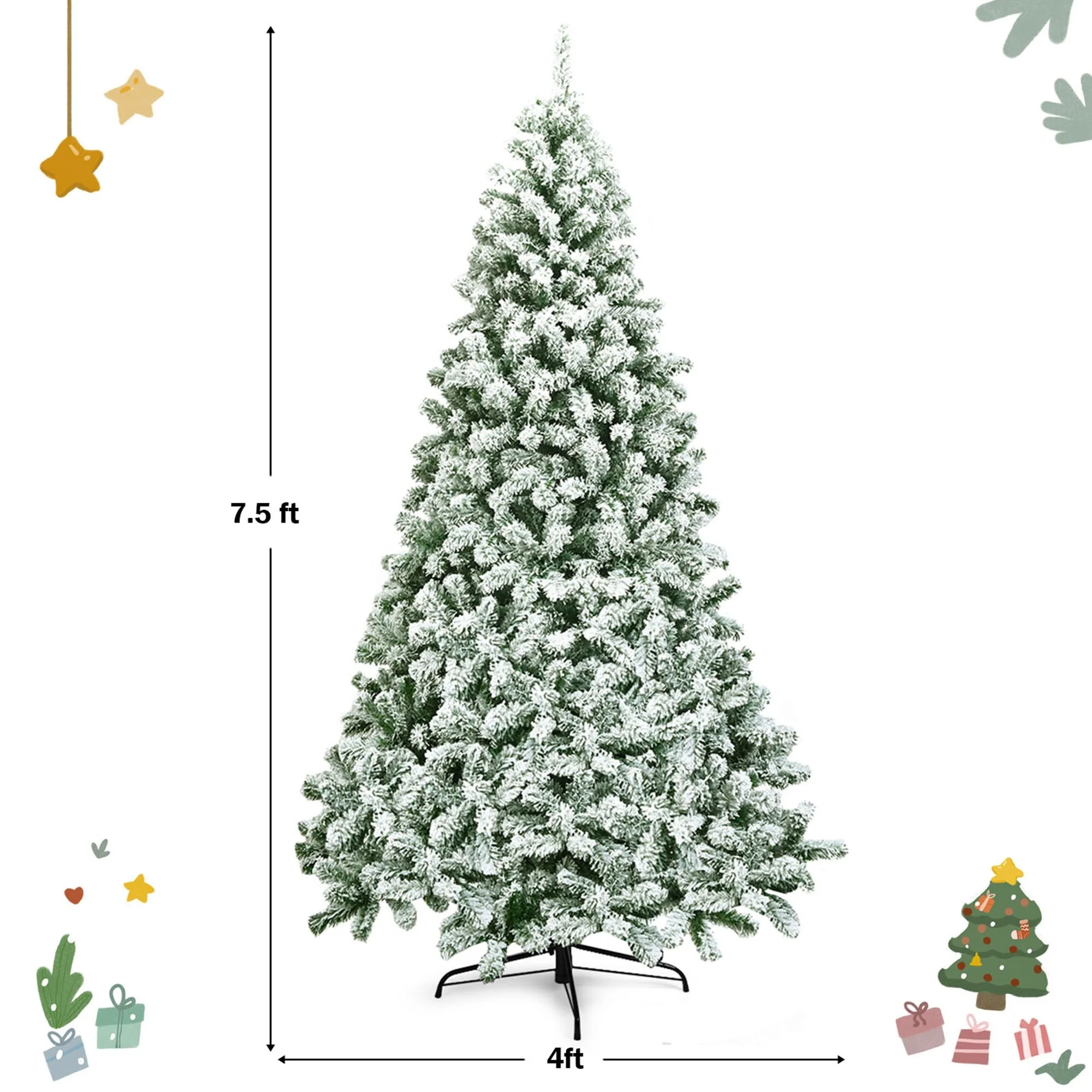Gymax 7.5ft Snow Flocked Christmas Tree Hinged Artificial Pine Tree w/ - See Details