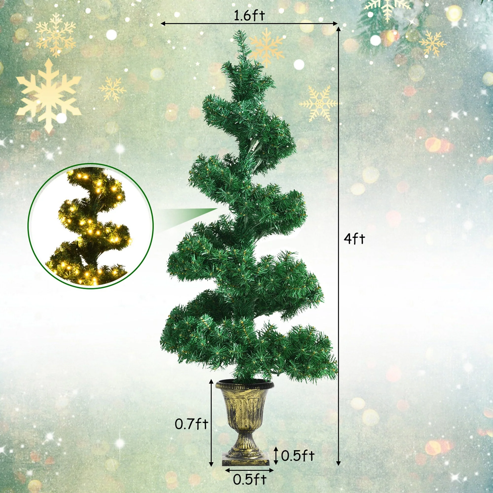 Gymax 4 ft Pre-Lit Spiral Topiary Christmas Tree Artificial Helical - See Details