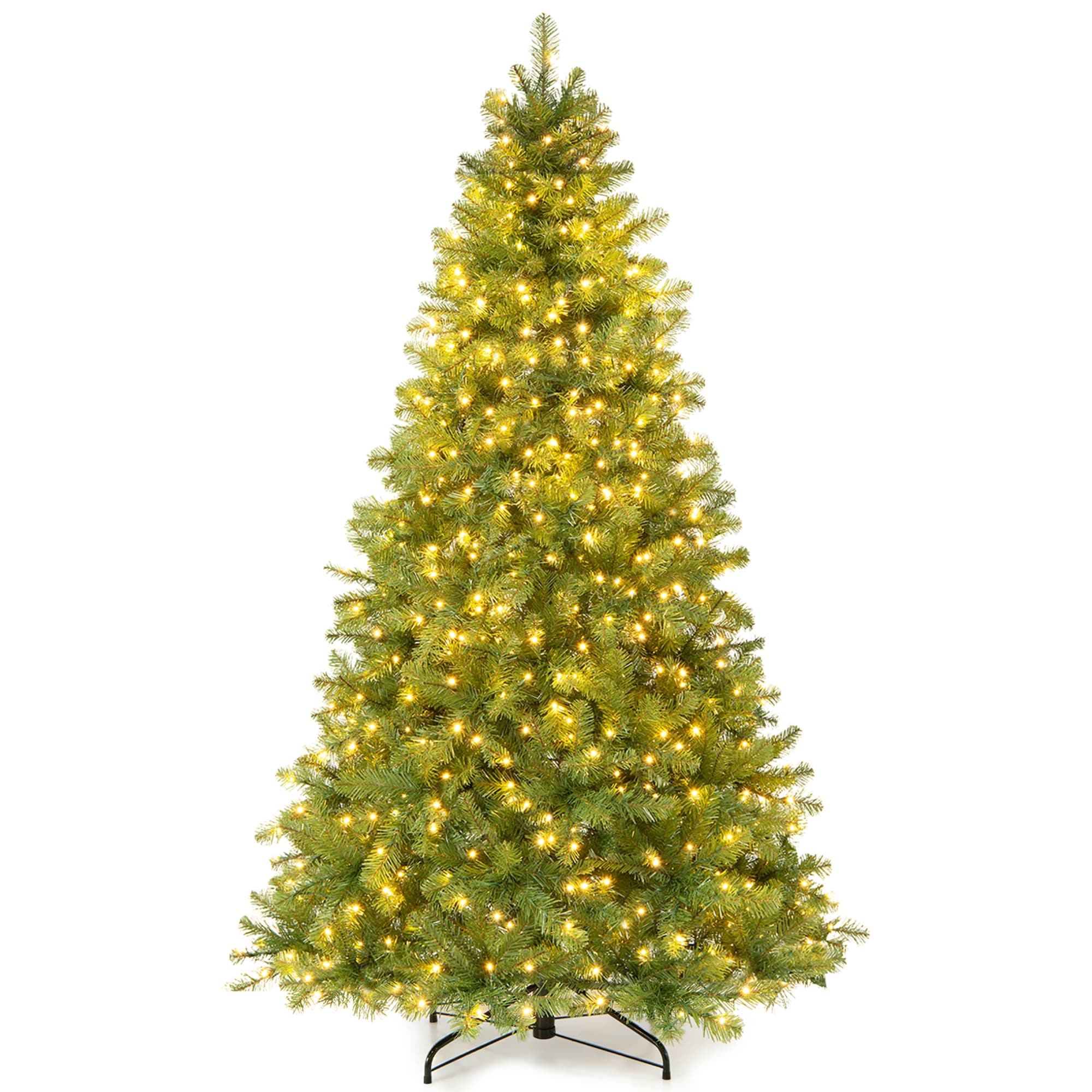 7FT Christmas Tree with 1375 Tips and 400 Warm White LED Lights-PVC+PE Mixed Branches, Hinged Structure for Easy Setup
