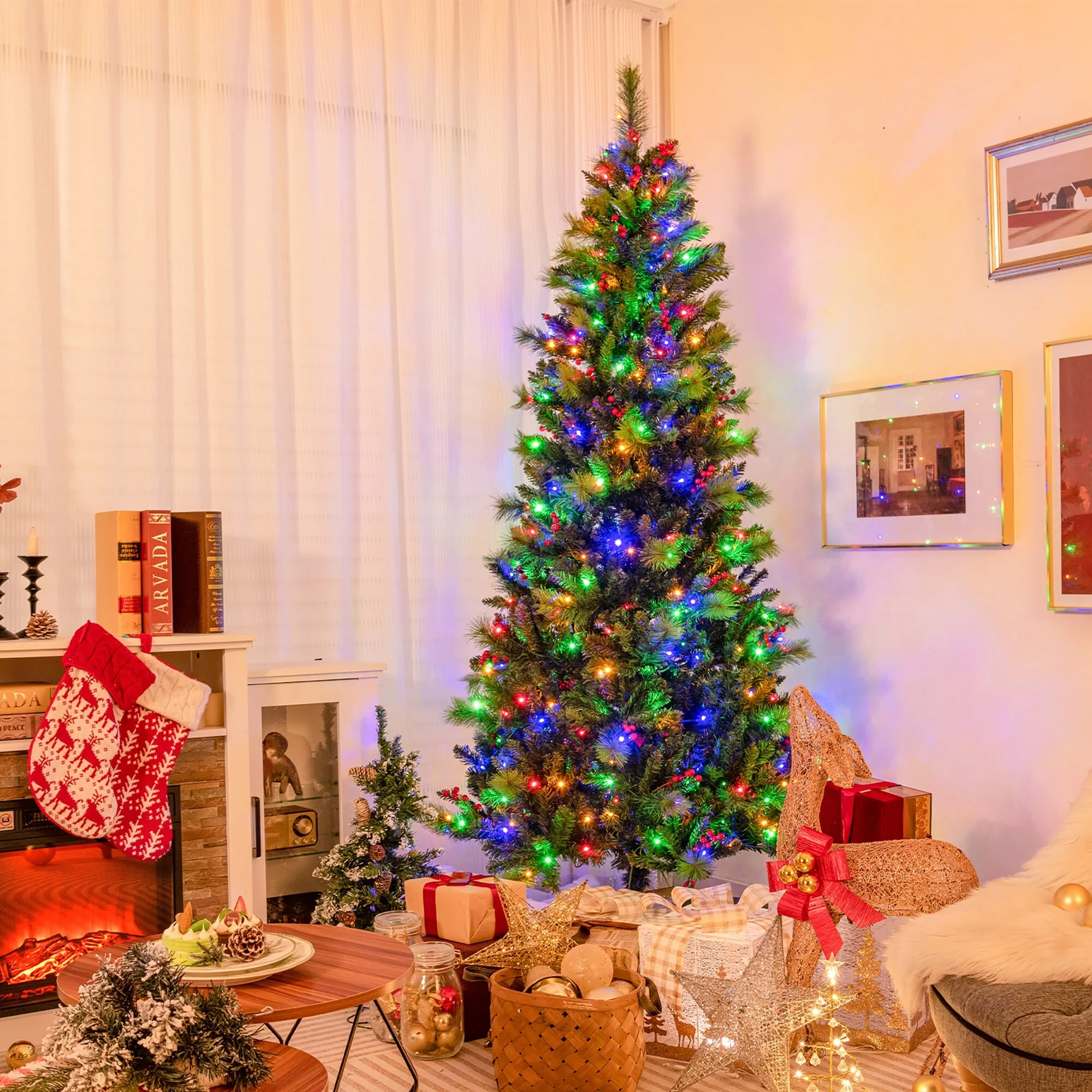 Gymax 7 FT Pre-Lit Artificial Christmas Tree w/ 974 Branch Tips & 400