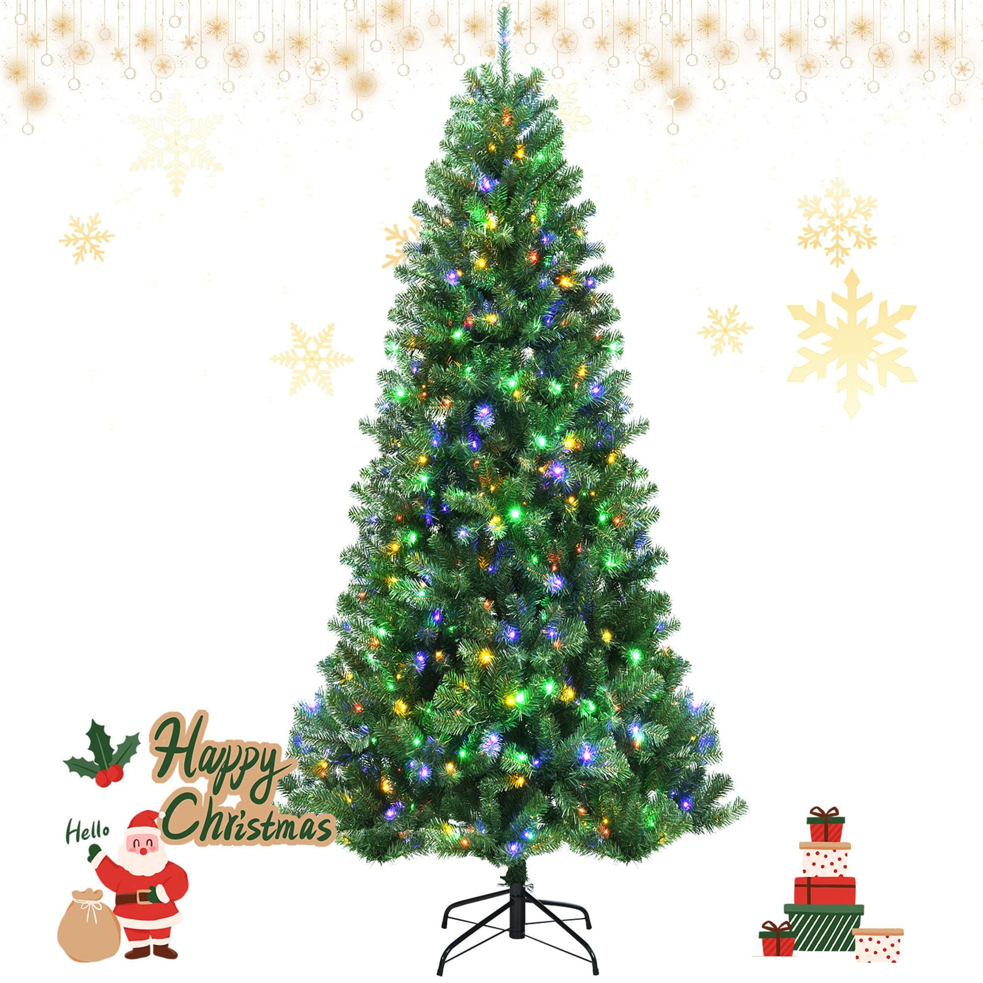 Gymax 6/7/8 FT Pre-lit Artificial Christmas Tree Hinged Xmas Tree w/ 9 - See Details